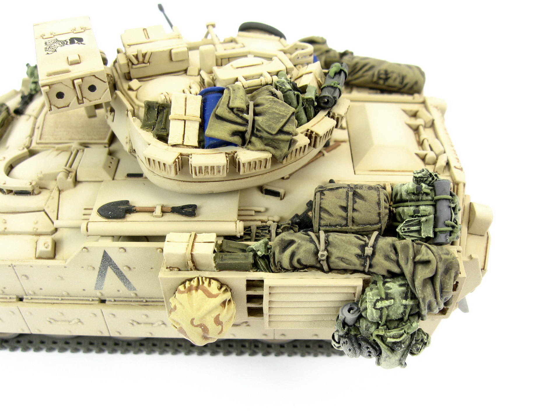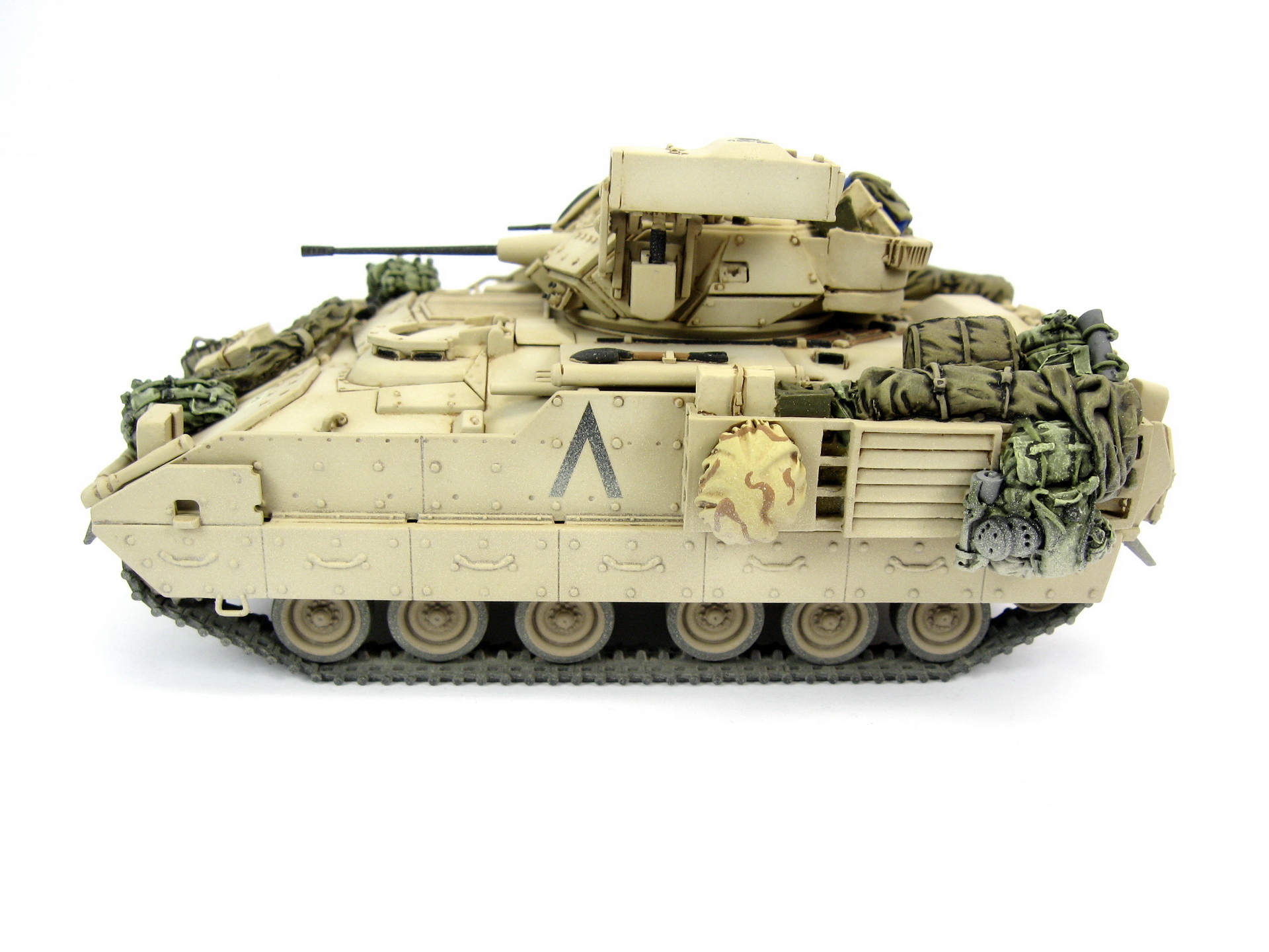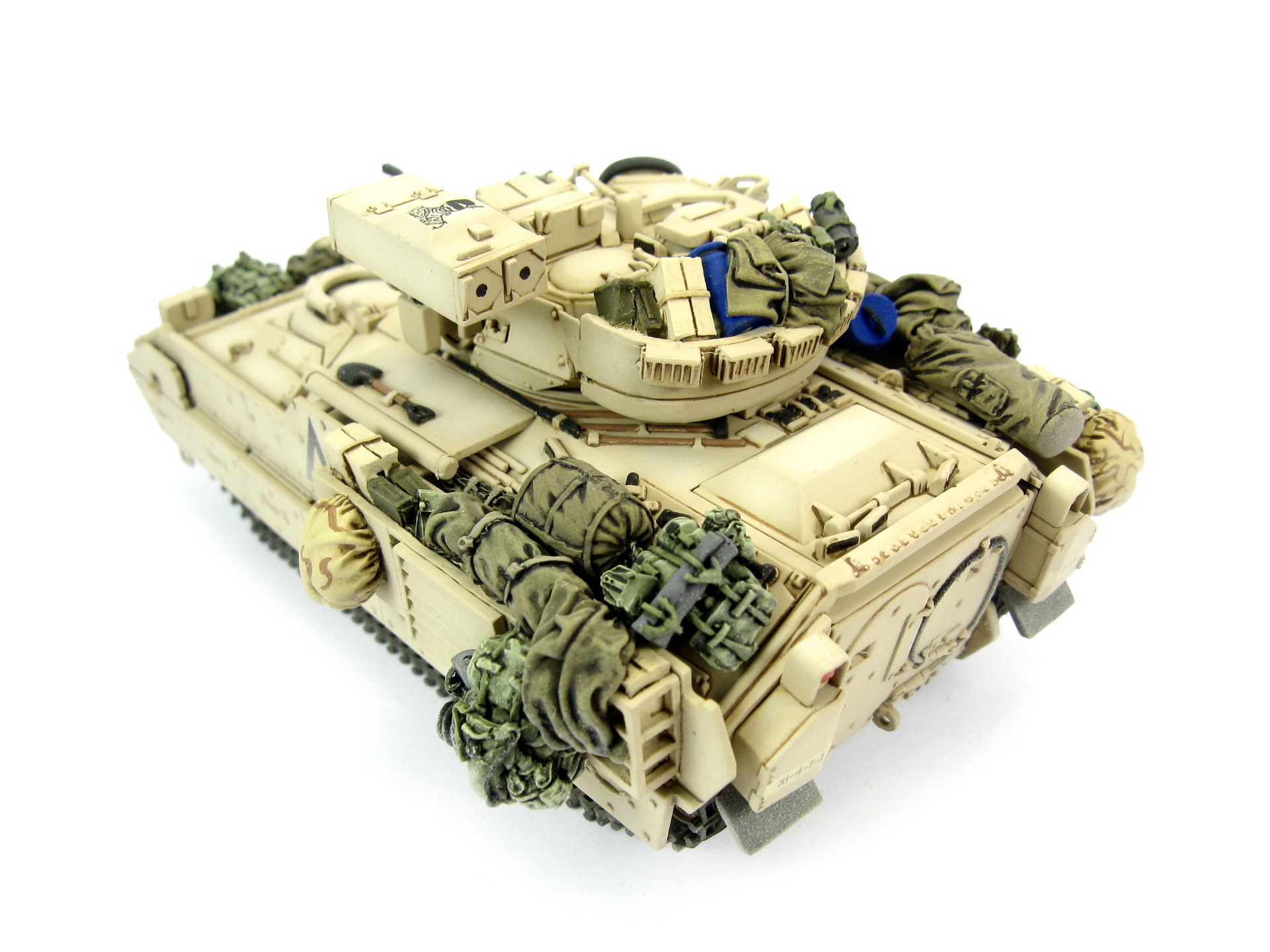 Здравствуйте. Представляю вашему вниманию модель БМП M2A2 Bradley. Сборка не сложная, деталей не так много. Обвес набор от БлэкДога. Окраска акрилом Ганзы.