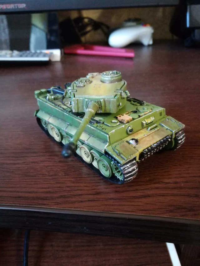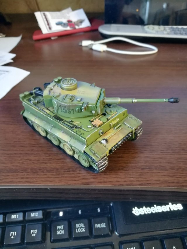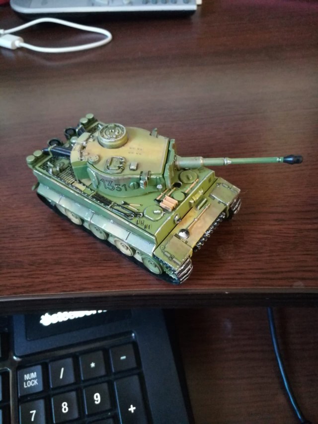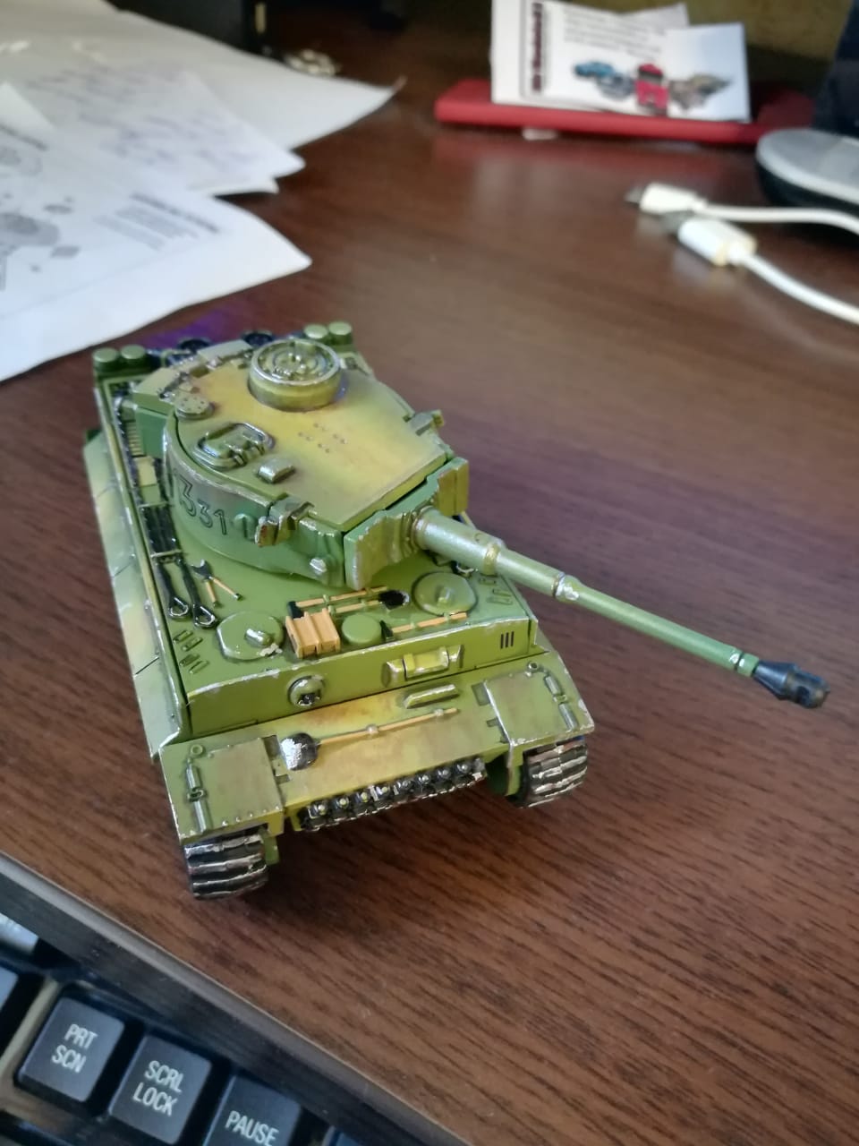 Доброго времени суток. Попался мне в руки простой 3D пазл-модель танка Тигр-1. Не плохой вариант для экспериментов с покраской на коленке. Сборка без клея. Монотонная окраска уже из коробки + моя небольшая доработка по просьбе сына. Ребёнок остался доволен. ))