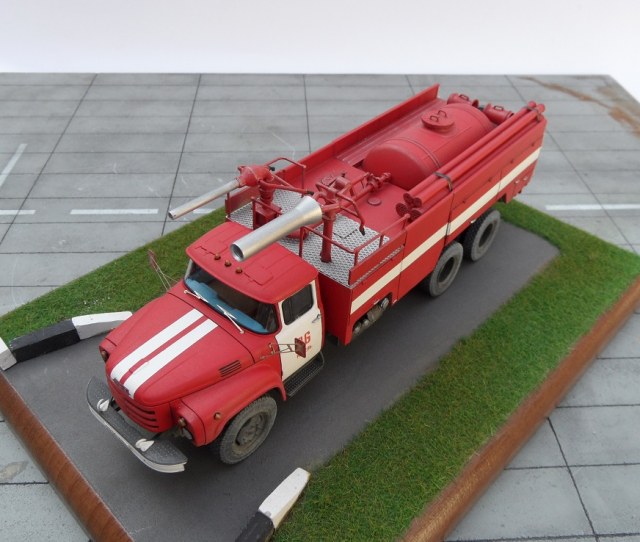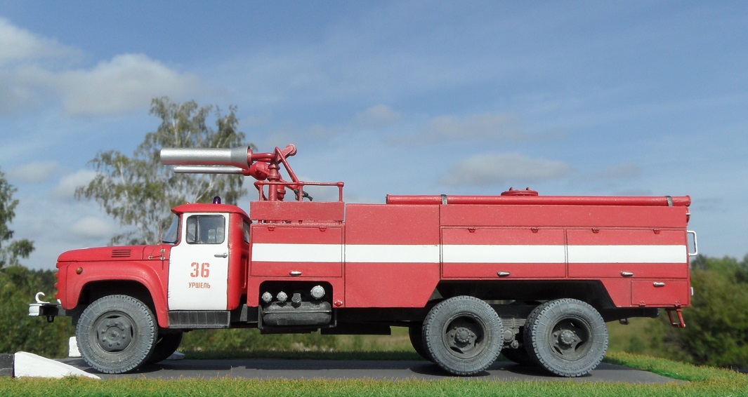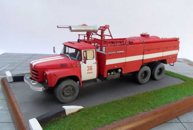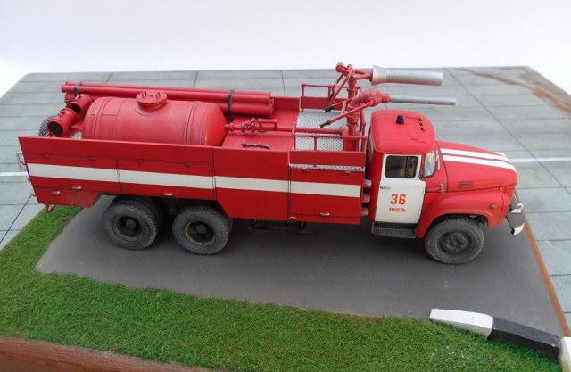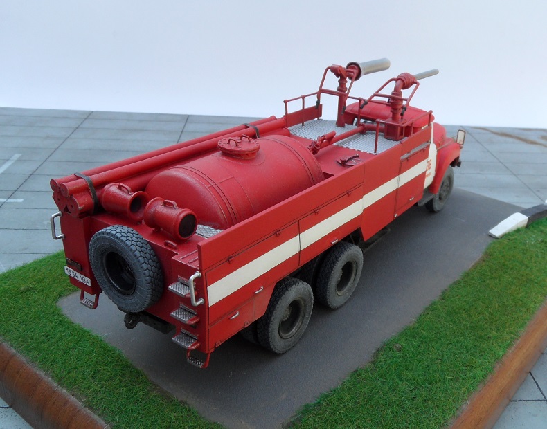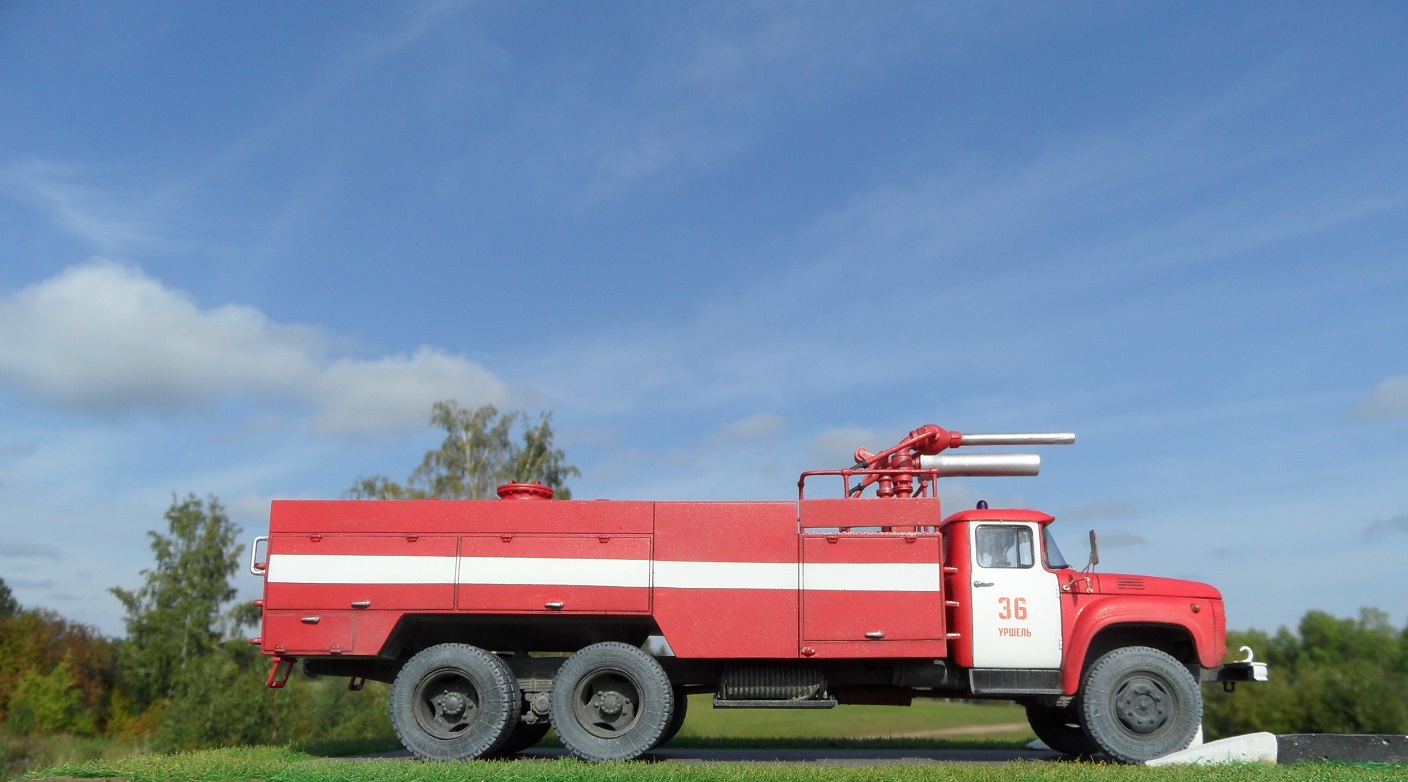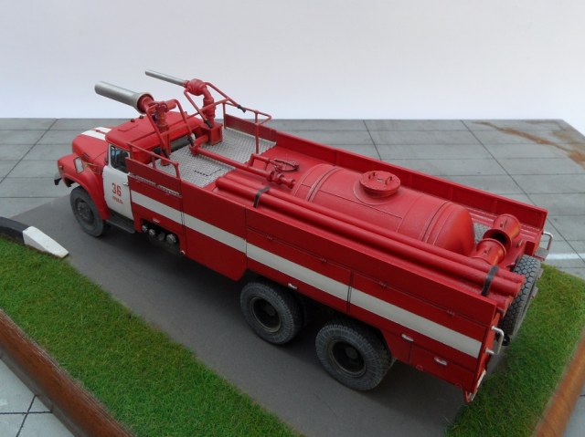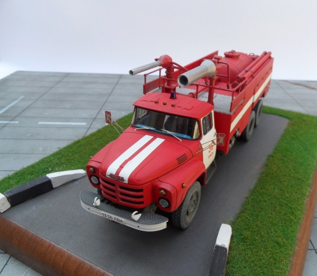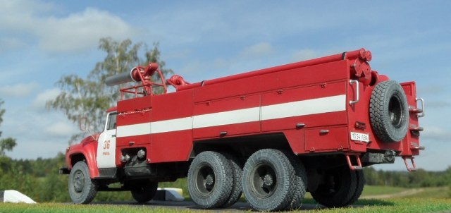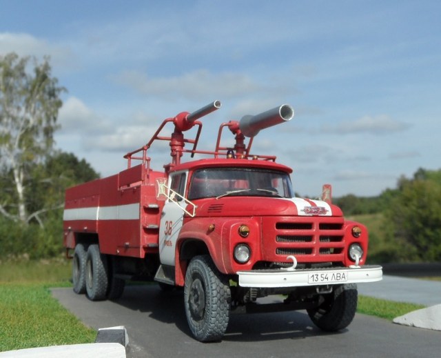 Еще один Зил, эта модель из "смоляной серии" AVD Models. Немного о протПожарный автомобиль комбинированного тушения - пожарный автомобиль с несколькими видами ОТВ. Пожарный автомобиль комбинированного тушения (АКТ) предназначен для доставки на место пожара личного состава, средств комбинированного тушения и пожарно-технического вооружения для одновременной или последовательной подачи различных по свойствам ОТВ. Благодаря различию в свойствах и механизме воздействия ОТВ на процесс горения при комбинированном способе повышается общая огнетушащая эффективность комбинации составов по сравнению с эффективностью использования отдельно взятых средств. Автомобили комбинированного тушения применяются для тушения пожаров на промышленных предприятиях, объектах химической, нефтехимической и газовой промышленности, транспорте. В отечественной и зарубежной практике наибольшее распространение в качестве ОТВ получили вода, пенообразователь, порошки. Комбинация из них применяется и в автомобилях комбинированного тушения. При этом для подачи воды и растворов пенообразователей используется насосная система, а для подачи по коммуникациям порошка — вытеснительная система.
