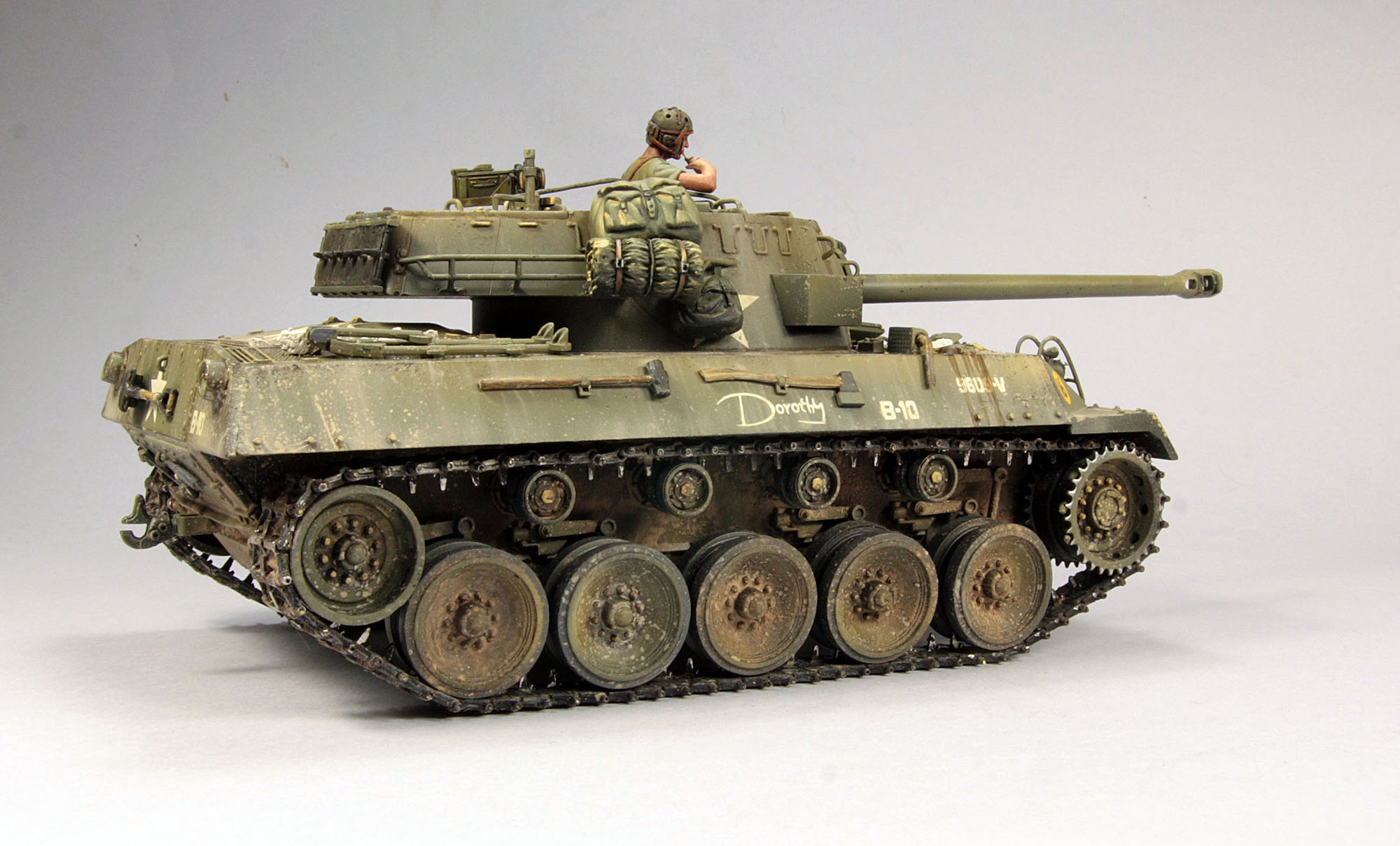 Хелкет от Академии, мет.траки фриул, фары от Azuka model, танкисты от Верлиндена в росписи Романа Тарасова. Сборка танка Олега Антонова, окраска моя.