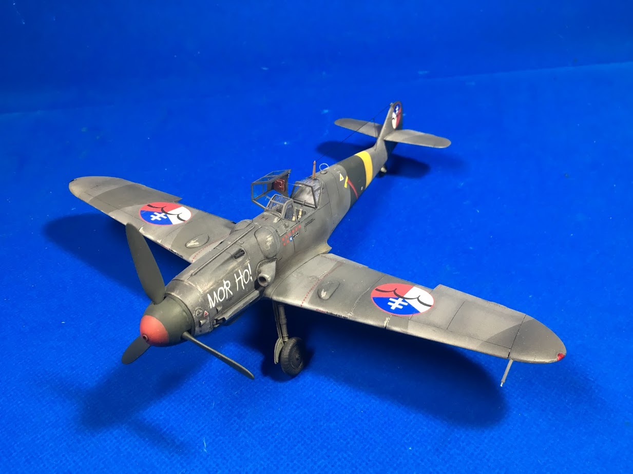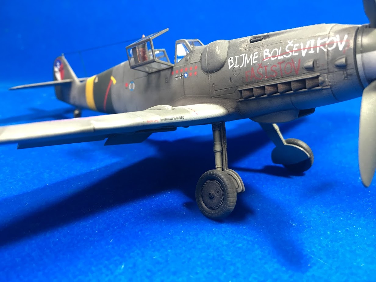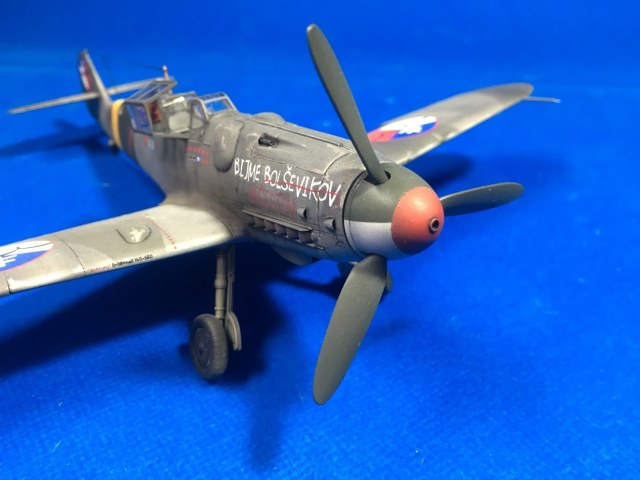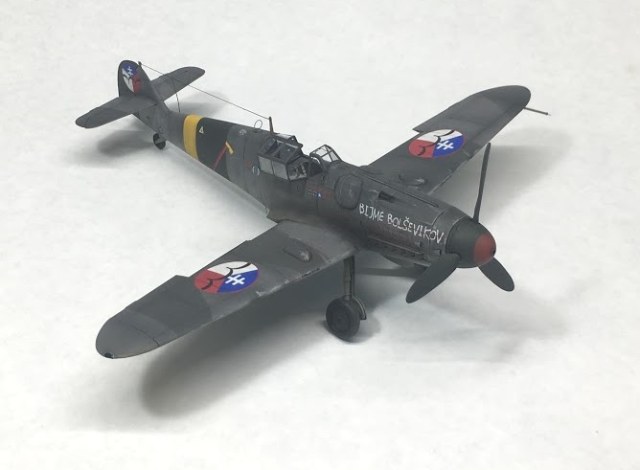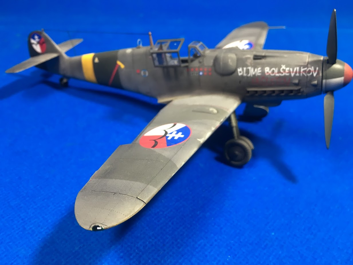 Фирменная (из серии Bunny Fighter) фантазия от Eduard на тему повстанческих словацких ВВС. Модель строилась в качестве поддержки конкурса "Чужие крылья 1936-1953". Сказка велась здесь. Прототип данной модели существовал в действительности и использовался сначала на Восточном Фронте (на стороне Оси), а затем, после перебазирования в Словакию и начала восстания, стал воевать против нацистов. Фантазией являются надписи на словацком ("Бей большевиков фашистов!" и "Смерть!"), и, вероятно, топорик и отметки о победах. В остальном, модель соответствует (ну, или пытается) историческому прототипу.