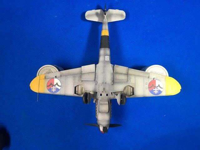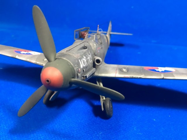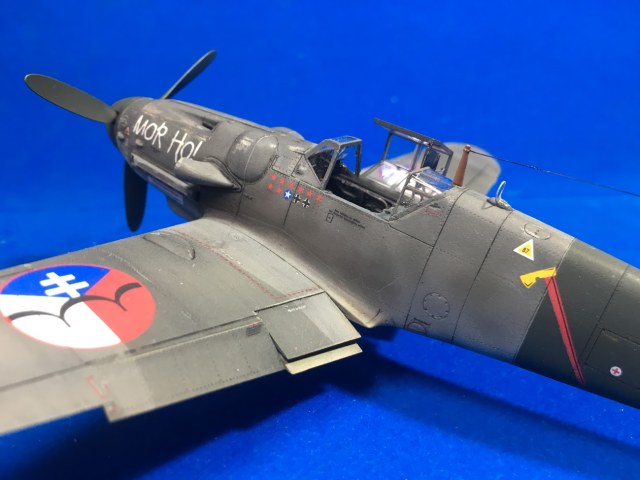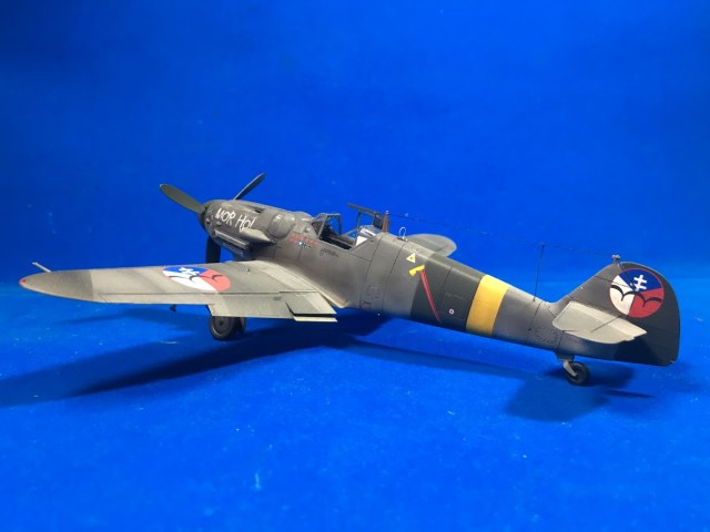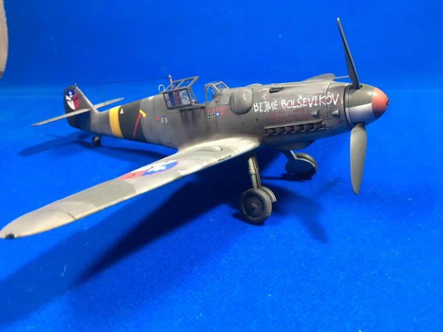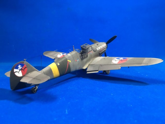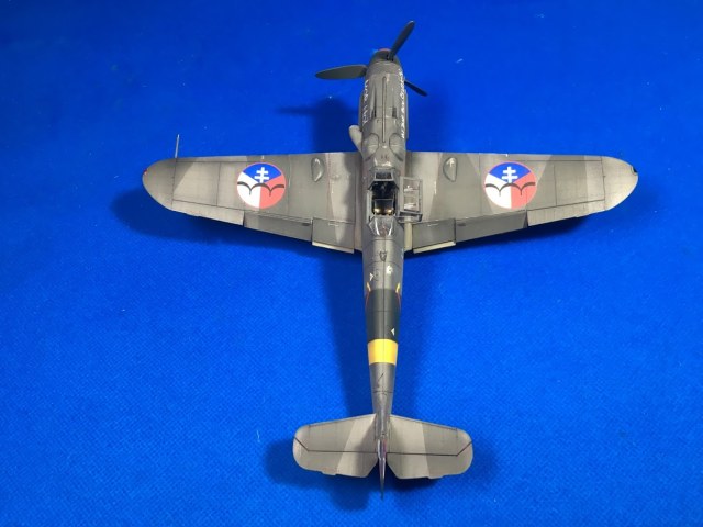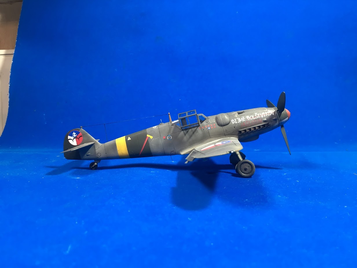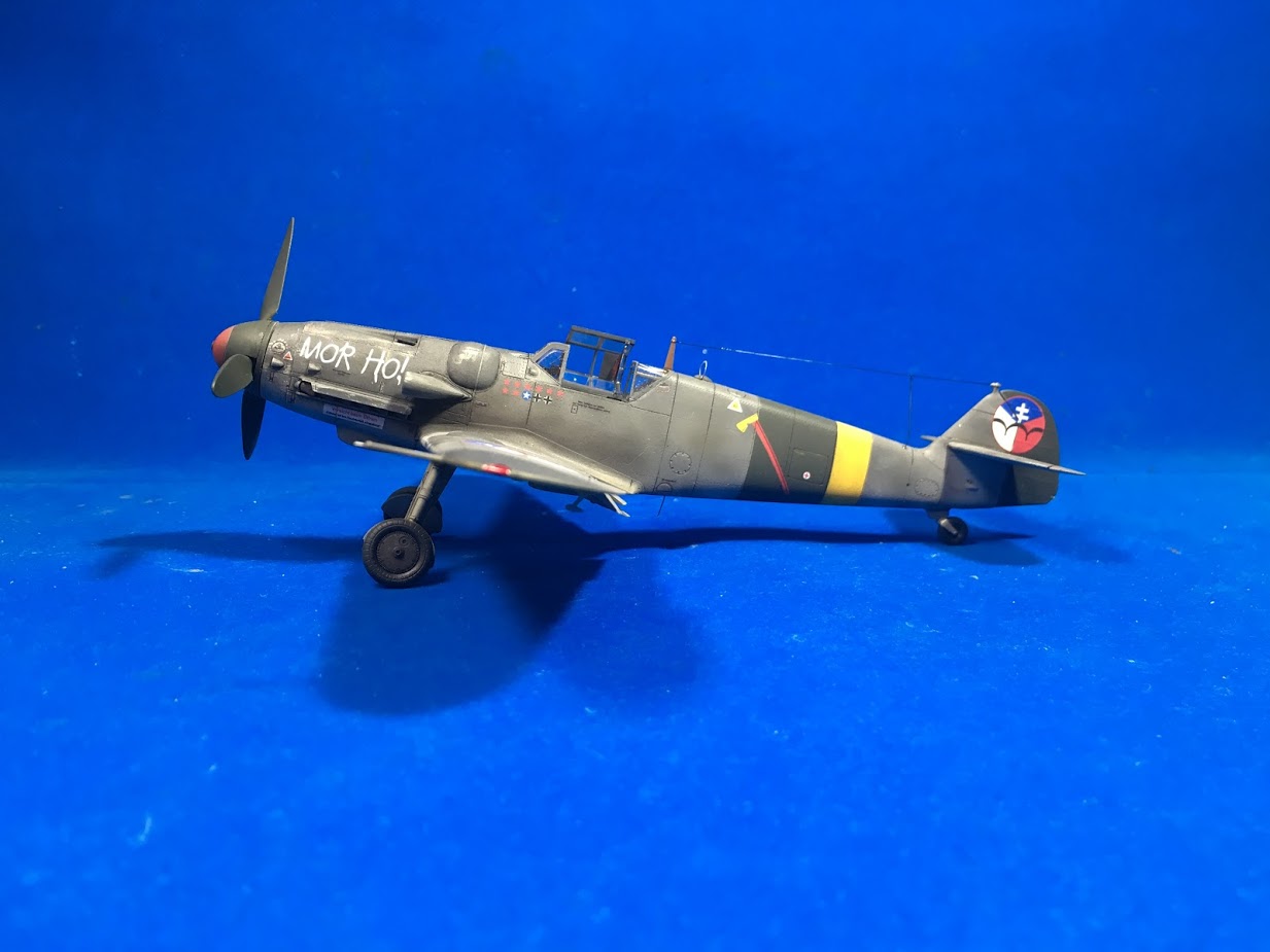 Фирменная (из серии Bunny Fighter) фантазия от Eduard на тему повстанческих словацких ВВС. Модель строилась в качестве поддержки конкурса "Чужие крылья 1936-1953". Сказка велась здесь. Прототип данной модели существовал в действительности и использовался сначала на Восточном Фронте (на стороне Оси), а затем, после перебазирования в Словакию и начала восстания, стал воевать против нацистов. Фантазией являются надписи на словацком ("Бей большевиков фашистов!" и "Смерть!"), и, вероятно, топорик и отметки о победах. В остальном, модель соответствует (ну, или пытается) историческому прототипу.