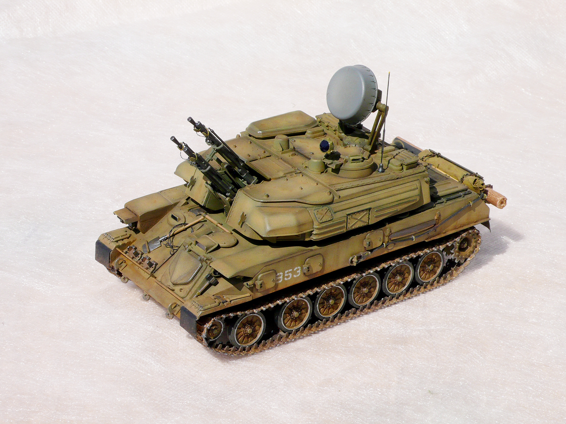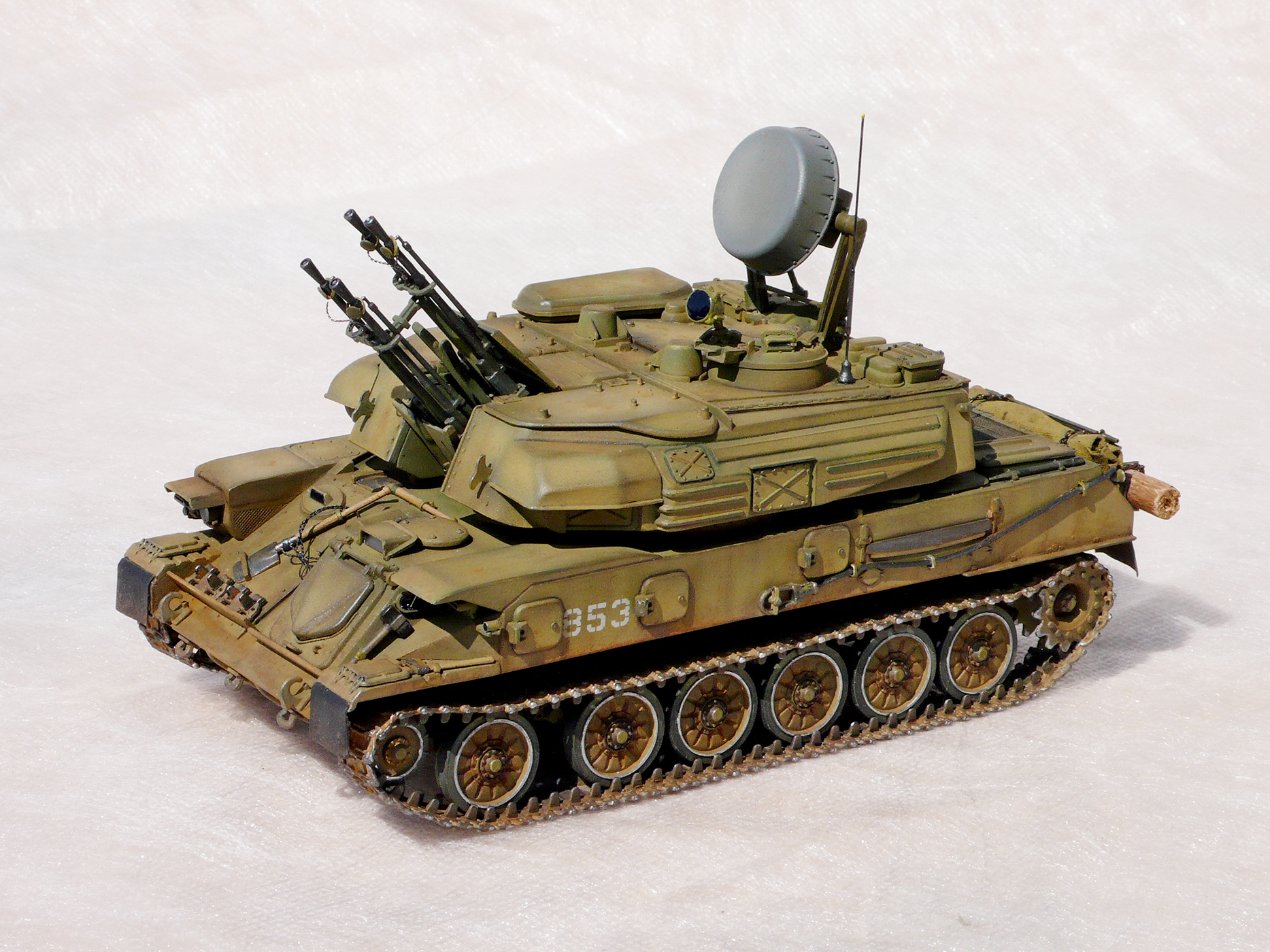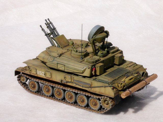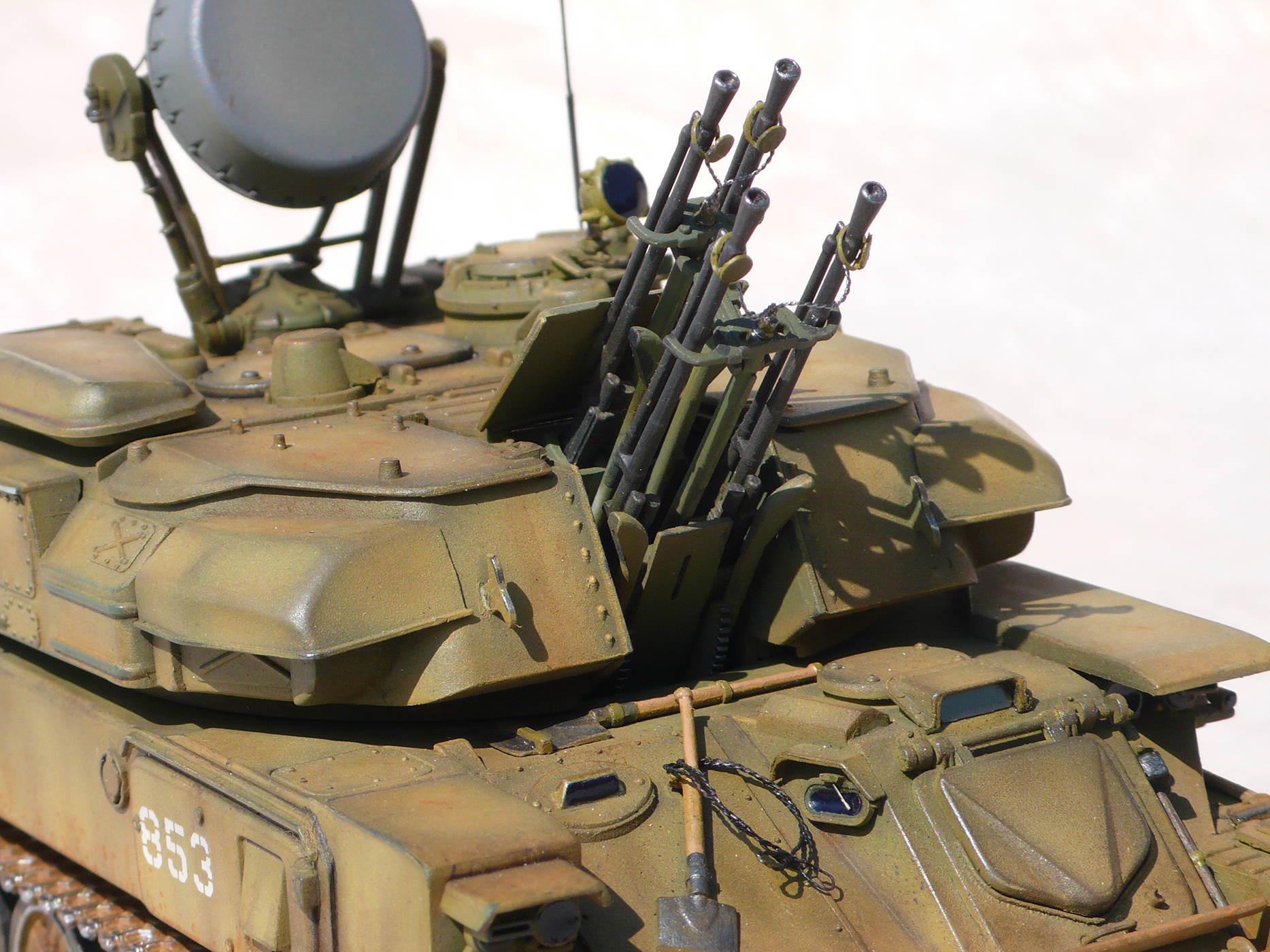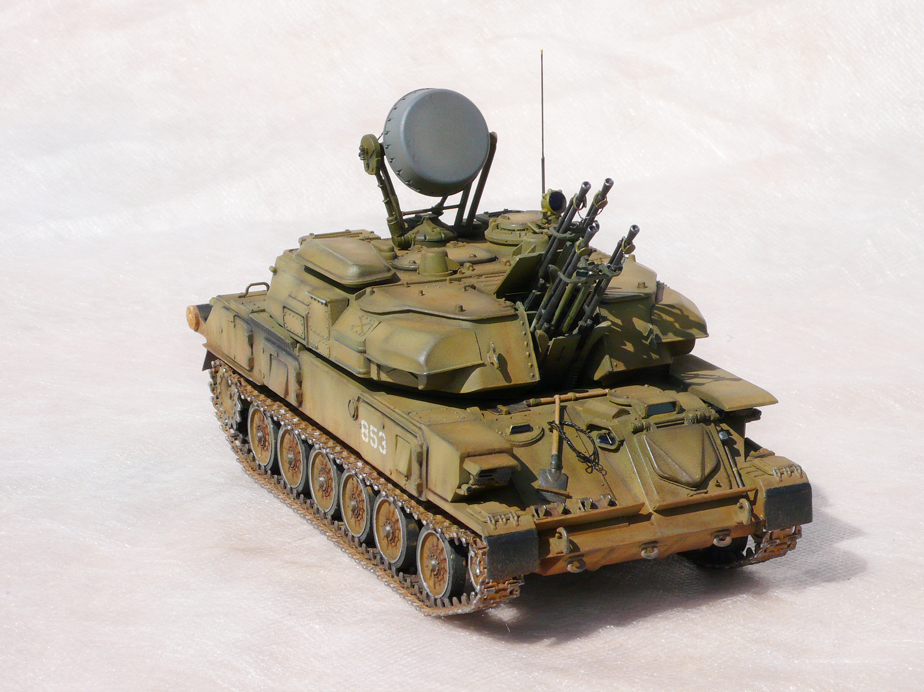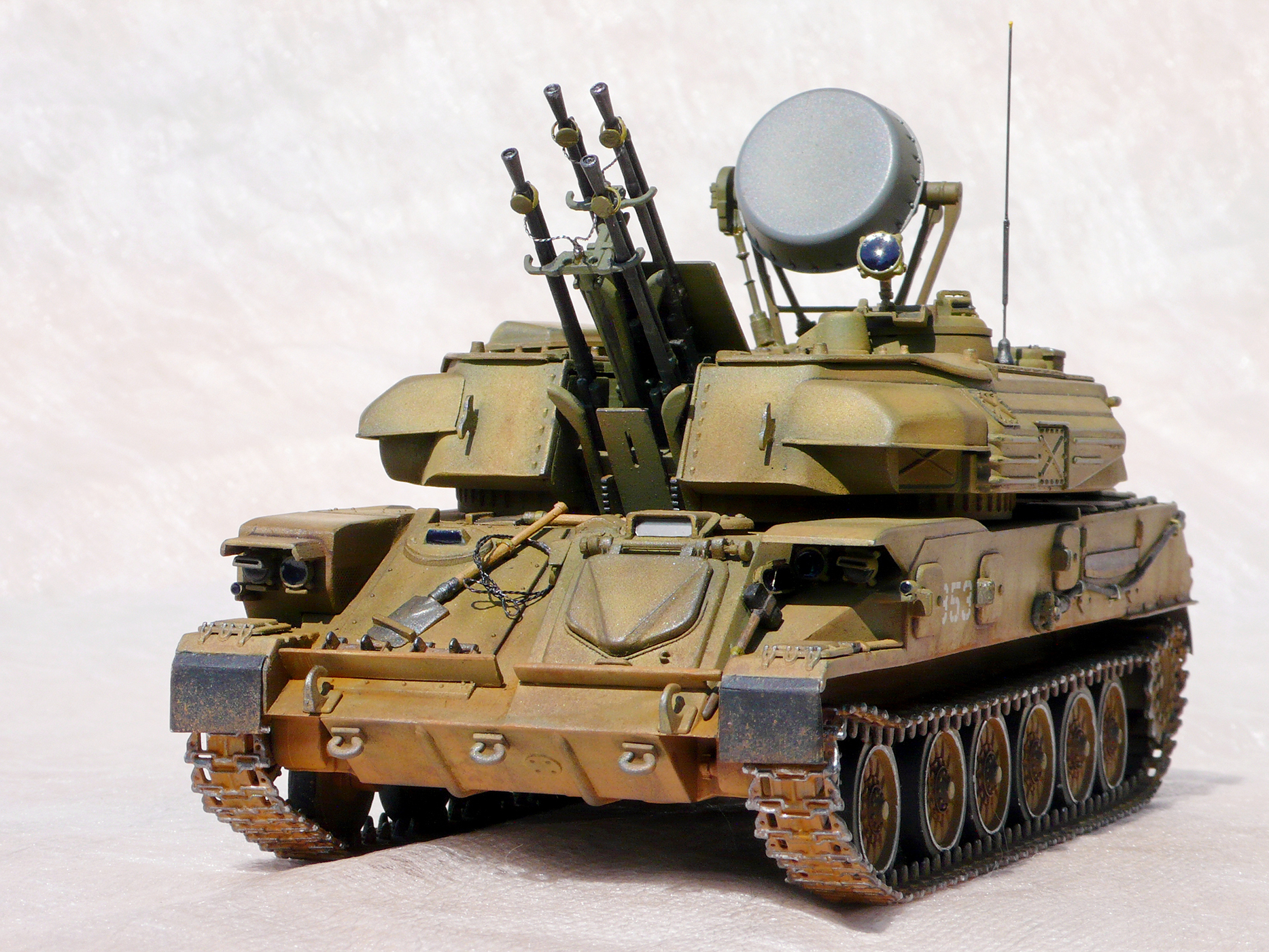 Модель собиралась давно, до выхода в свет Менга. Пришлось изрядно повозиться со счетверенной артустановкой АЗП-23, радаром, кормовой частью и прочей мелочью.