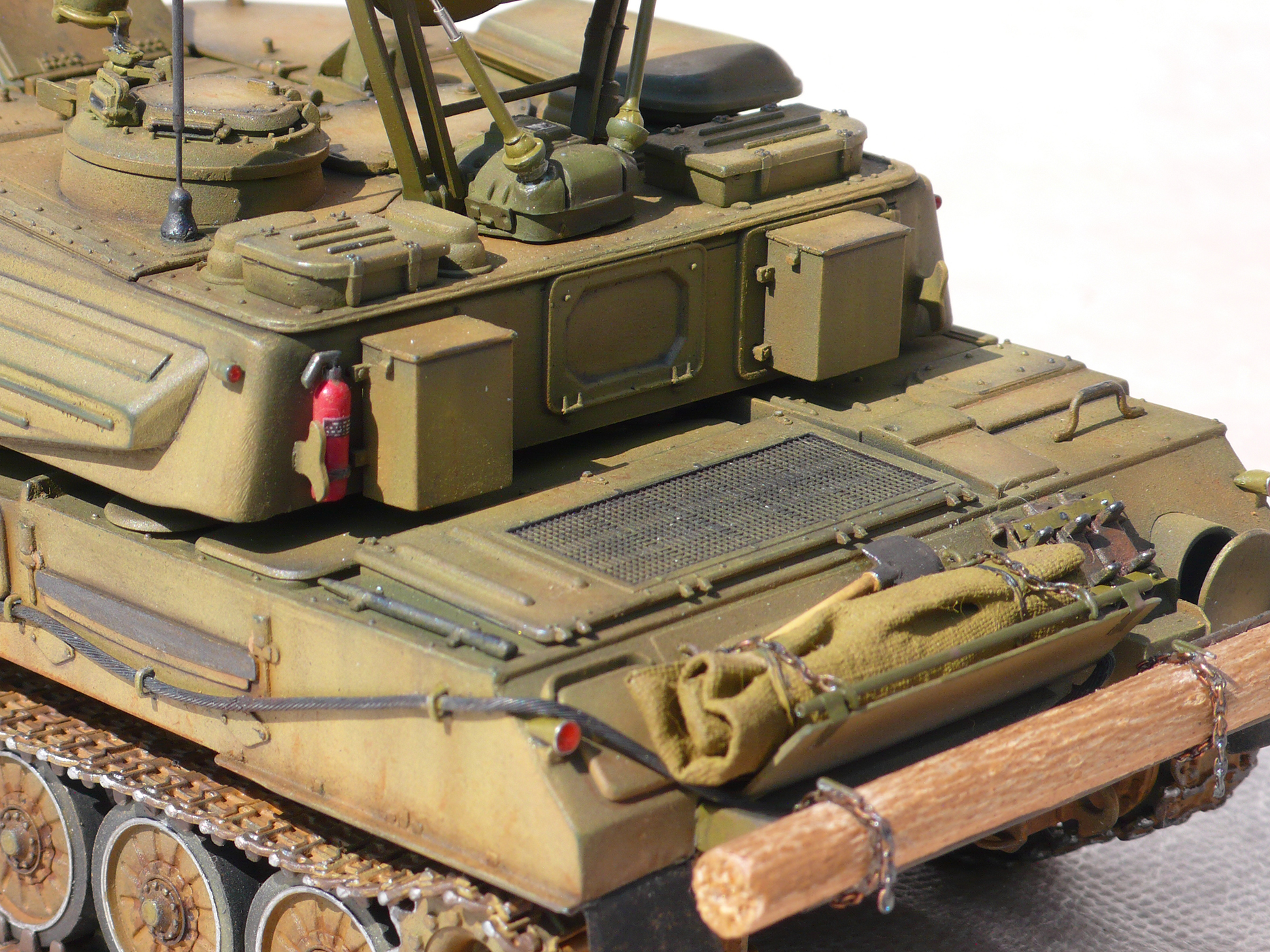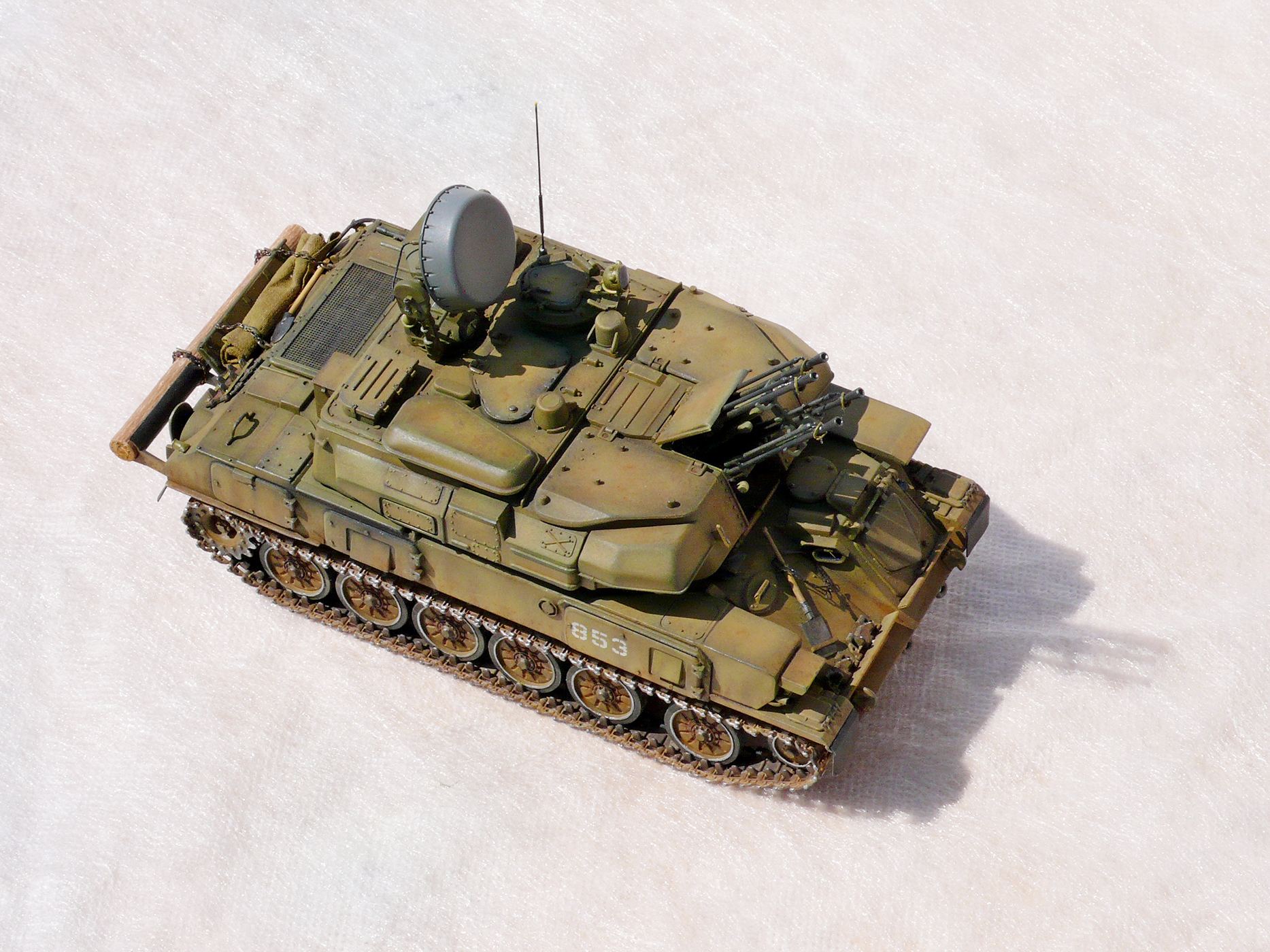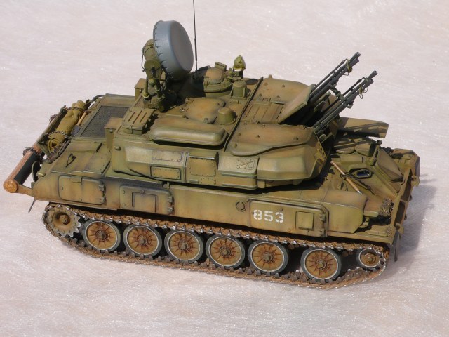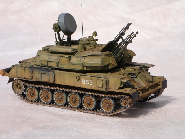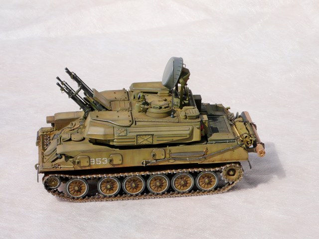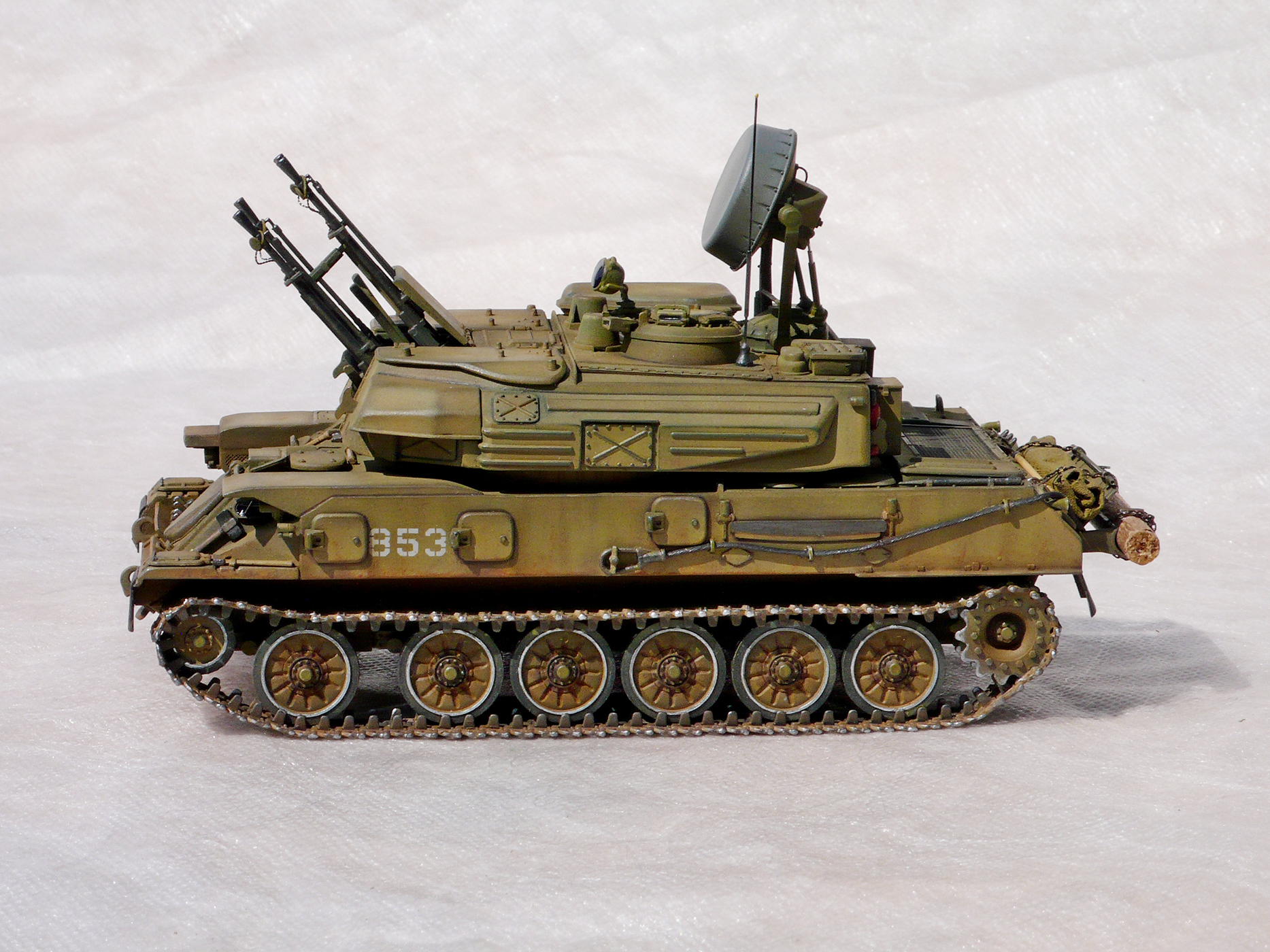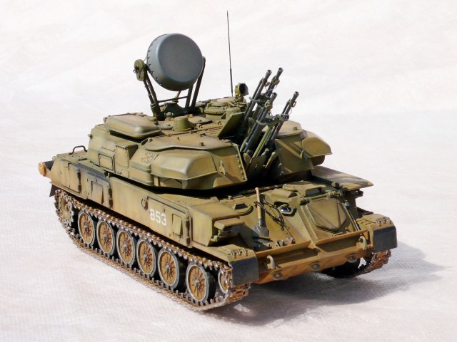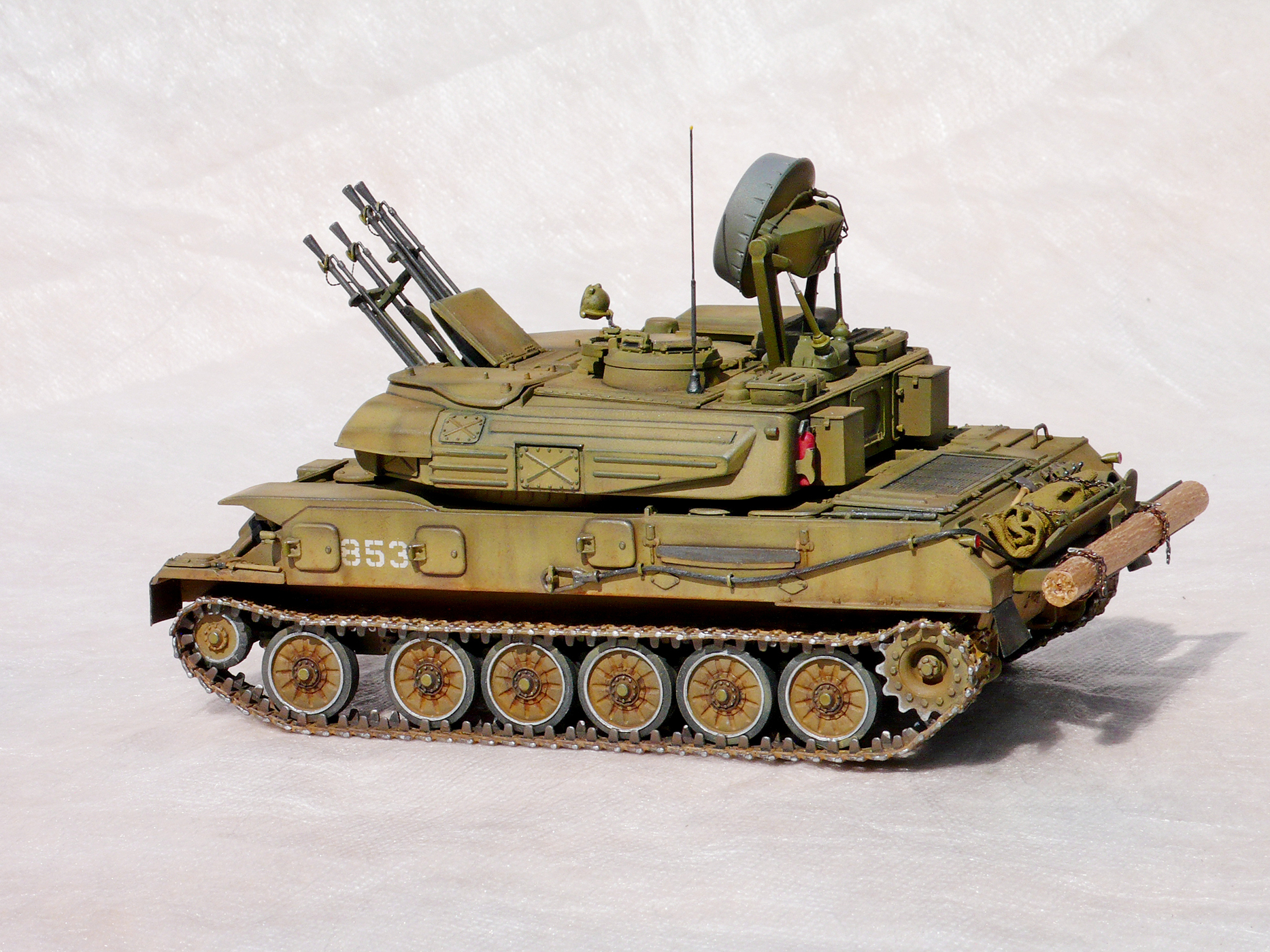 Модель собиралась давно, до выхода в свет Менга. Пришлось изрядно повозиться со счетверенной артустановкой АЗП-23, радаром, кормовой частью и прочей мелочью.
