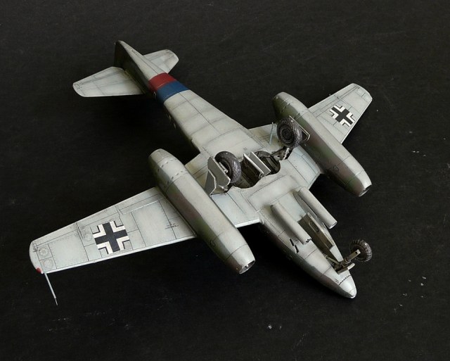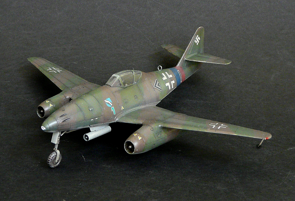 Очередная работа,и снова реактив Me 262A-1a ,на этот раз от Ревелл . Судя по информации из инета на этой зеленой единичке летал Рудольф Зиннер.