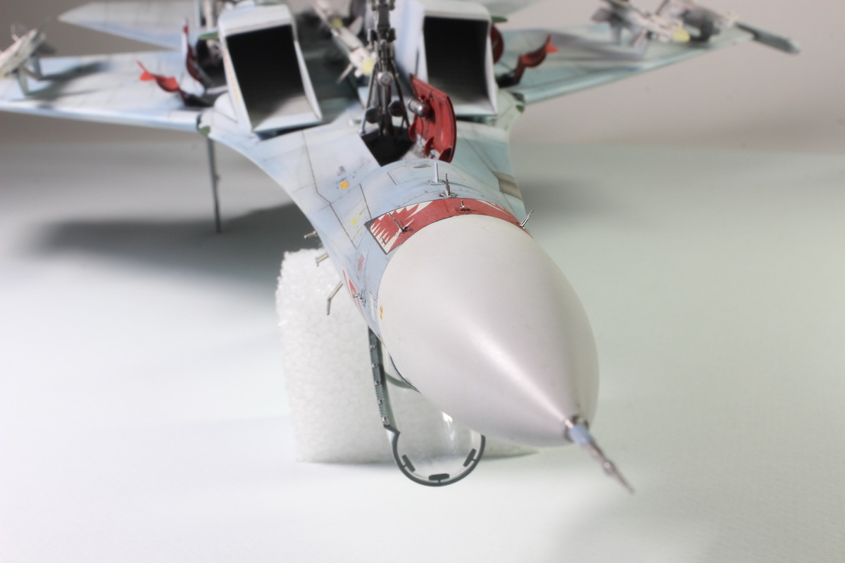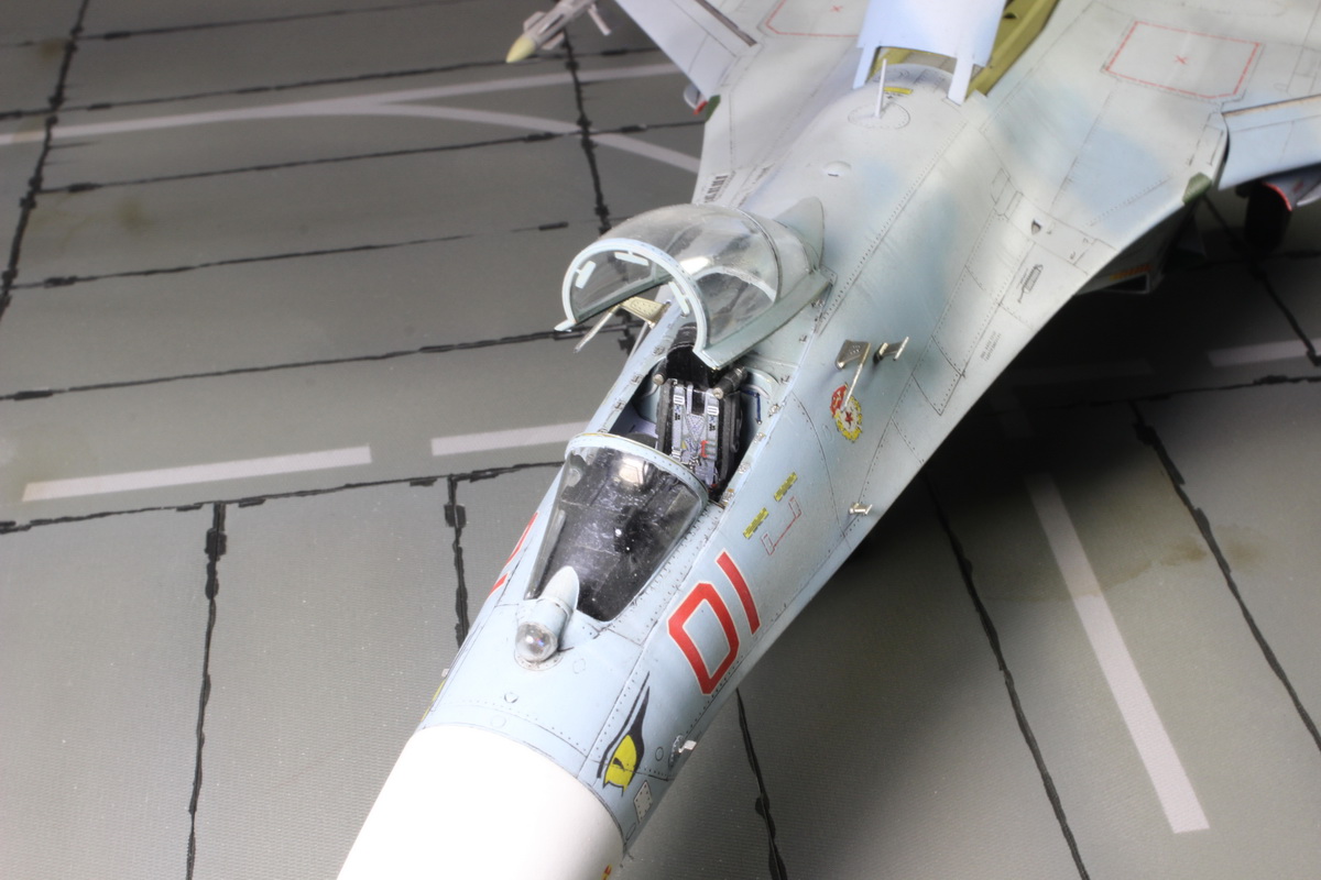 Модель понравилась, очень аккуратная сборка внимание к деталям. По матчасти нет нареканий, а я су-27 неплохо уже изучил. Покрашен хорошо, но я бы глянца немного добавил. Расстроили конечно сопла, на такую модель с такой детализацией надо было ставить афтер. Ну и пустоваты основные ниши и стойки.