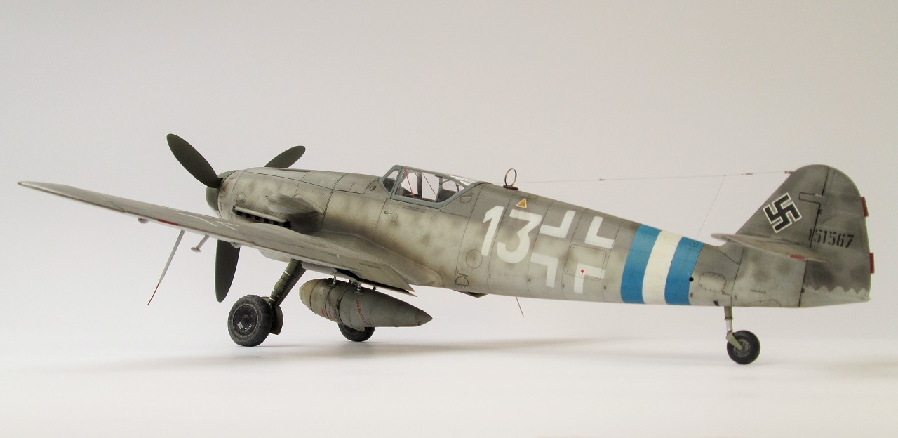Приступив к модели не думал,что все окажется несколько сложнее и с мат частью и с выбором прототипа.В итоге ознакомившись с нюансами машин 10-й серии завода Эрла,выбрал прототип "Белый 13" WNr. 151567 из III./ JG 300, Wunstorf.Есть достаточно фото этой машины.