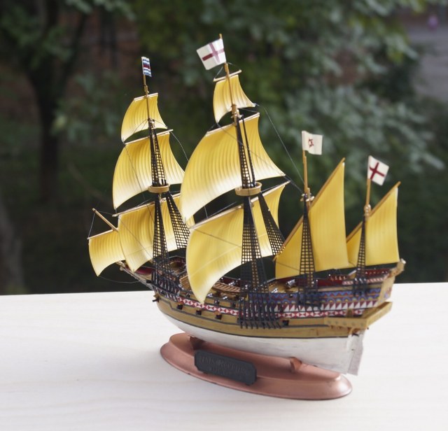 Добрый день! Согласен с прозвучавшими выше замечаниями. Даже в такой маленькой модели можно многое сделать с такелажем, вплоть до обвязки пушек и шлюпки.