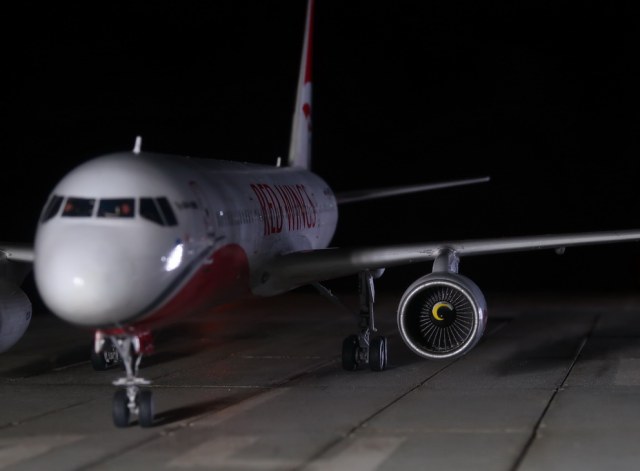 В ночи смотрится просто восхитительно! Декальный лобовик на некоторых фотографиях очень живо смотрится, но прозрачное остекление все же лучше. Там внутри пилотов чтоли видно?)За выделенную расшивку +, хорошо объем подчеркнула.