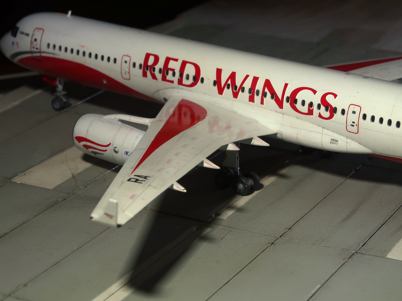 Володя, вот ткни пальцем, где граница красной декали может гулять, кроме одного места на левом крыле, где оторванная декаль докрашена аэром и одного стыка по правому борту в доли миллиметра)))