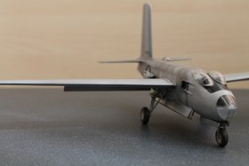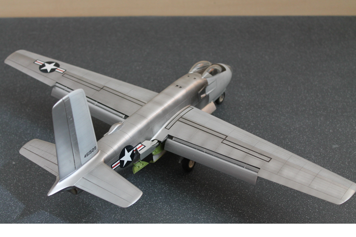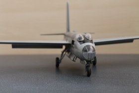 Любопытная конструкция и внешний вид этого реактивного бомбардировщика. Модель очень понравилась. Точно сказали, механизация крыла, да и открытый бомболюк люк заметно прибавили интереса. Хорошая покраска и фото. Необычные фонари пилотов делают эту часть самолета похожей вот на это земноводное. Но это шутка!
