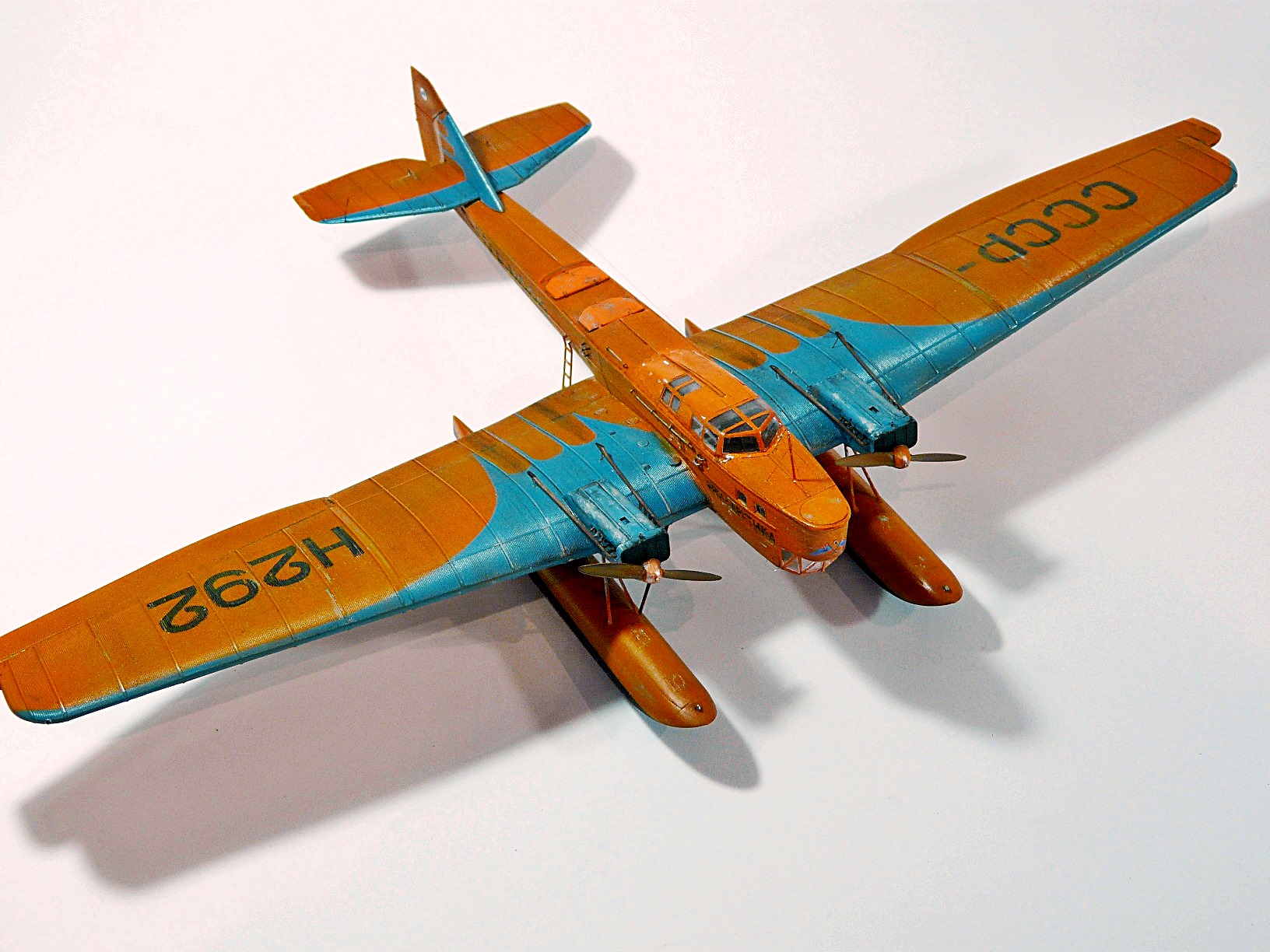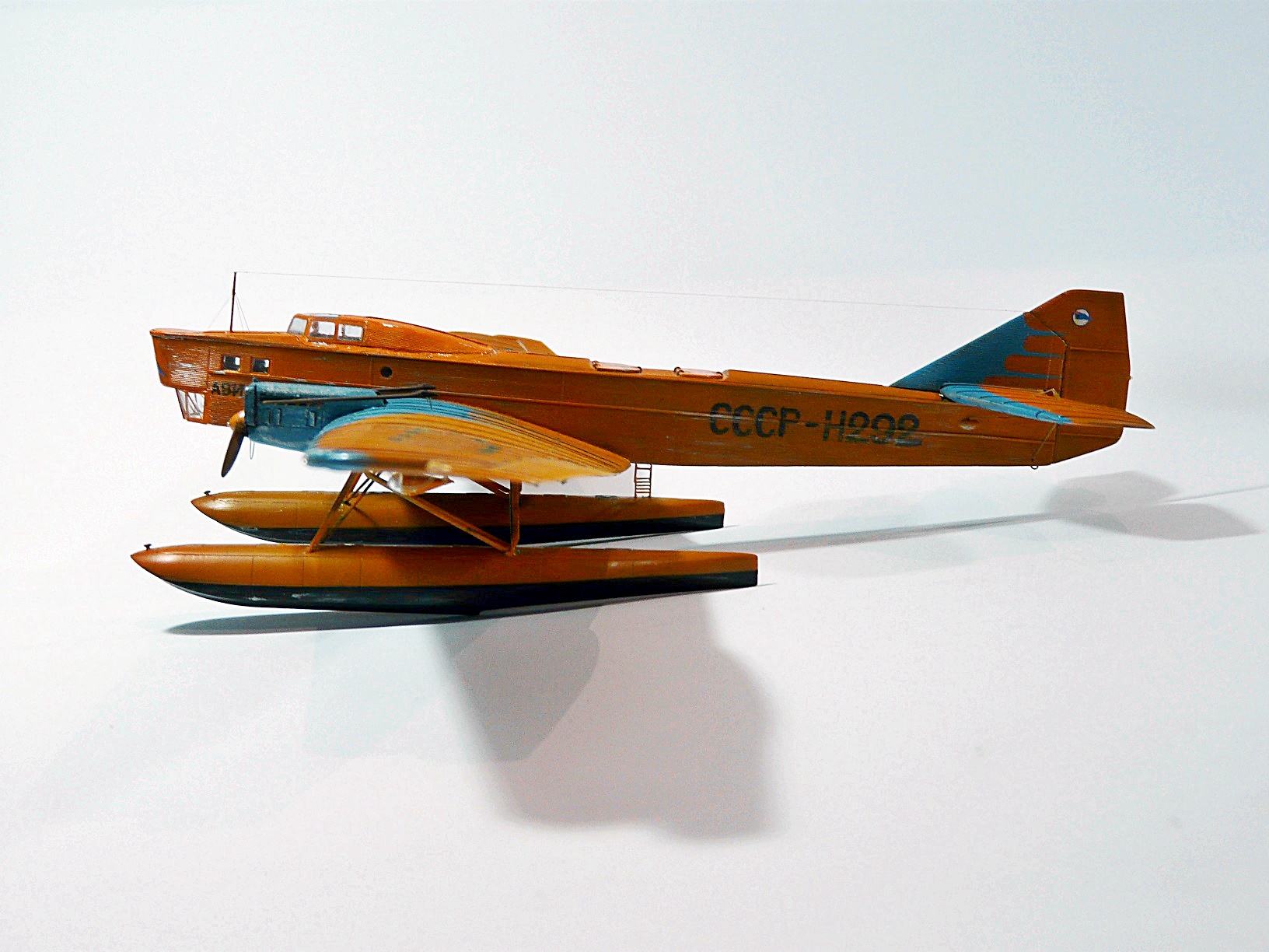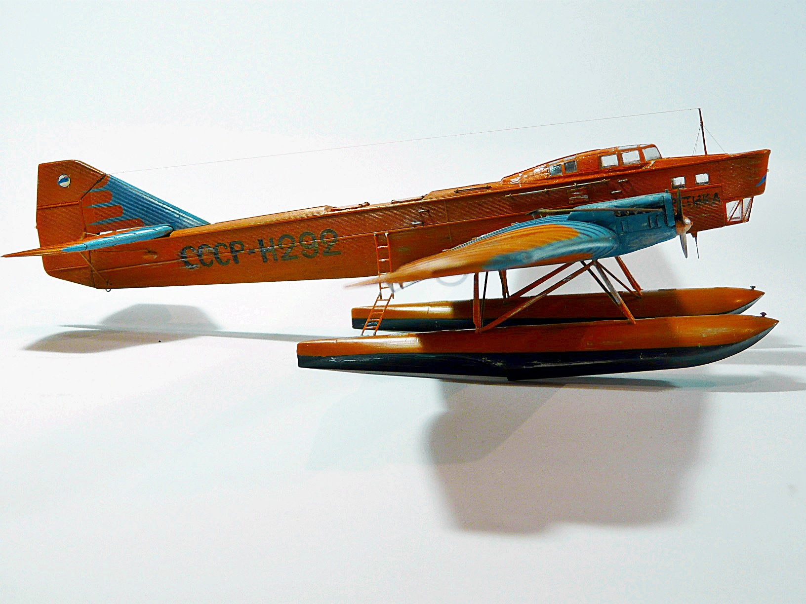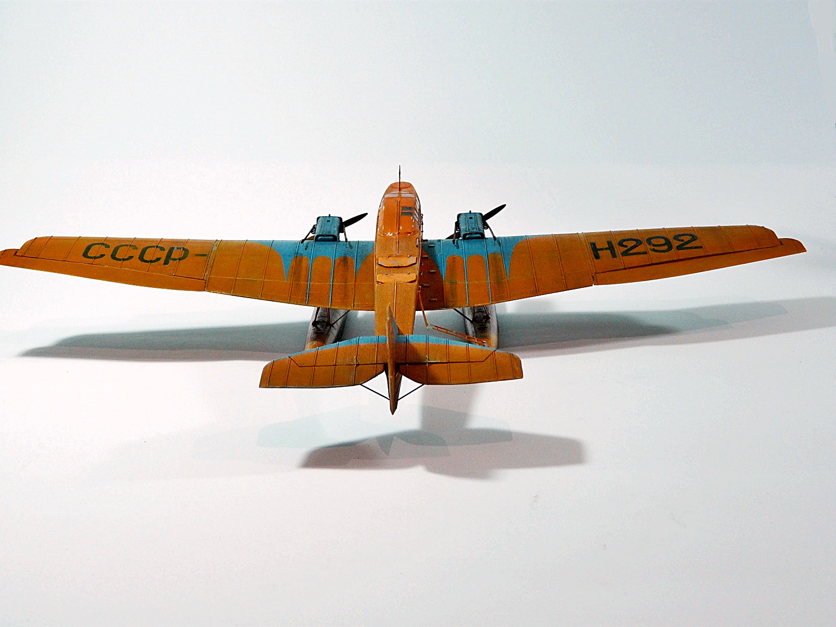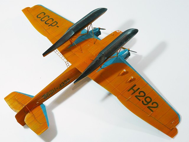 Переделка стандартного набора ТБ-1 от Микромира.По закону подлости, пока извращался с конверсией, фирма выпустила набор именно с вариантом Н-292, хотя и допустила при этом пару неточностей.При постройке модели установил самодельную закрытую кабину, обклеив ее гофром из фольги, добавил поручни и скобы, прочую мелочь. Заменил некоторые детали крепления поплавков на металл, для прочности.Красил автоэмалями. Бортовые номера по большей части трафареты, отдельные элементы - декали из запасов.