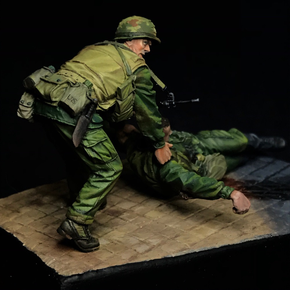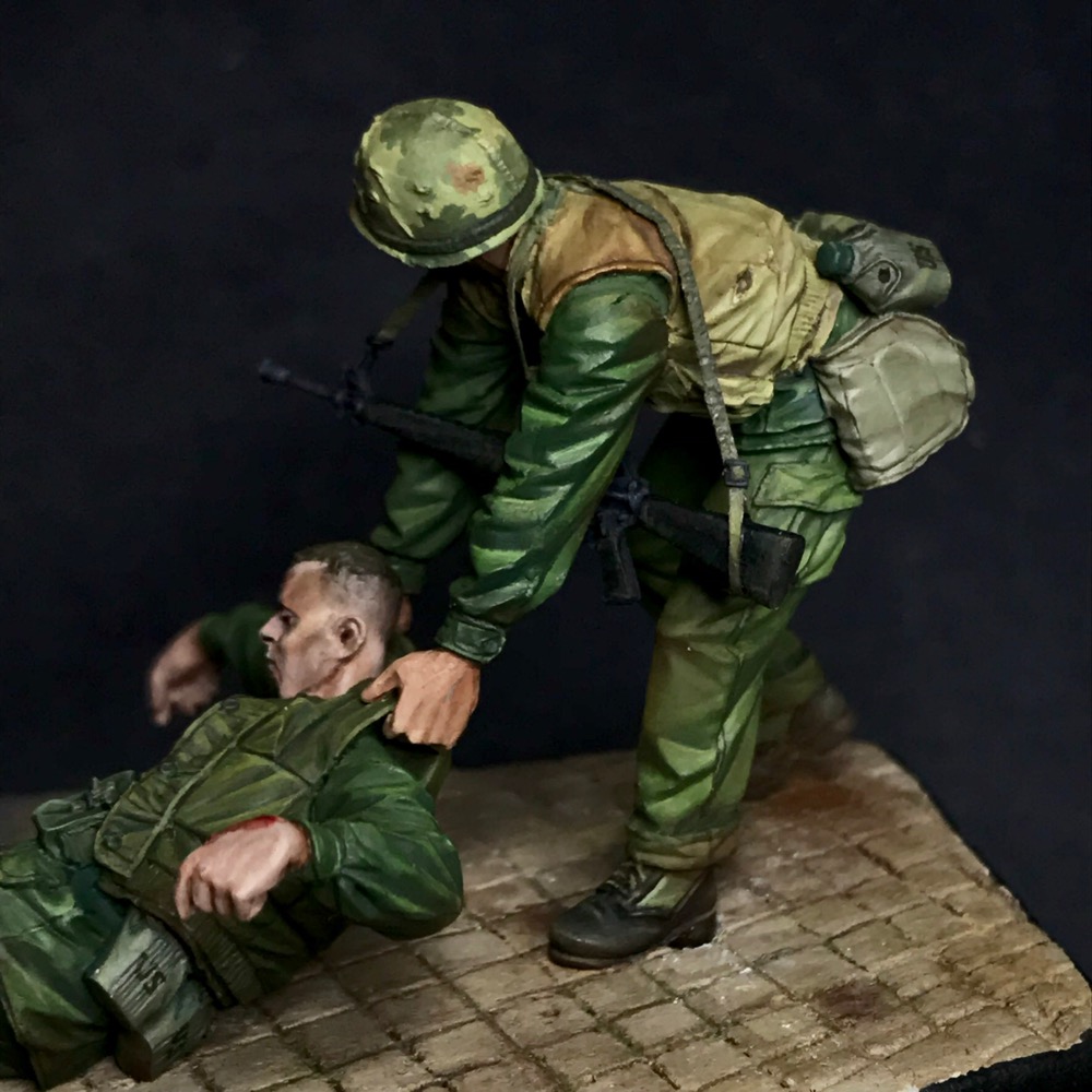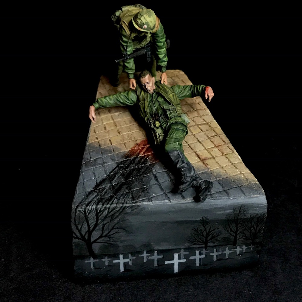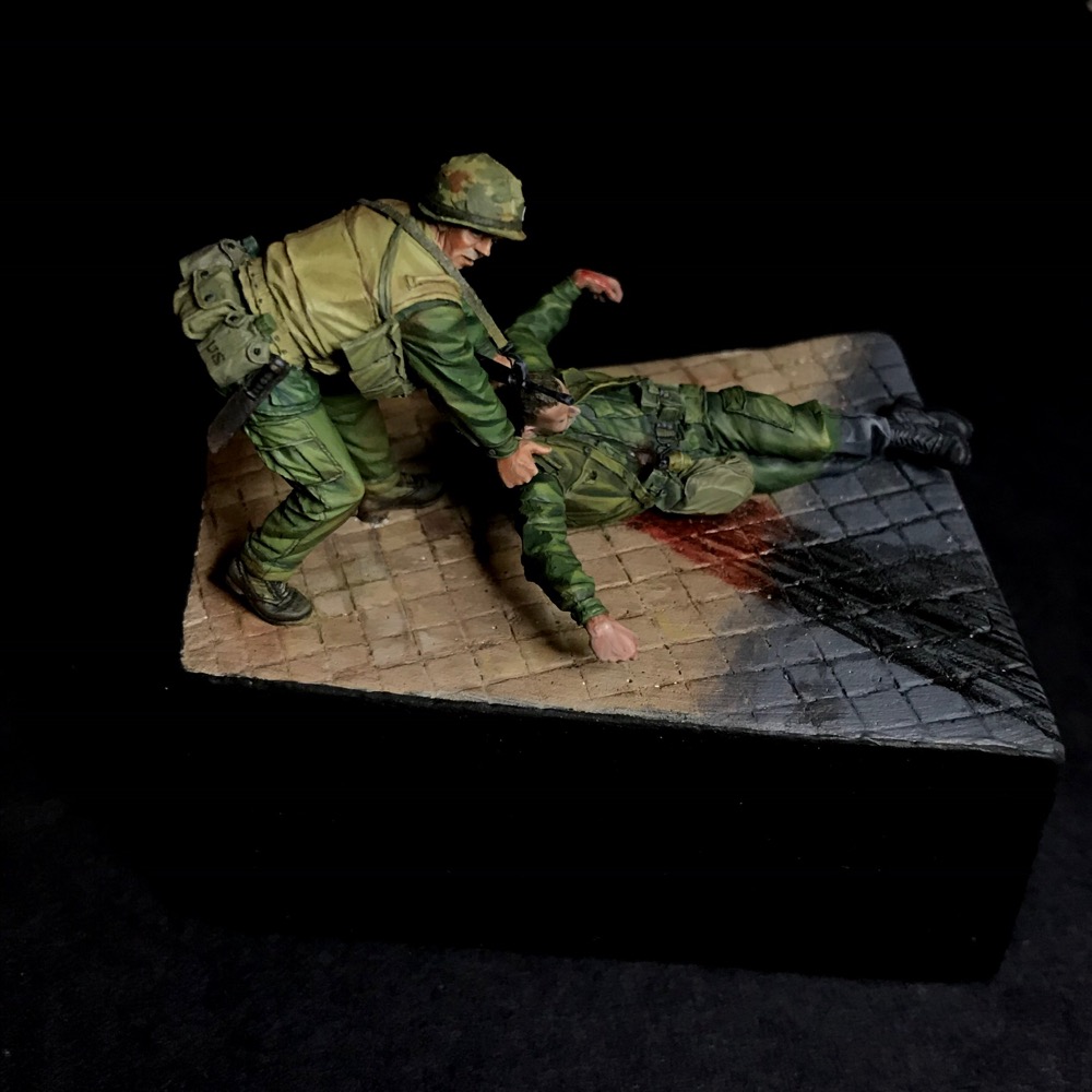 Одна из моих весенних работ, посвящённая войне во Вьетнаме. Фигурки от Bravo 6-очень понравились в работе. Окрас-акрил Vallejo, подставка-гипс.