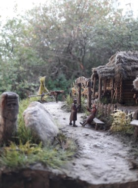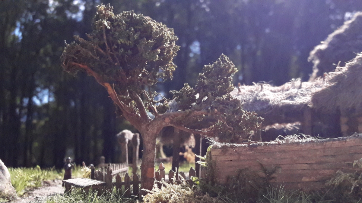 Тема Диорамы проста: обычные будни сельских жителей средних веков в районе нынешней Польши. Два мужичка, давно не видевшиеся и рассказывающие друг другу всякие были да небылицы, хозяин дома, задумчиво рассматривающий будущую вывеску, да деревенский бедняк, несущий из леса ветки с сухостоя. Тишь да гладь.