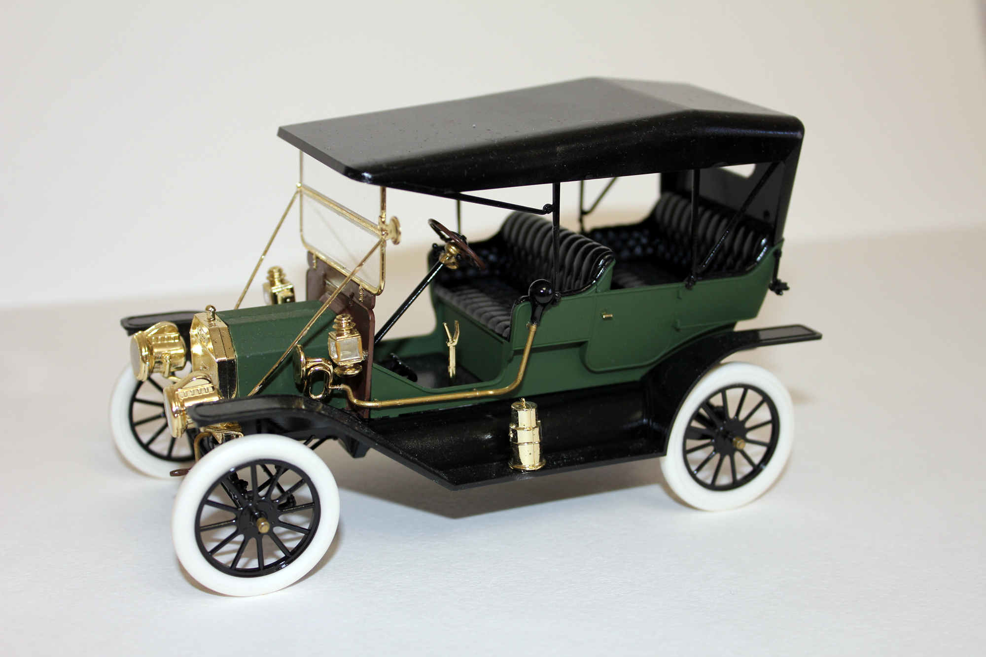 Модель Форд Т Туринг производства ICM в масштабе 1:24. Модель из коробки без изменений и дополнений. Можно сказать, что модель для улучшения навыков работы с аэрографом. Такую блестящую модель пачкать рука не поднялась. Краски Тамия.
