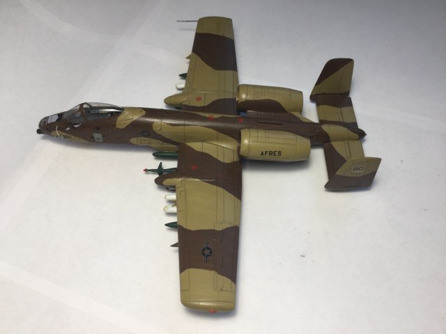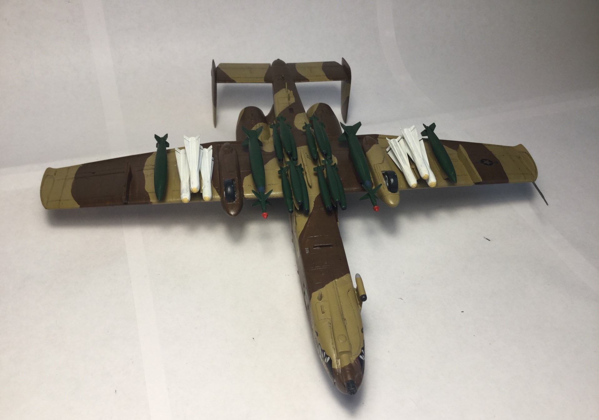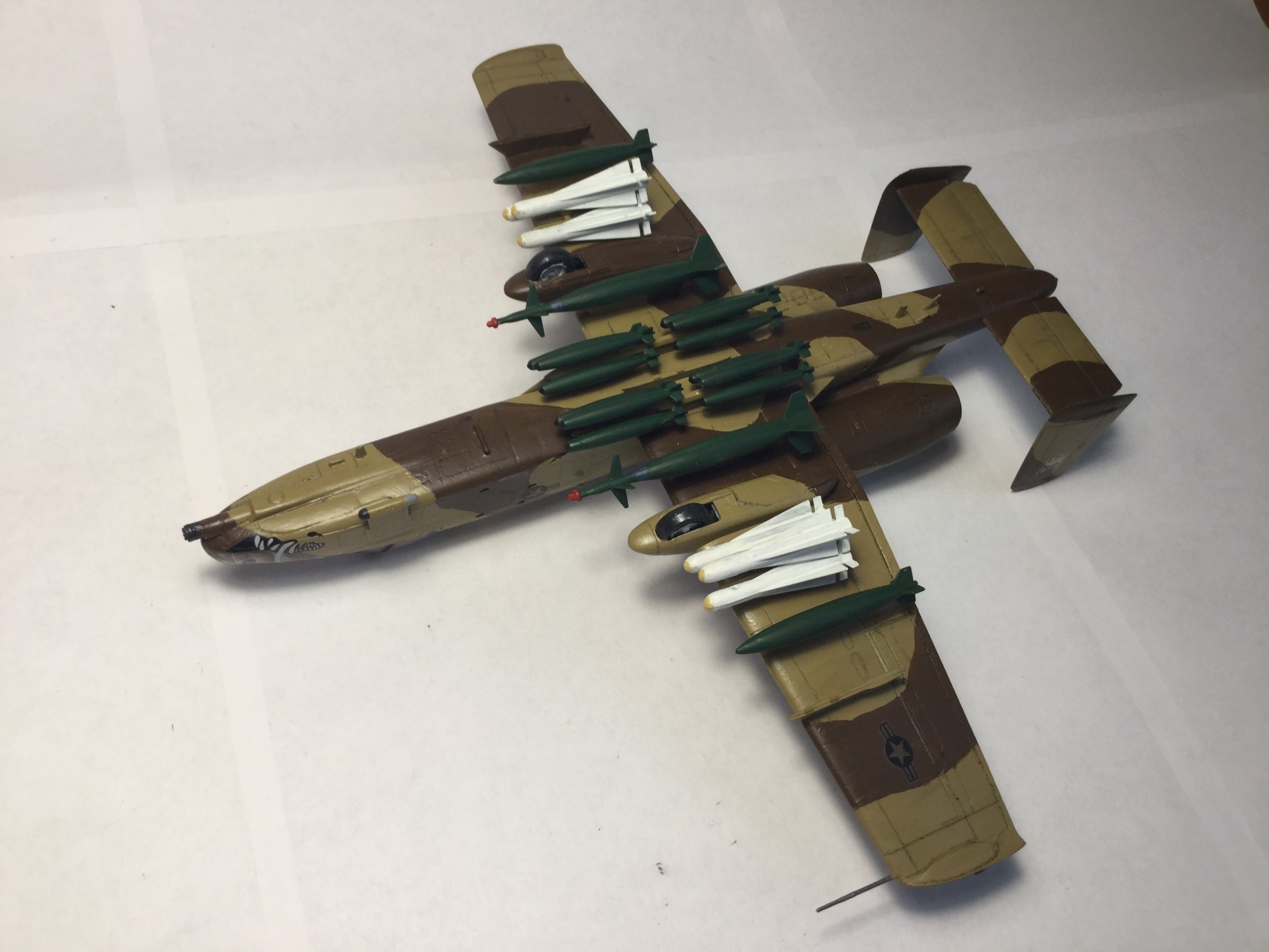 Навесил все вооружение, что было в наборе. Раскраска выдуманная. Красил Тамия эмаль, кистью. Выделил расшивку карандашом. Сложно было приклеить большие декали на носу, долго разглаживал складки.