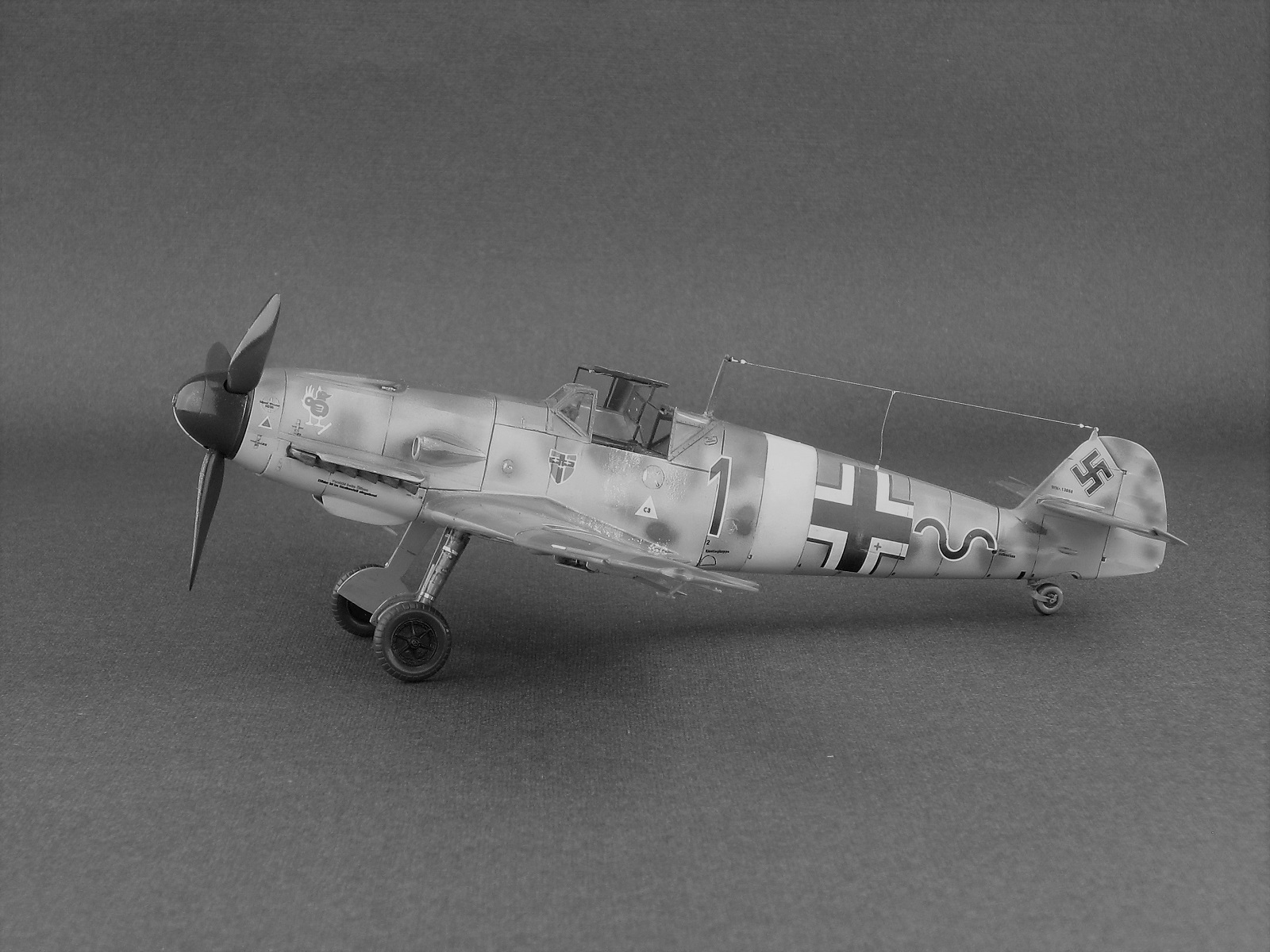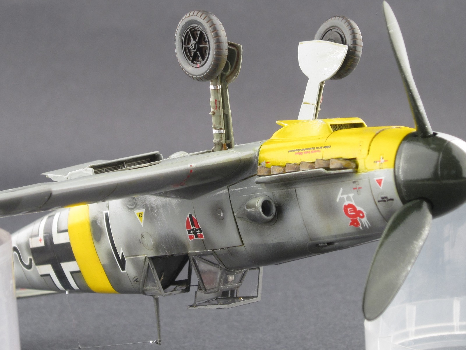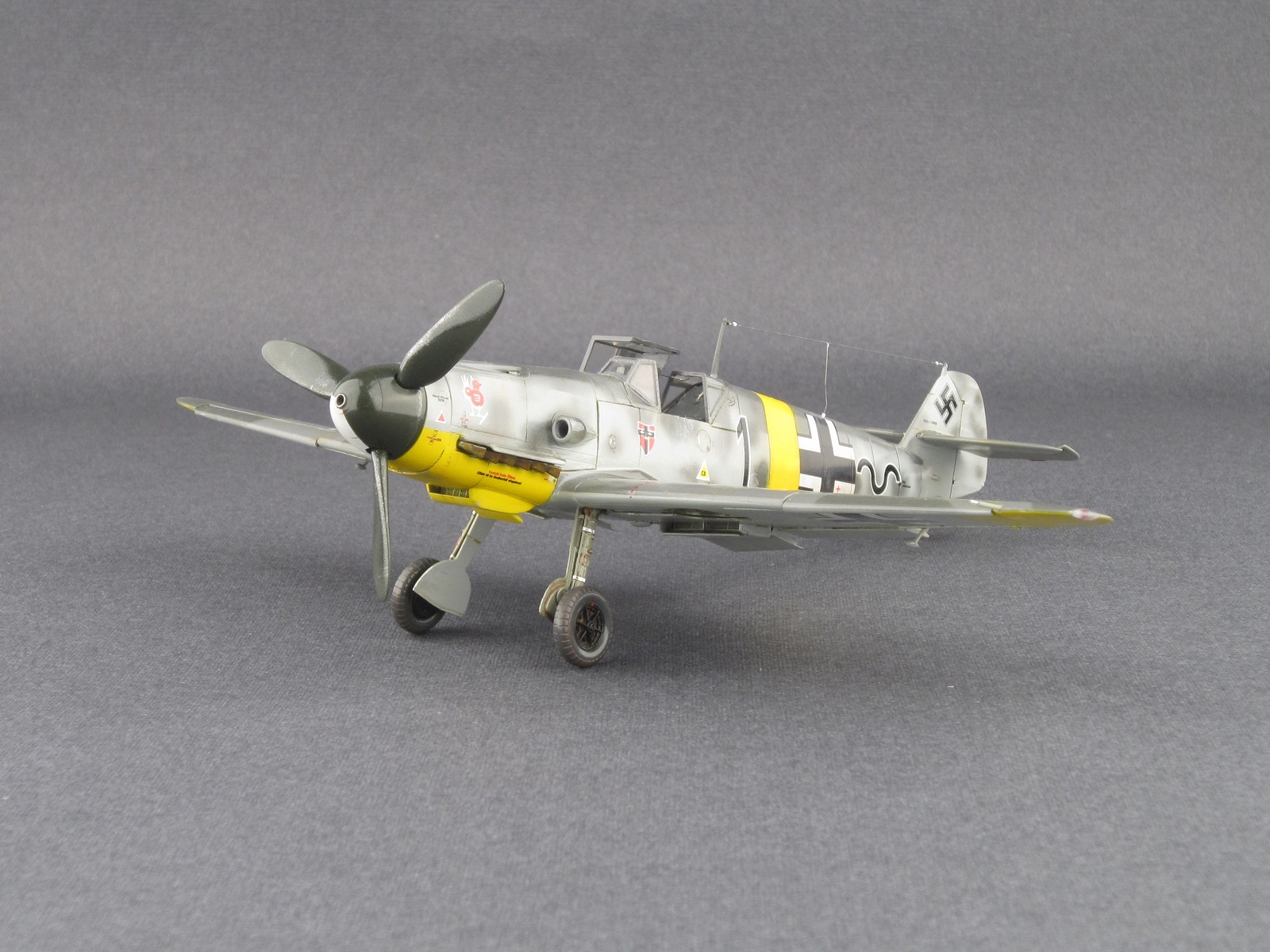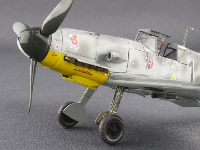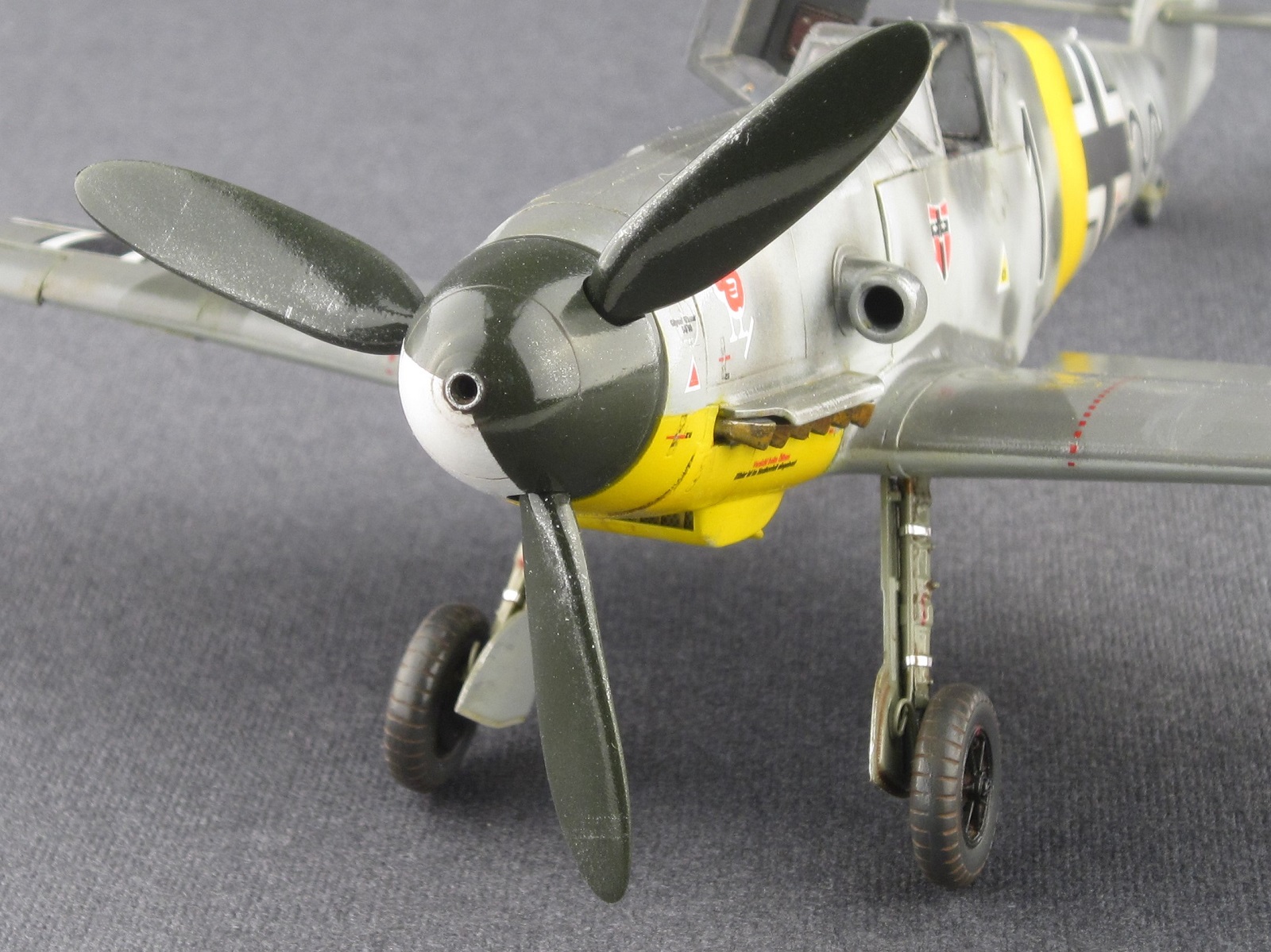Красиво выполнена модель. Про излишний блеск кока и лопастей винта уже обсудили. Немного смущает положение створк радиаторов. Нашел, что для Bf 109G-2 створки могут находиться в трех положениях: