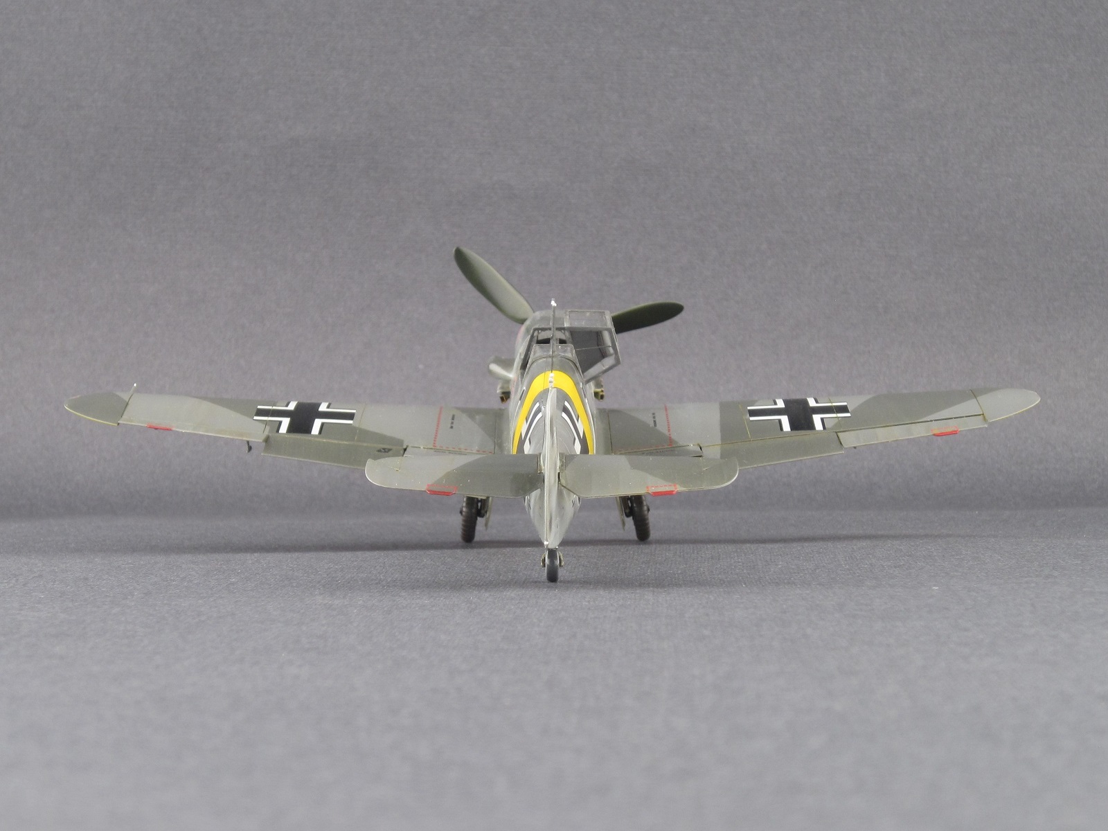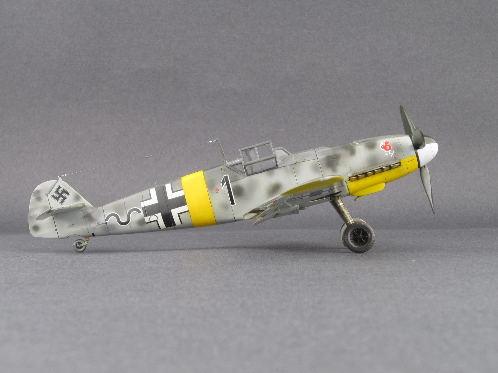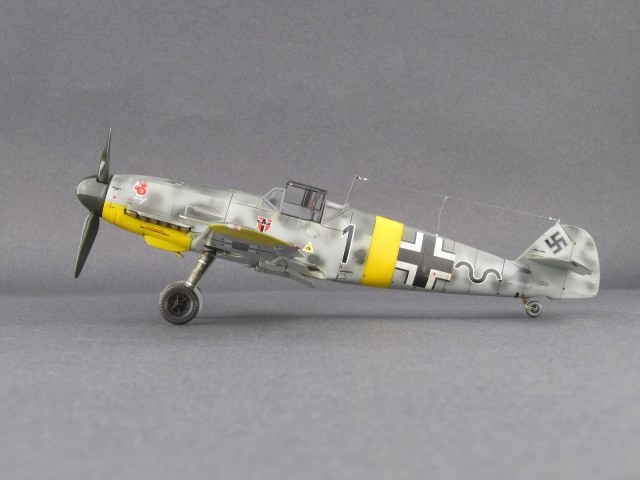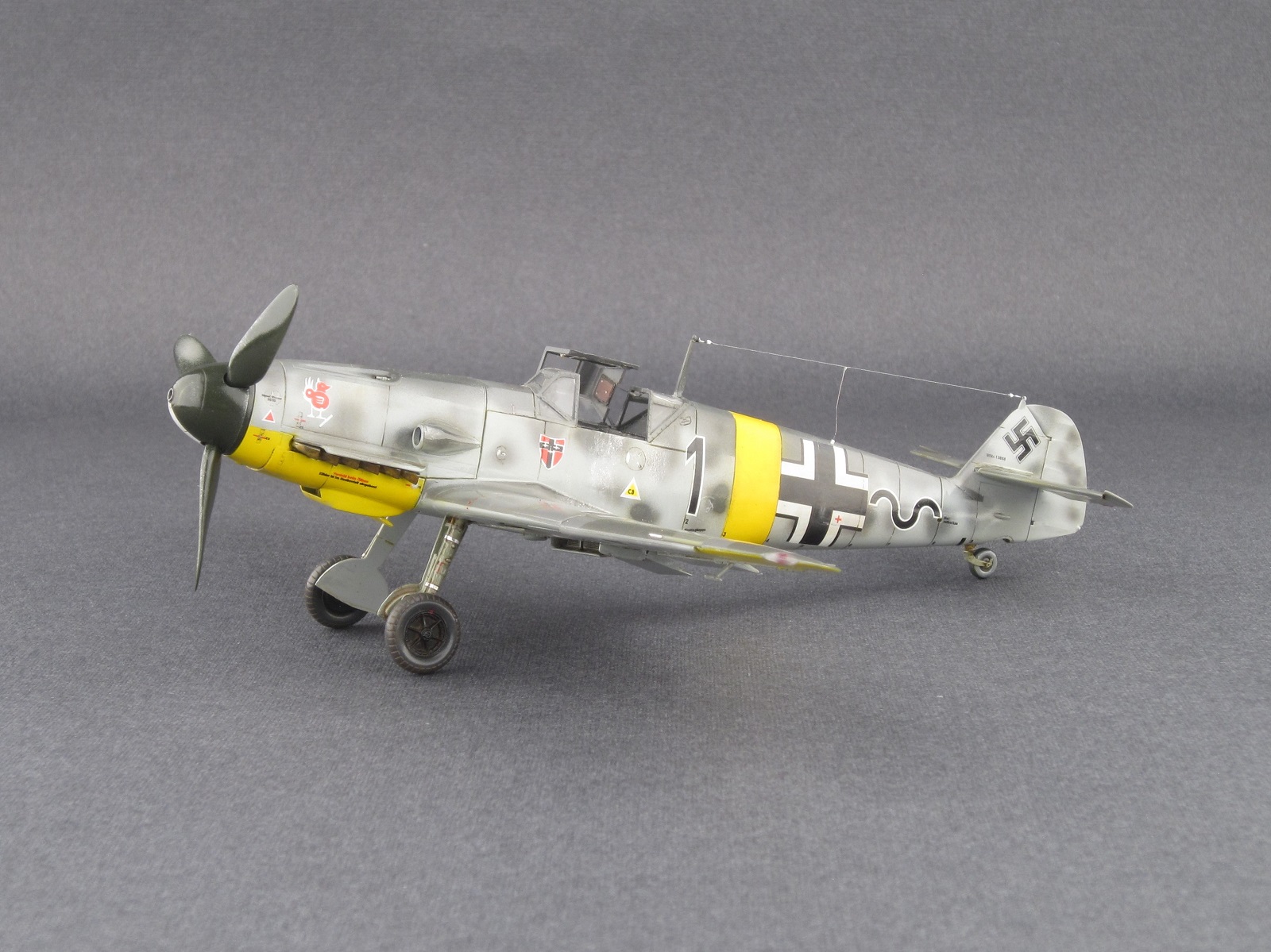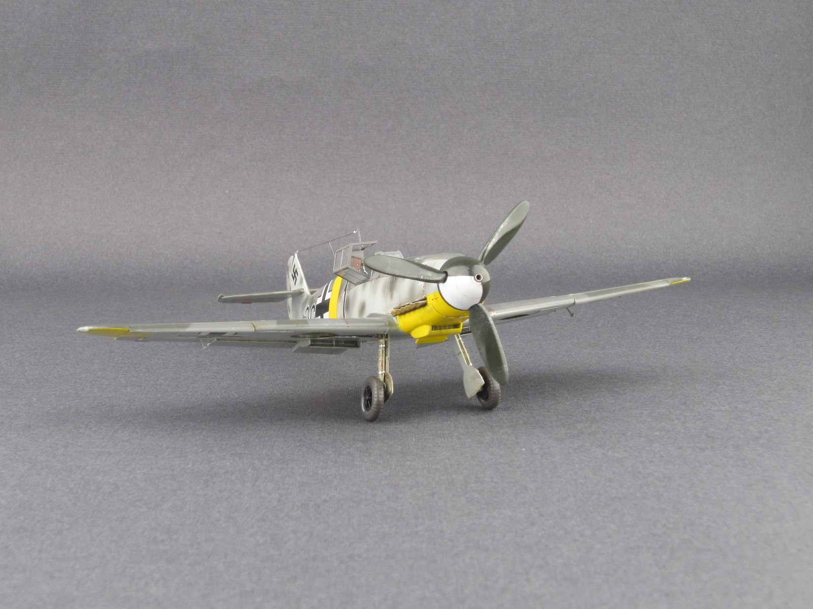 Красиво выполнена модель. Про излишний блеск кока и лопастей винта уже обсудили. Немного смущает положение створк радиаторов. Нашел, что для Bf 109G-2 створки могут находиться в трех положениях: