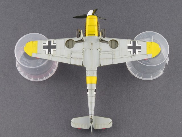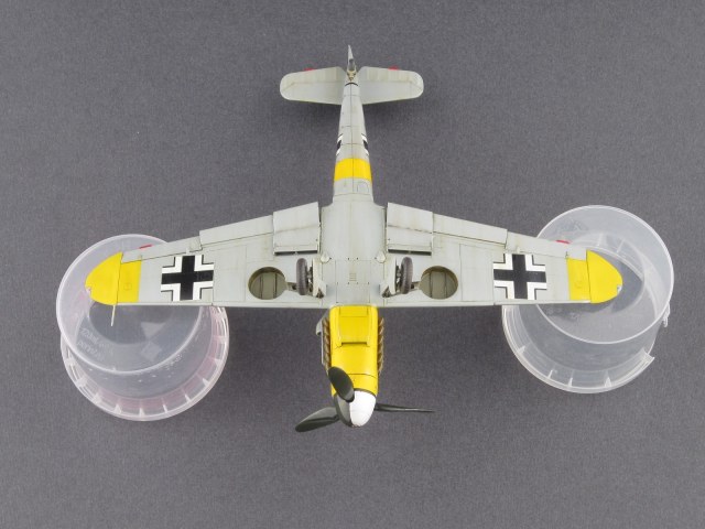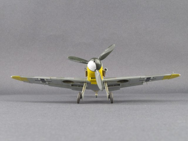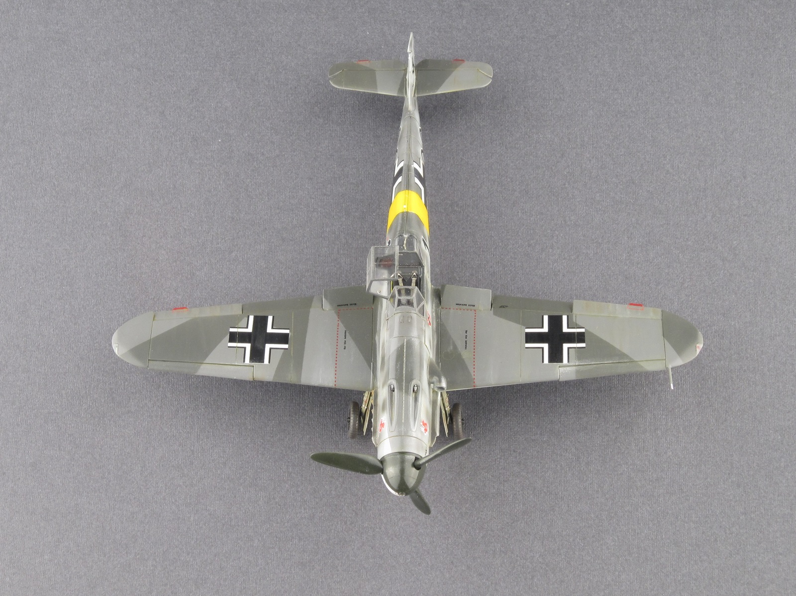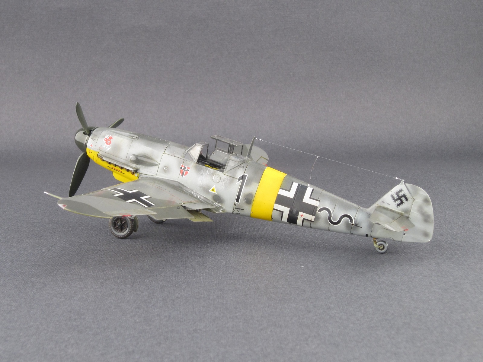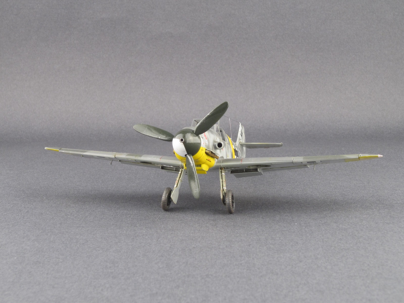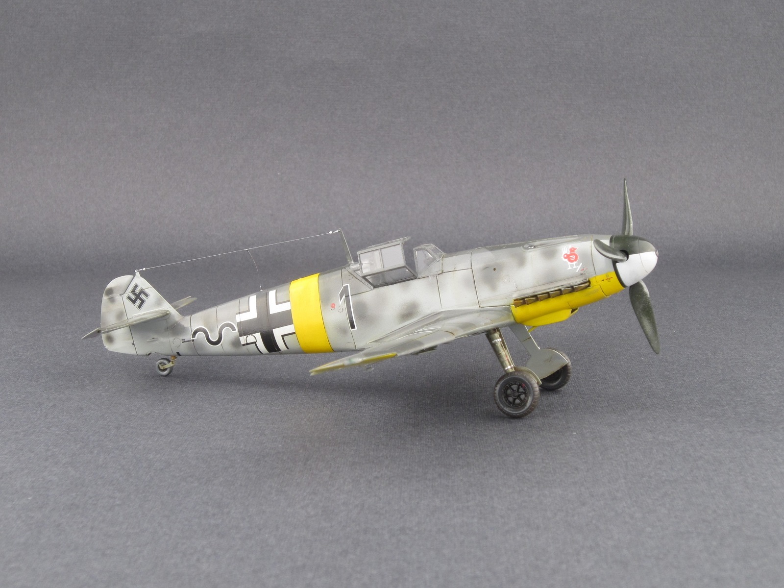 Красиво выполнена модель. Про излишний блеск кока и лопастей винта уже обсудили. Немного смущает положение створк радиаторов. Нашел, что для Bf 109G-2 створки могут находиться в трех положениях: