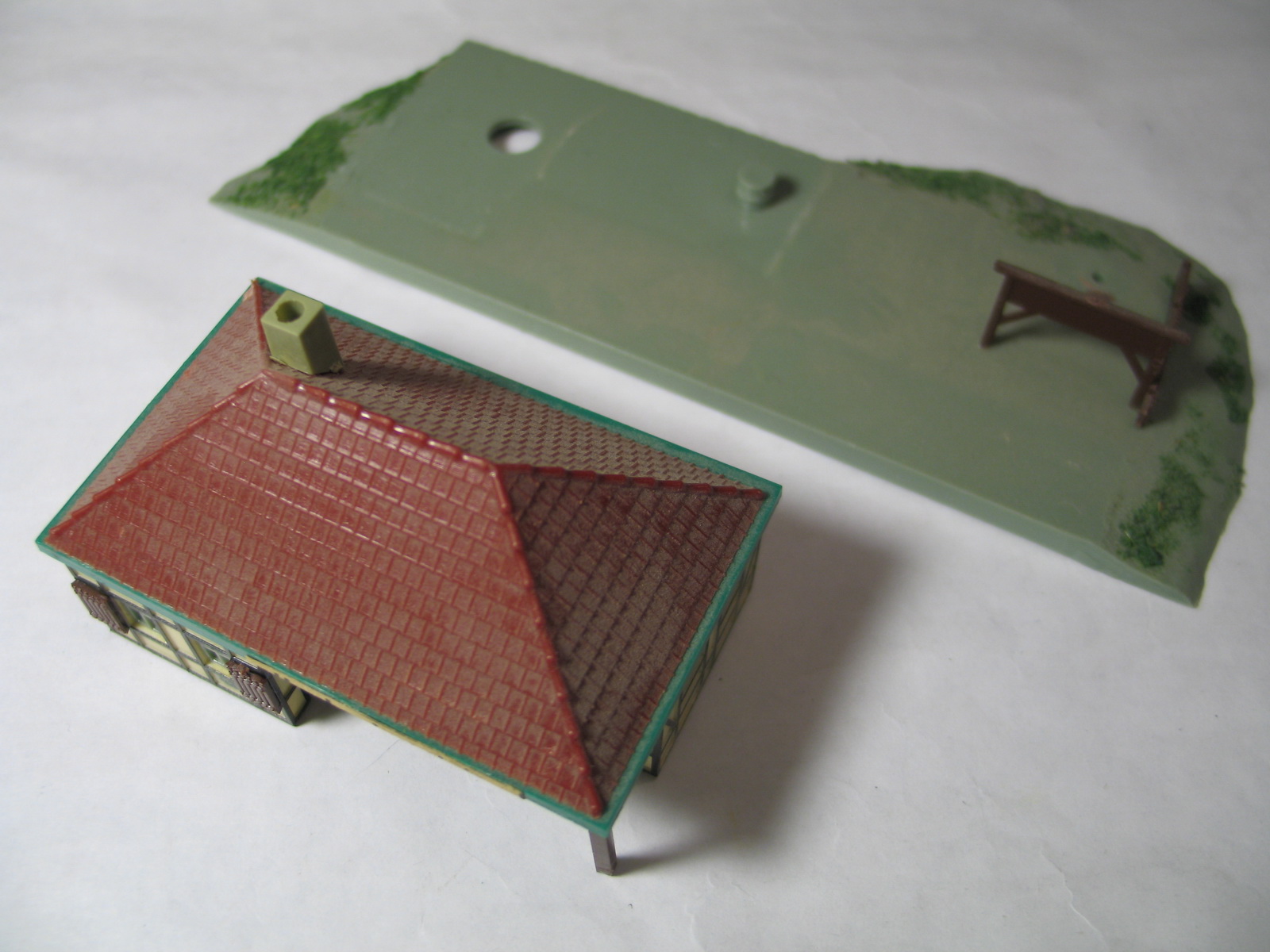 - выделены смывкой поверхность платформы, "каменная кладка" фундамента, все "досчатые" поверхности, а также черепица на крыше;