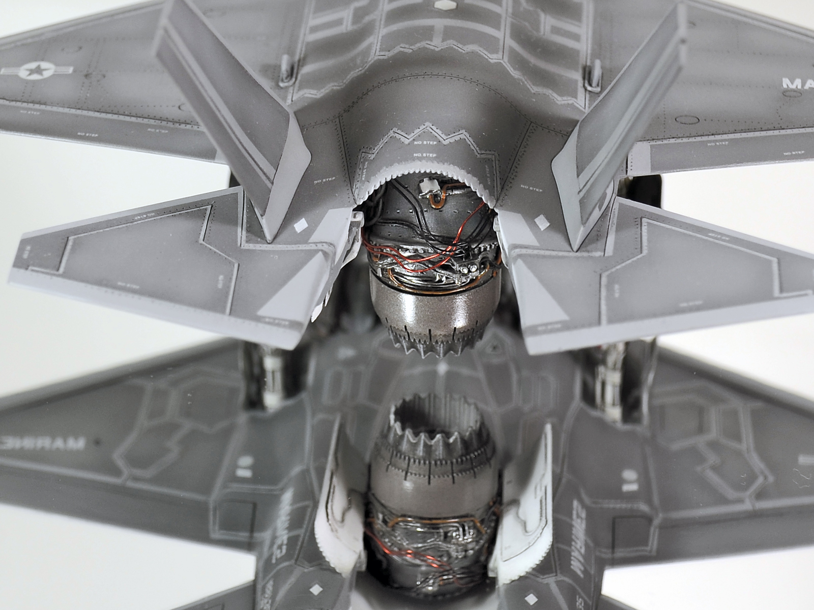 Было использовано два набора фототравления от Эдуарда с интерьером и экстерьером для F-35B. Так как в данной модели не предусмотрен был второй (задний) отсек воздухозаборника, пришлось его выпилить и облагородить из подручных материалов. Это единственное, что вызвало небольшие трудности в связи с подгонкой и отделкой внутри самого второго отсека. Остальное было дело техники. Все стандартные действия по работе с травлением.