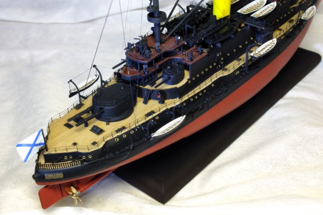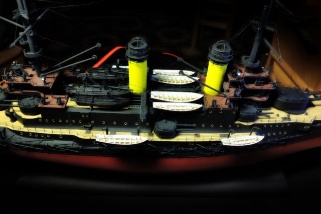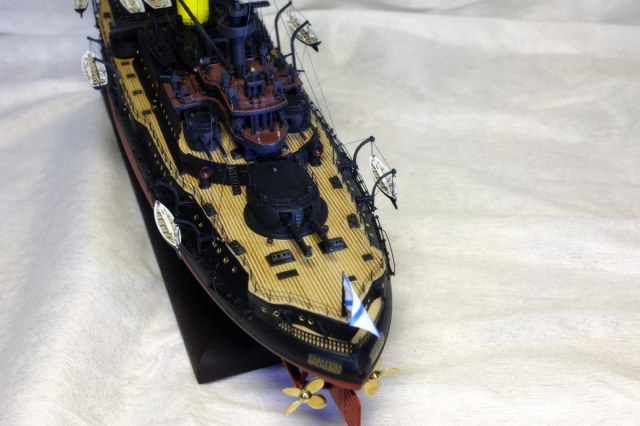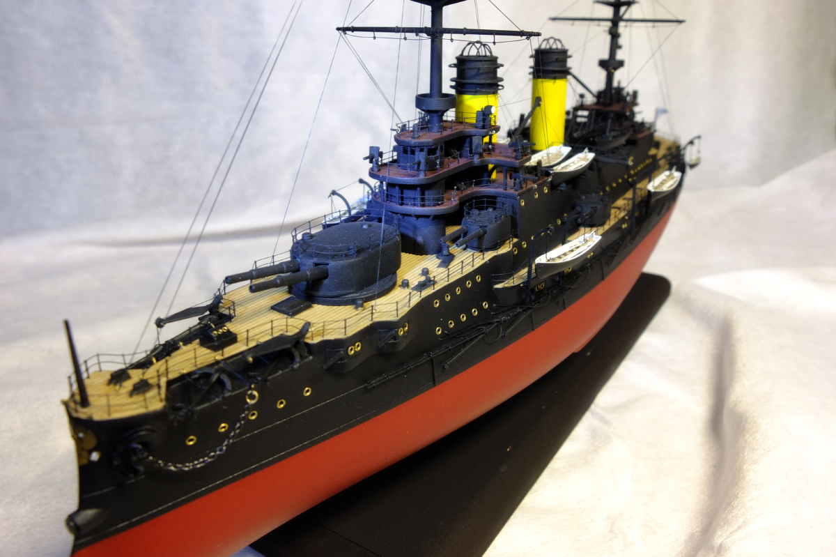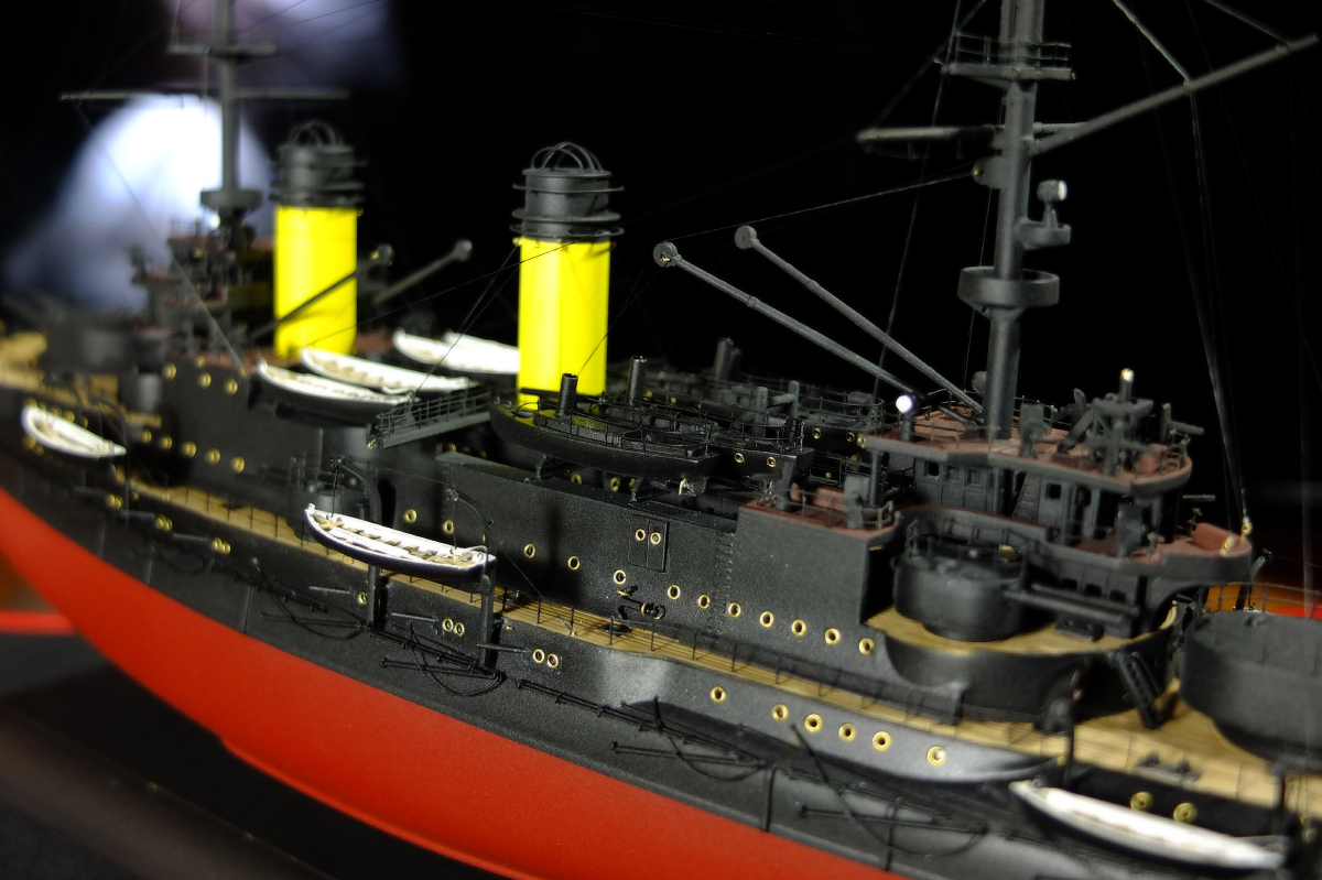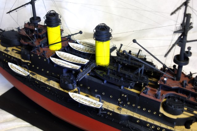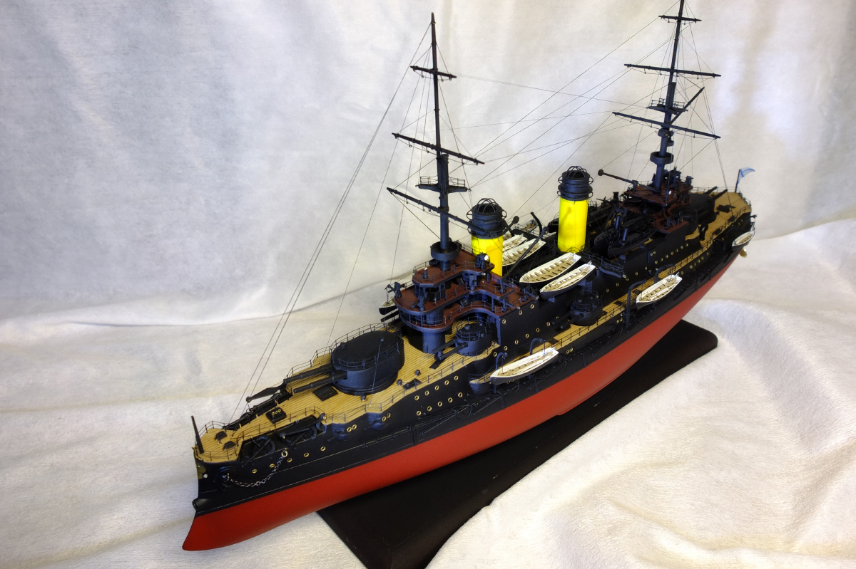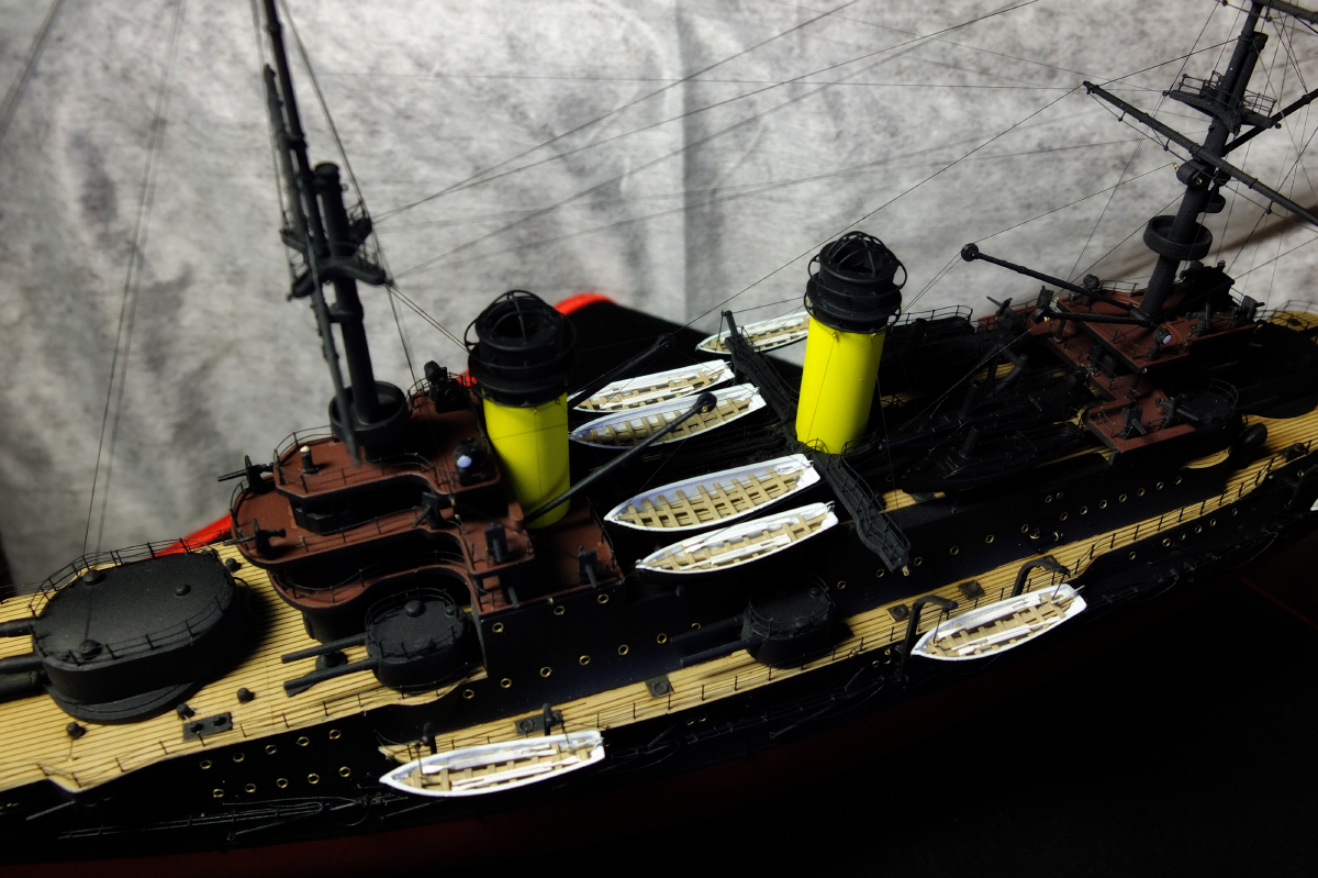 Здравствуйте! В матчасти данного броненосца не разбираюсь, но модель смотрится! Очень понравились шлюпки, не смотря на их цвет.