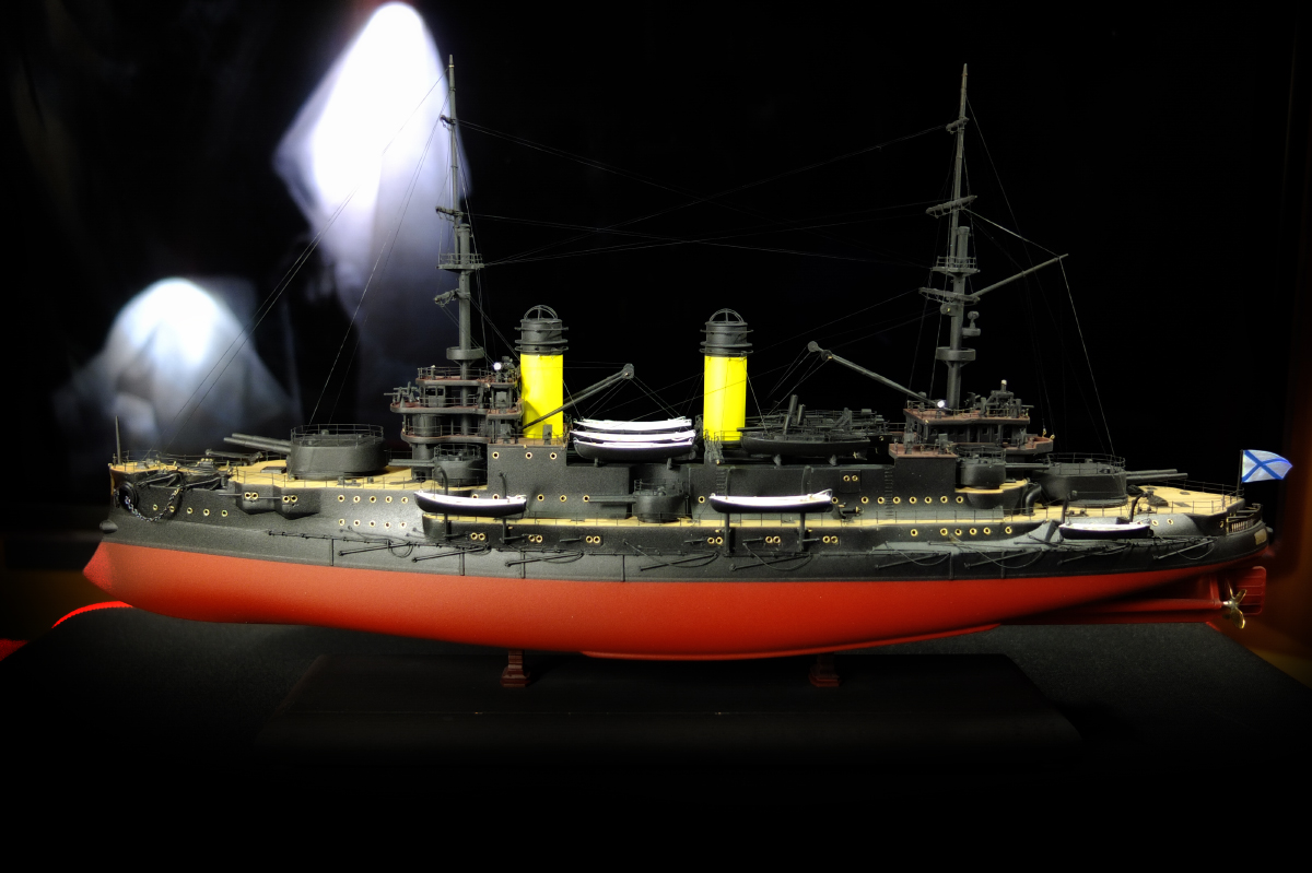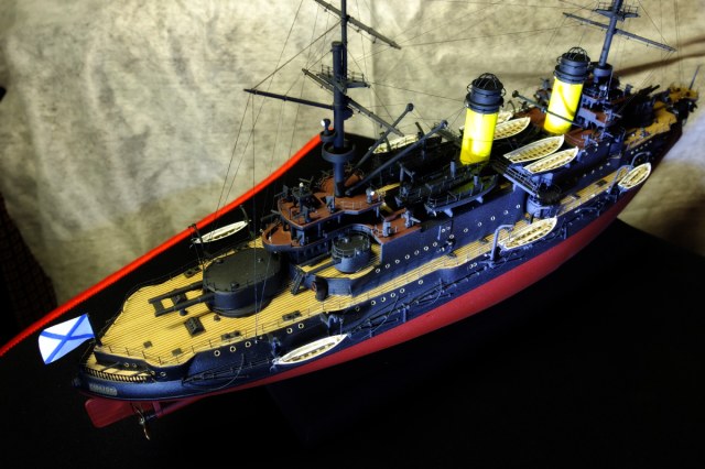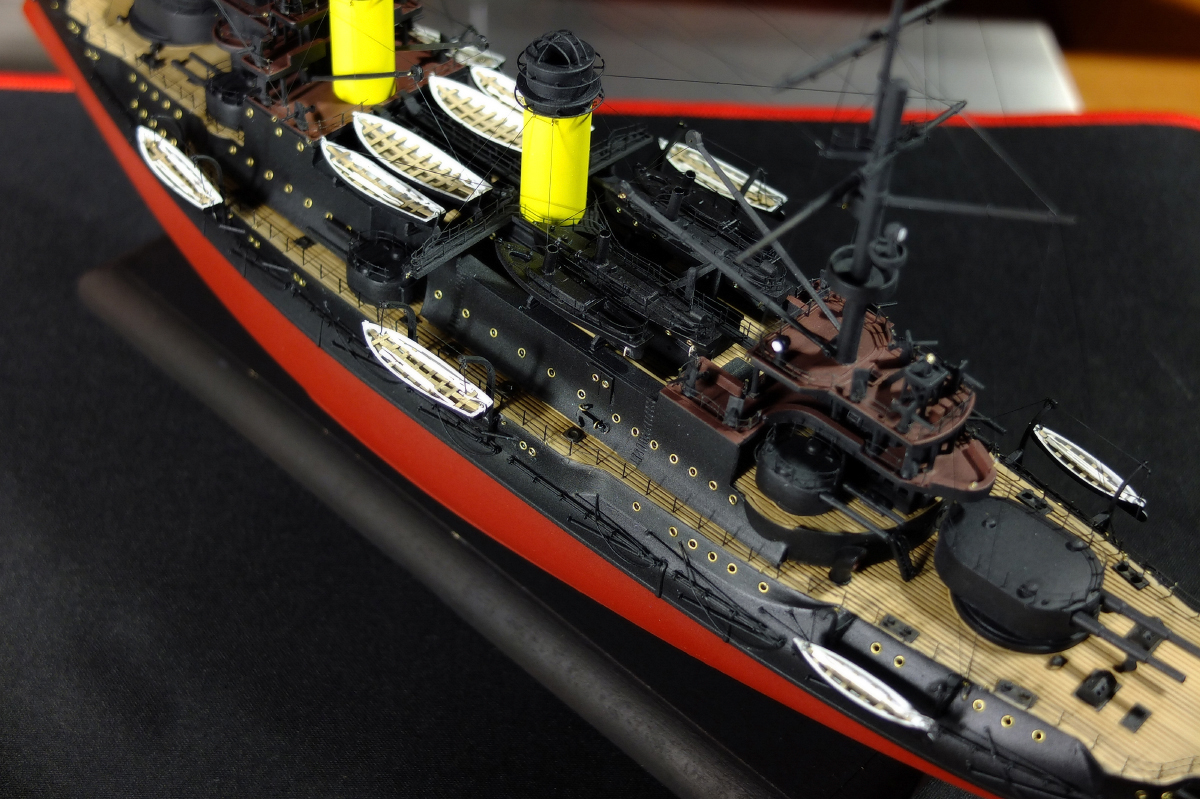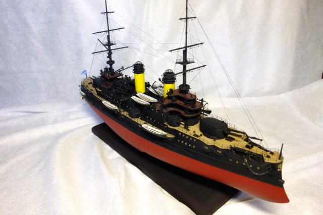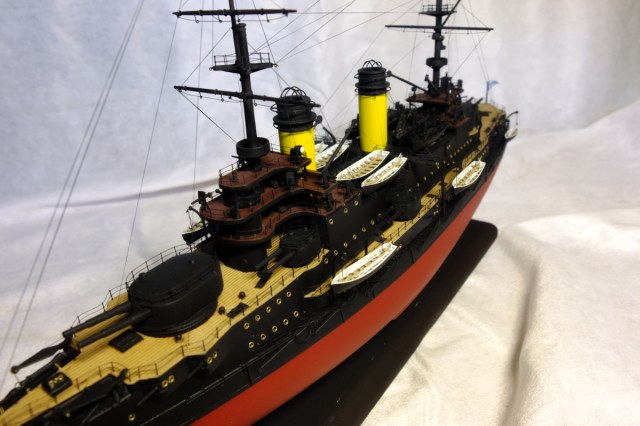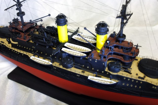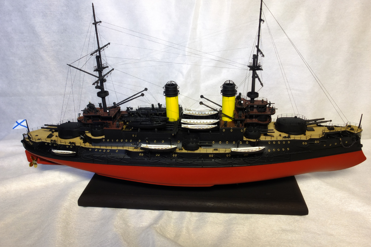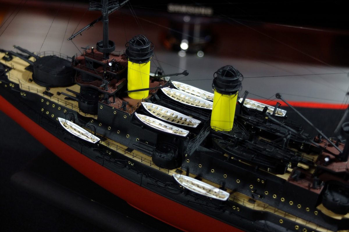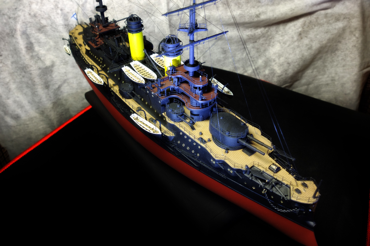 Здравствуйте! В матчасти данного броненосца не разбираюсь, но модель смотрится! Очень понравились шлюпки, не смотря на их цвет.