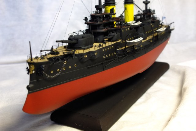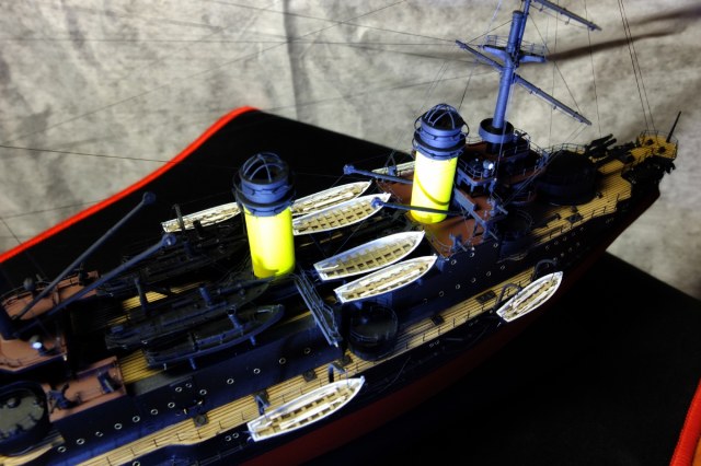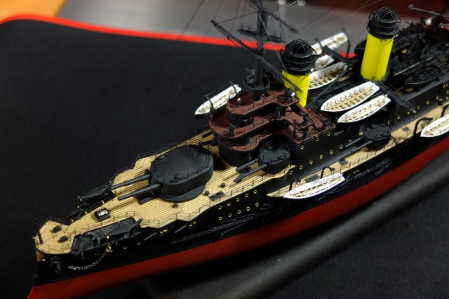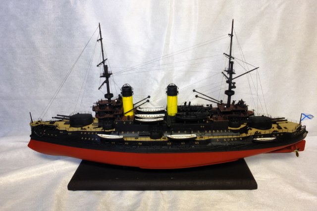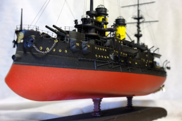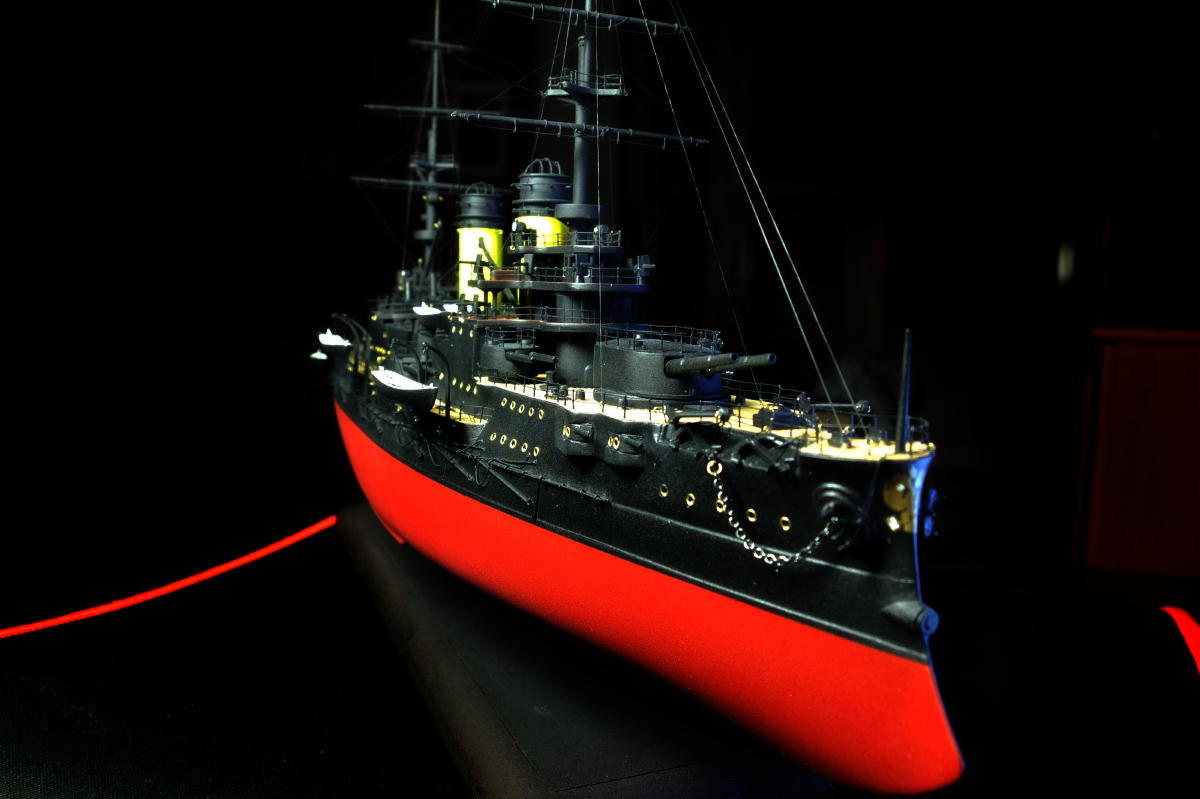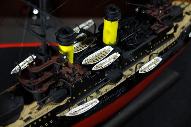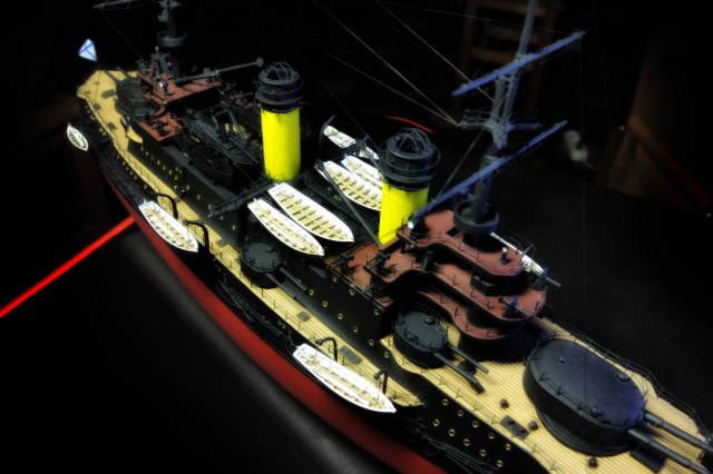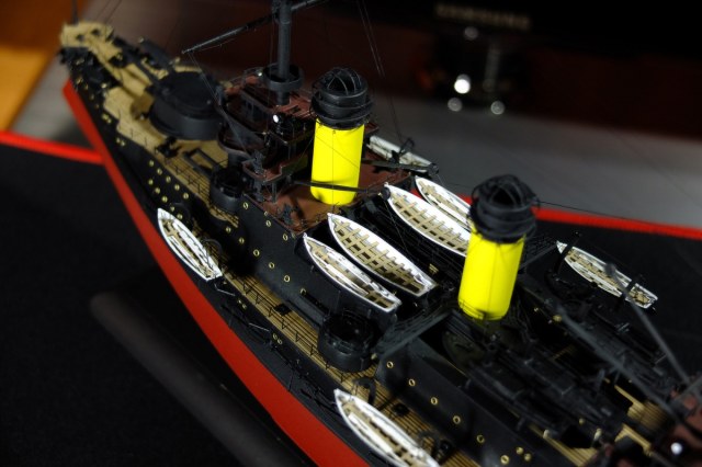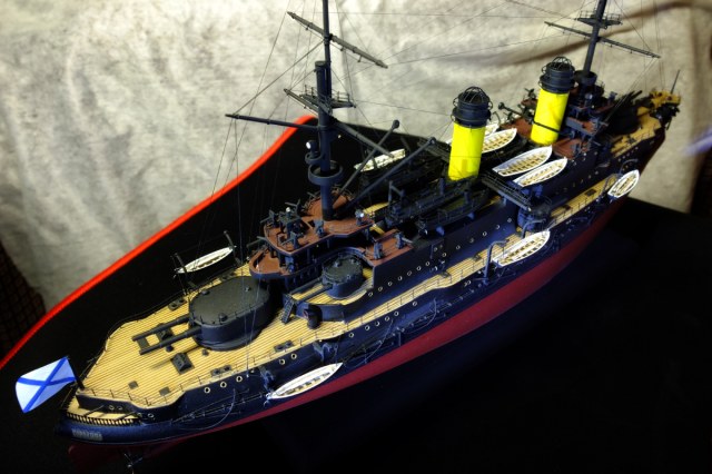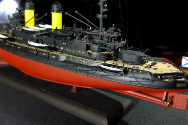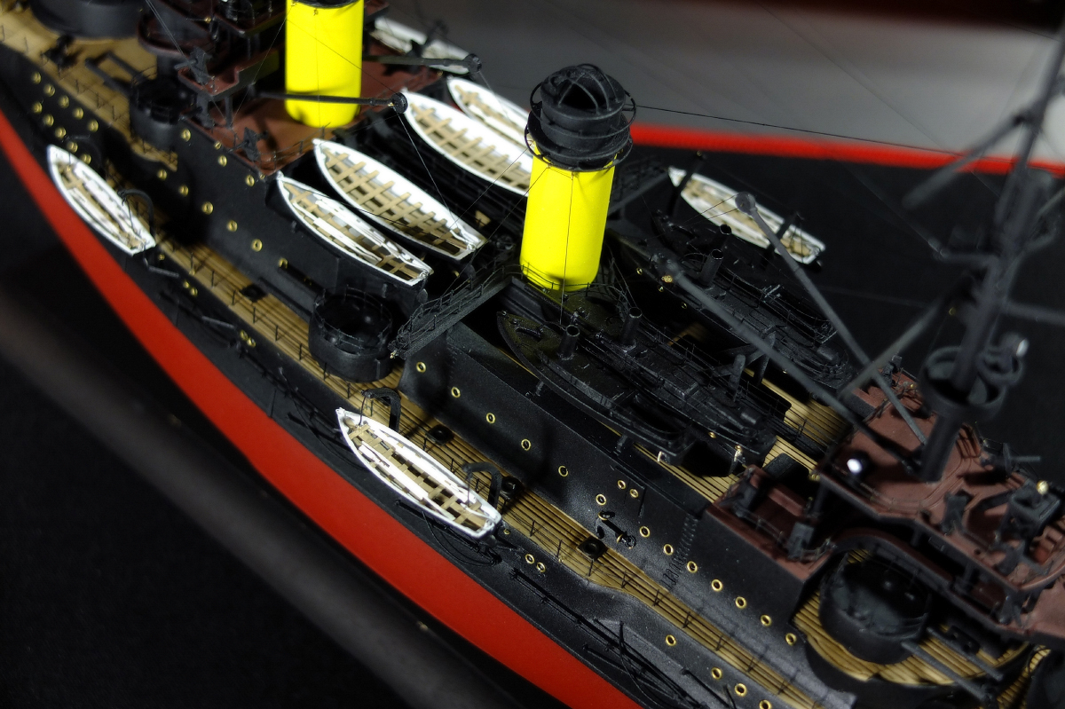 Здравствуйте! В матчасти данного броненосца не разбираюсь, но модель смотрится! Очень понравились шлюпки, не смотря на их цвет.