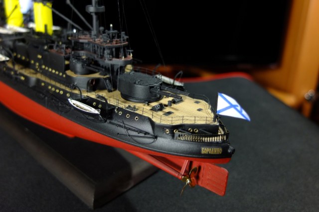 И последнее. То что поставлены сборные леера это хорошо, я эту технику давно уже использую и продвигаю. Но вот то, что на крышах башен ГК как минимум один слой лееров нужно срезать - это факт, а на мостиках именно ЭБР Бородино нес трехнитиевые леера, тоже факт что называется документальный.