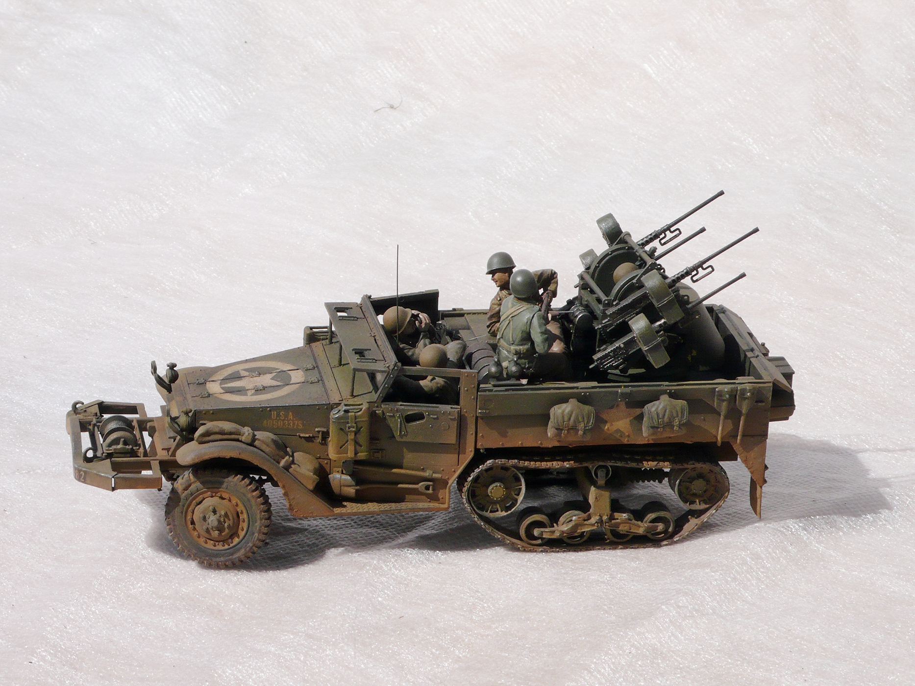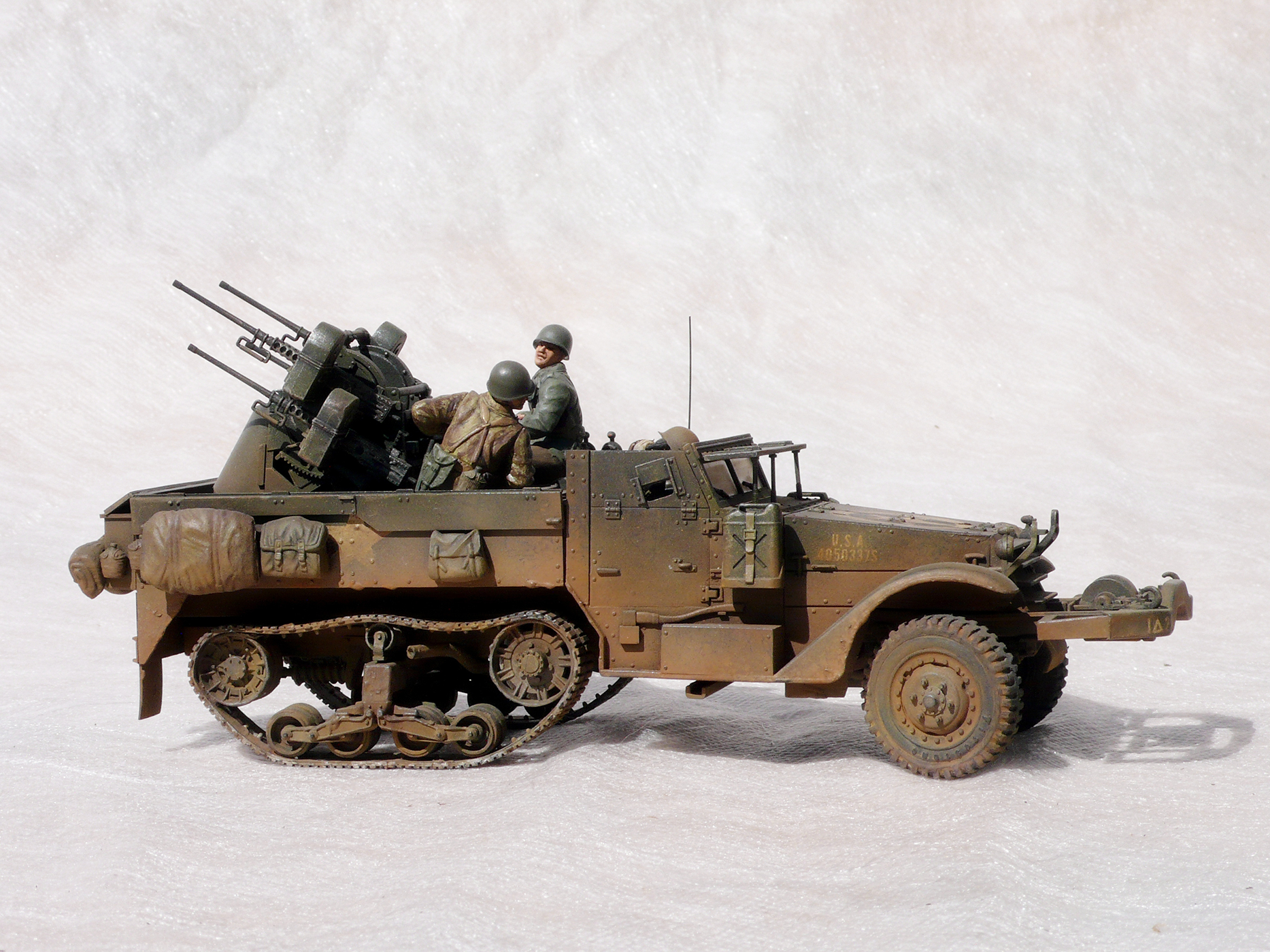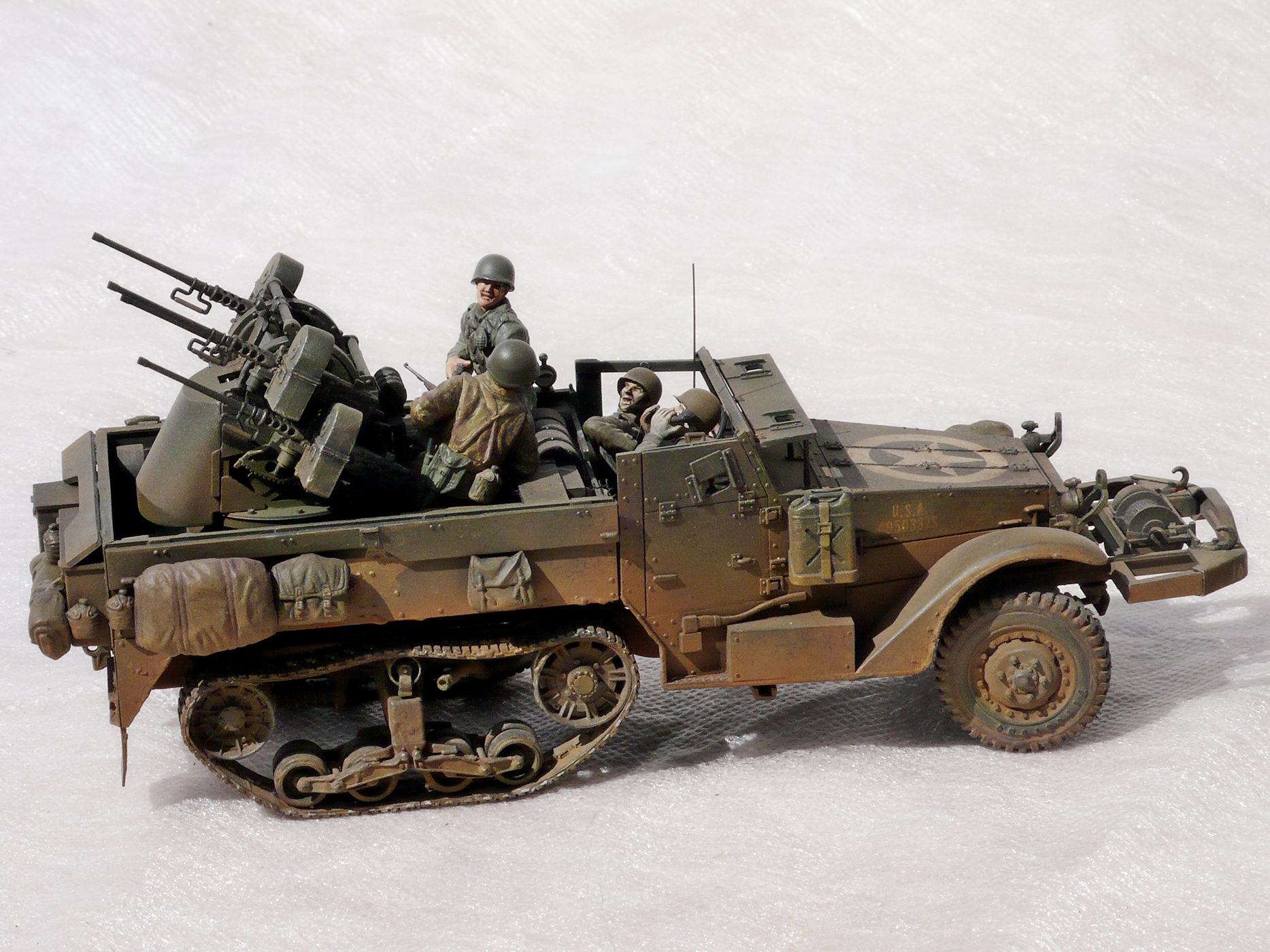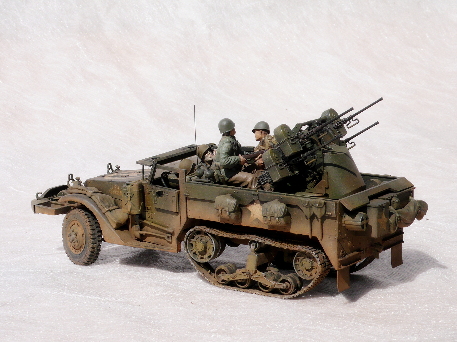 Хорошая работа! Но,сразу бросилось в глаза, какого ... лешего расчёт зенитного пулемета в руках держит винтовки, при этом один из них ствол направил в своего напарника. Сколько читал мемуары союзников, это у них отбивали еще в учебке.