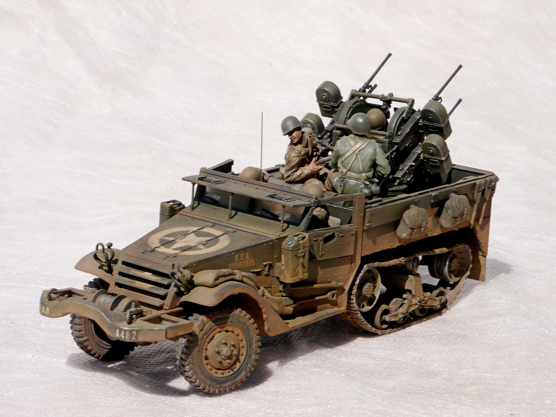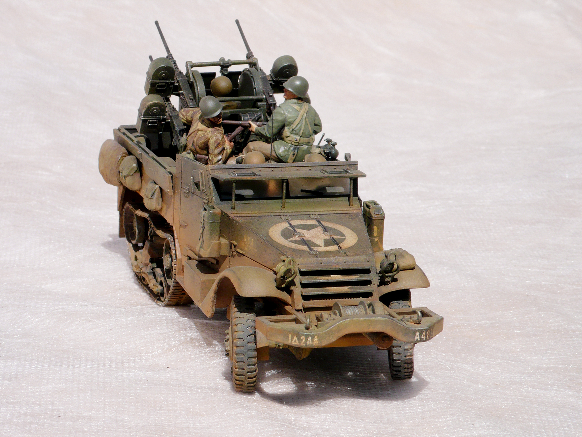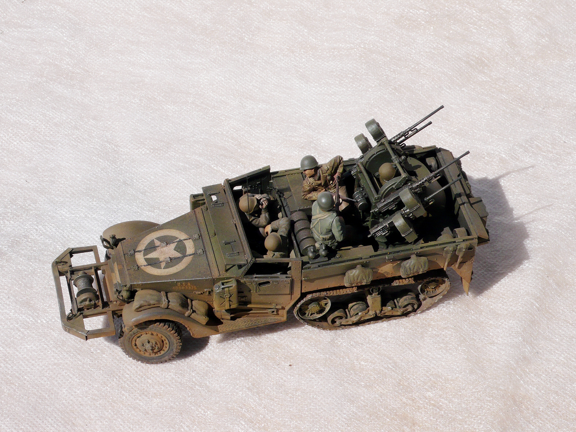 Хорошая работа! Но,сразу бросилось в глаза, какого ... лешего расчёт зенитного пулемета в руках держит винтовки, при этом один из них ствол направил в своего напарника. Сколько читал мемуары союзников, это у них отбивали еще в учебке.