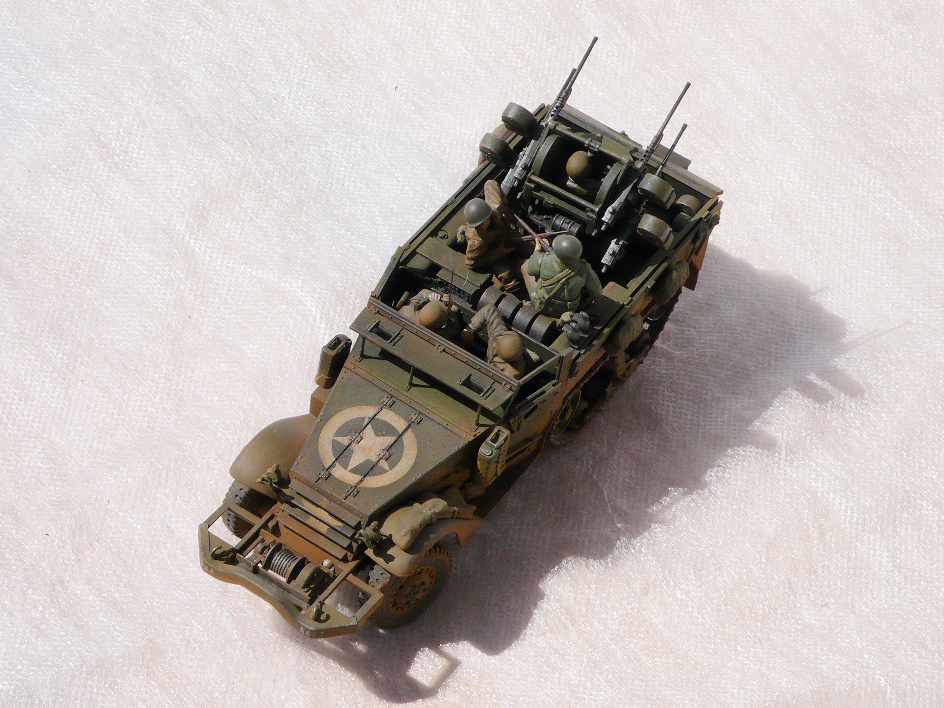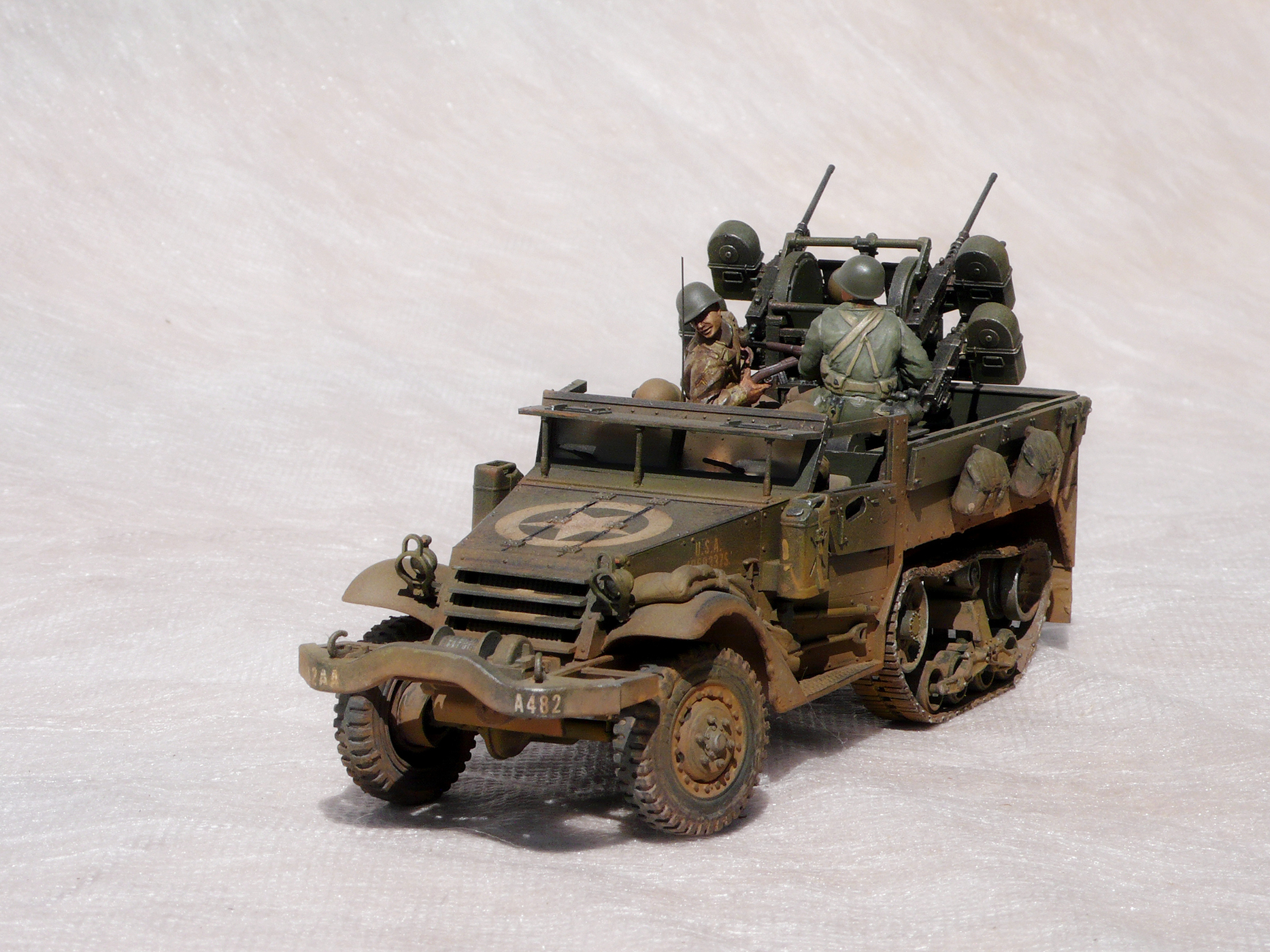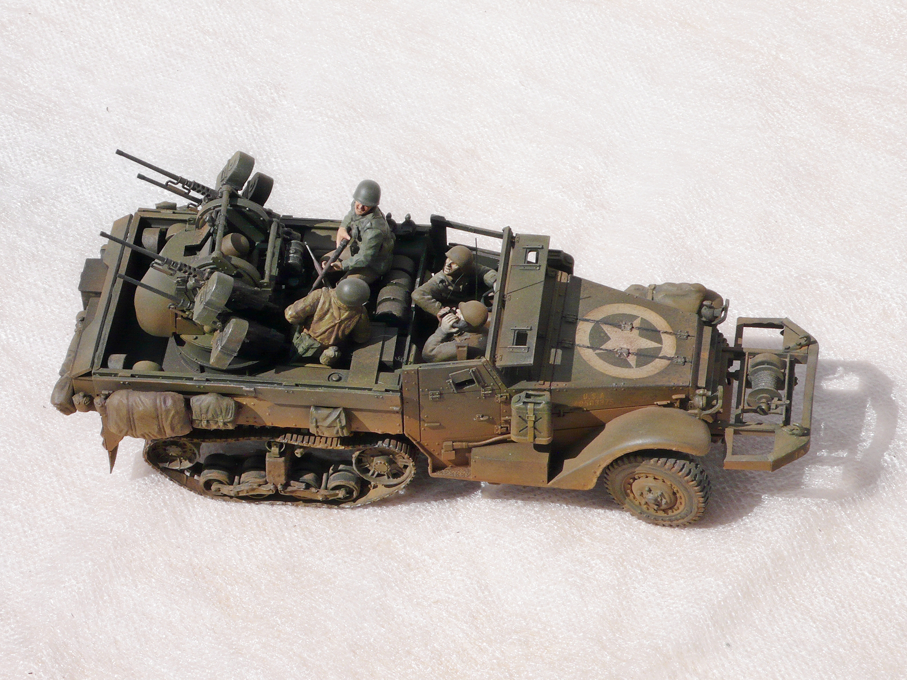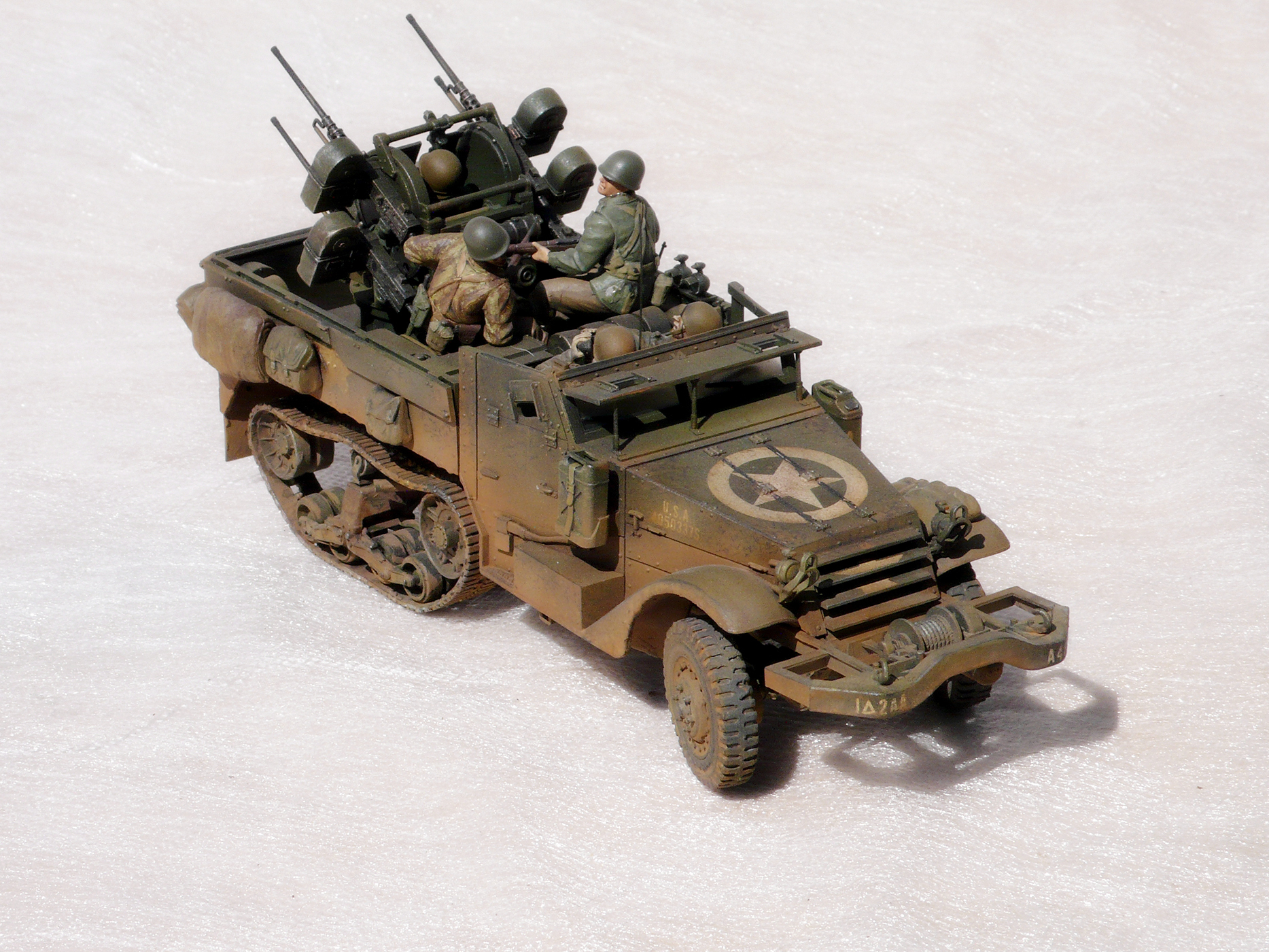 Хорошая работа! Но,сразу бросилось в глаза, какого ... лешего расчёт зенитного пулемета в руках держит винтовки, при этом один из них ствол направил в своего напарника. Сколько читал мемуары союзников, это у них отбивали еще в учебке.