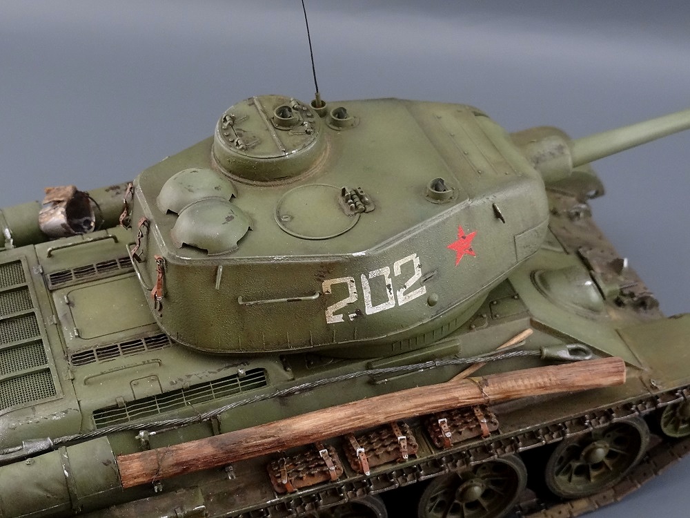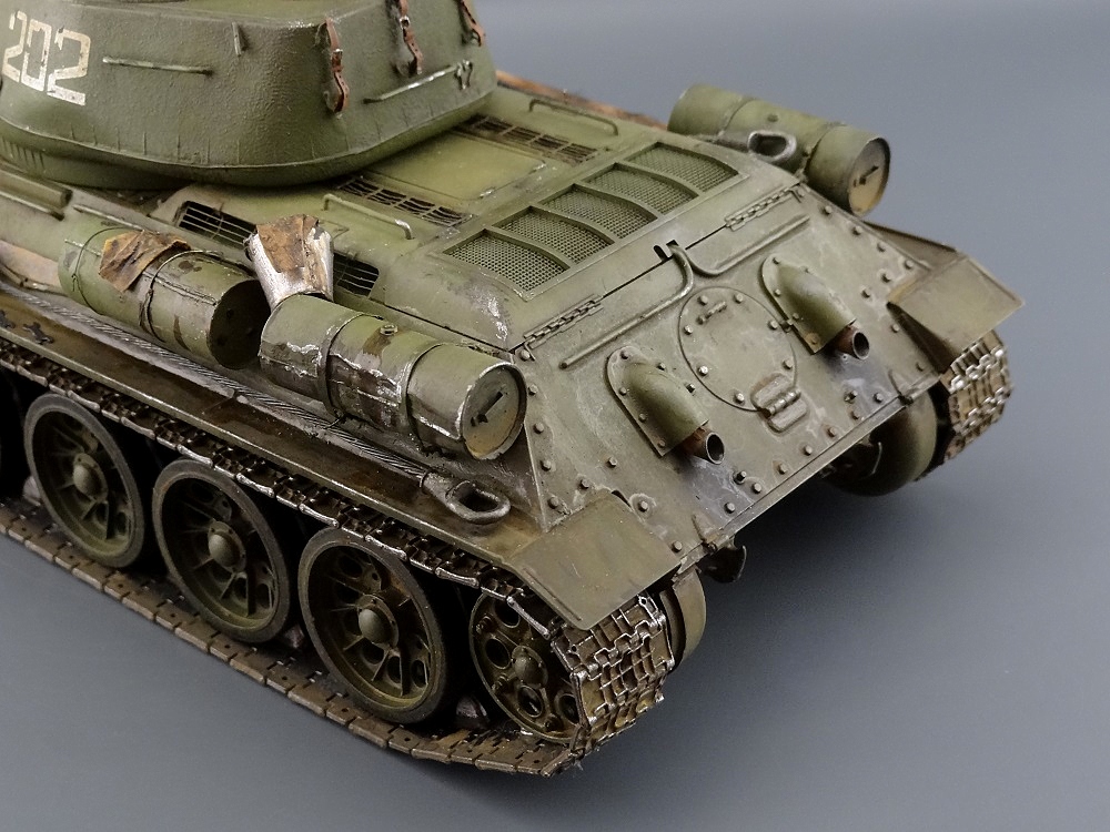 Александр, привет! До чего же живая тридцатьчетверка! Очень понравилась модель с её мелочами, в т.ч. помятыми баками. Очень четкие фотографии, просто классно!