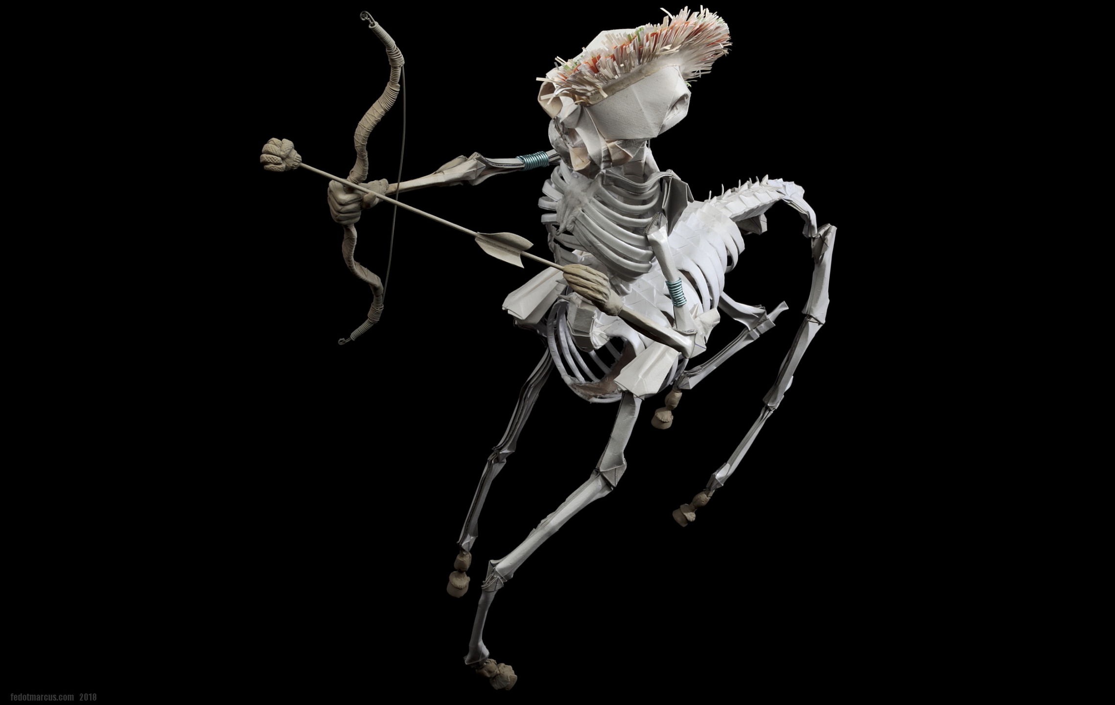 Изучив «матчасть» и анатомические чертежи различных авторов, я решил сделать кентавра-подростка с панковским ирокезом, обучающегося стрельбе из лука.