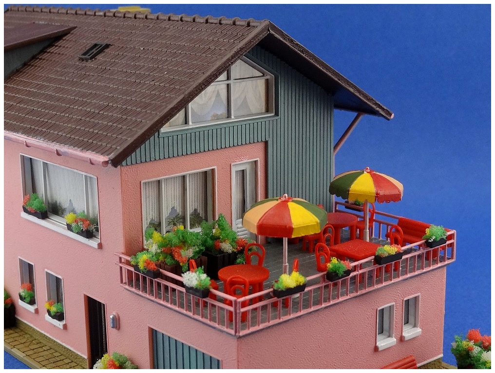 Всё так по-европейски стерильно, опрятно. Глаз прямо радует. Понравилась штукатурка, вернее сказать фактура строения, но всё же из-за мало масштаба некоторые элементы интерьера выглядят игрушечно, но общей картины не портят. В целом очень понравилось. Для ж/д проекта очень подошло бы. Отличная работа!!!