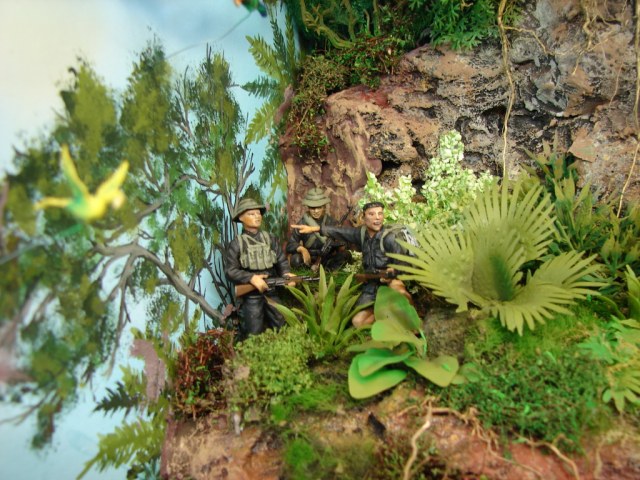 Спасибо,коллеги за отзывы.Я действительно не очень разбираюсь в теме войны во Вьетнаме.((Поэтому диорама не имеет исторической привязки к какому то периоду времени и ,возможно имеется ряд неточностей в технике и униформе.Меня ,прежде всего привлекло разнообразие ландшафта .То,что есть нелогичное расположение дороги,-это верно подмечено.