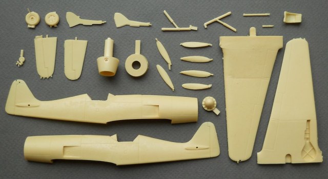 Модель из смолы от фирмы Cape Hobby and Gift в масштабе 1/72 упакована в картонную коробку с боковым открытием. Литьё довольно неважного качества, имеются многочисленные дефекты на нижней и верхней поверхности крыла. Интерьер кабины крайне скуден. Ваку-фонарь и декали смотрятся относительно неплохо. Инструкция, как таковая, отсутствует. Вместо неё прилагаются три листочка ксерокопий фотографий, отображающих некоторые этапы сборки модели и распечатка с книги по тематике Luft46.
