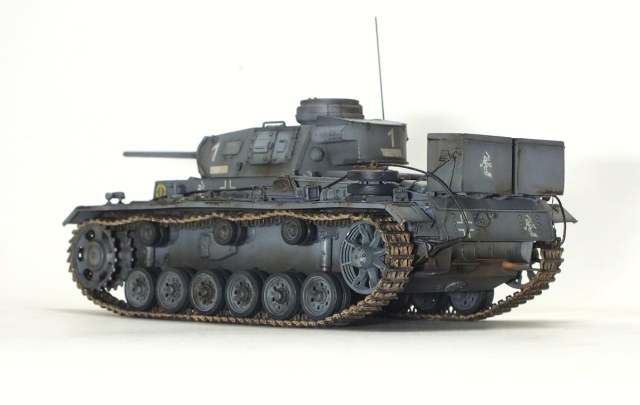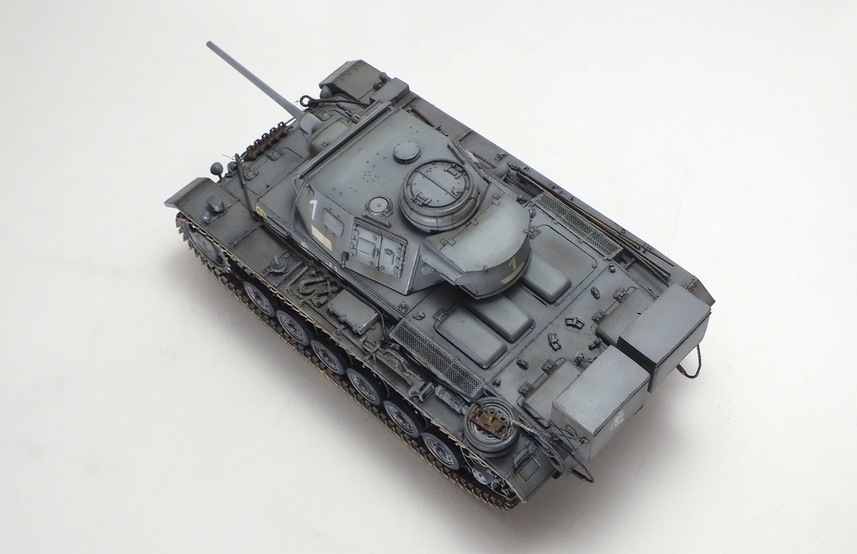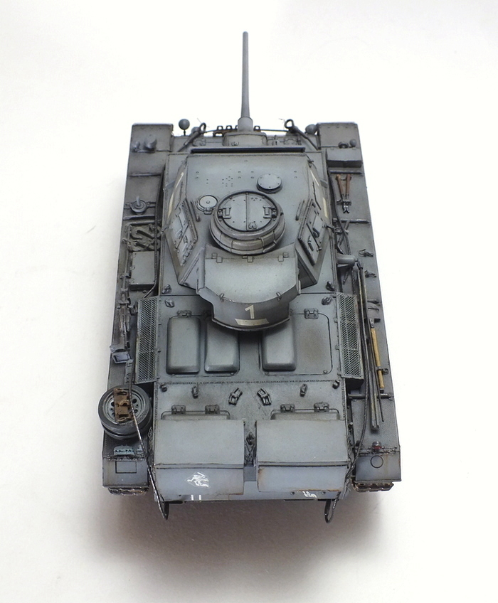 Сейчас уже не помню каталожный номер модели(коробку выкинул),но хочется отметить хорошую стыкуемость деталей без облоя и смещения.Следы толкателей в скрытых местах и минимум утяжин.Производитель дает несколько вариантов окраски танка и декали на разные подразделения и части,но в своей работе я использовал прототип танка из 11-ой ТД Вермахта,декали на который в наборе нет,поэтому пришлось использовать декали от Бегемота и кое что подрисовывать по трафарету..Прототип выбран в основном из-за багажных ящиков на кормовой части танка,которые я изготовил из листового пластика Таmiya.Также в работе использованы тросы от Eurika.Правда отличие от прототипа весьма существенное-длинноствольная пушка.Фото увидел когда модель была уже собрана.Пришлось отрывать уже приклеенные "скрученные" тросы и устанавливать обратно другие крепления.