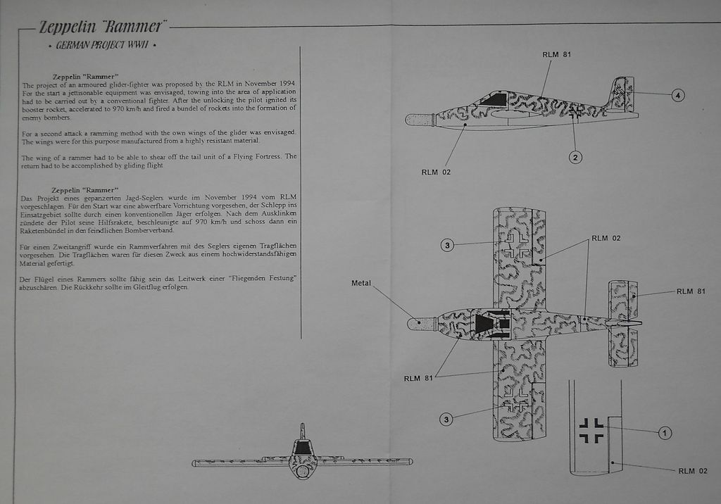 Проект ракетного перехватчика «Раммер» («Таран») разработан на немецкой фирме «Цеппелин» в ноябре 1944 года. Подробнее прочитать о нём можно здесь.