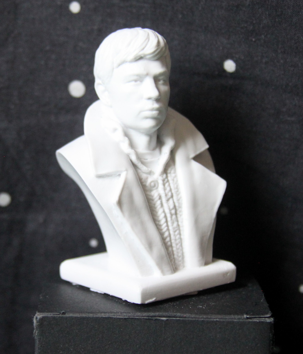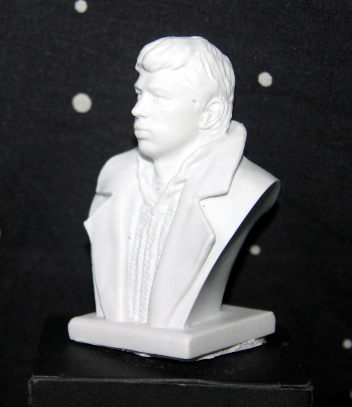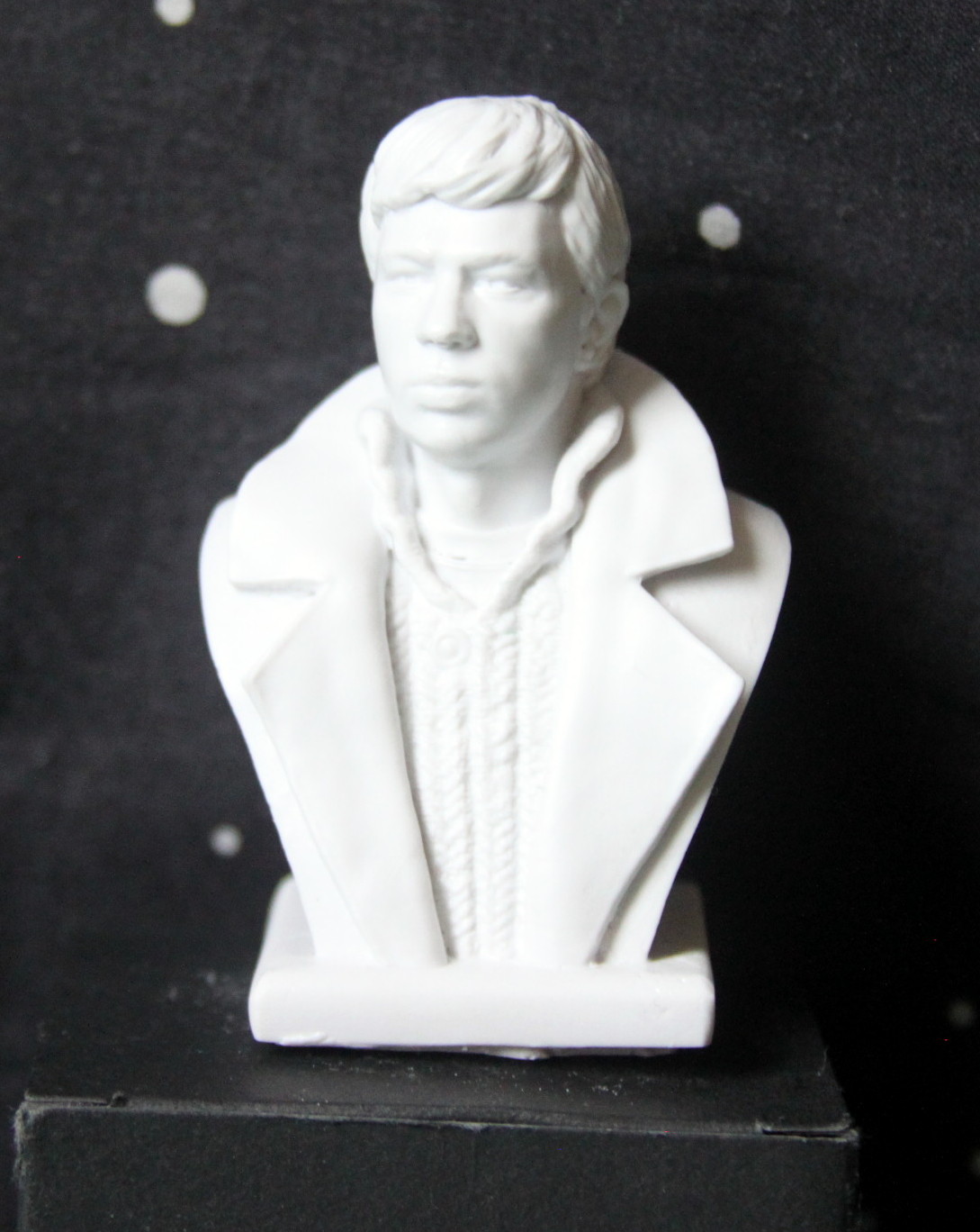 К самому качеству литья - претензий нет, отлито чистенько, без облоя. Герой узнаваем, можно даже дополнить бюст проводами от наушников, сами капли которых изображены в ушах героя..