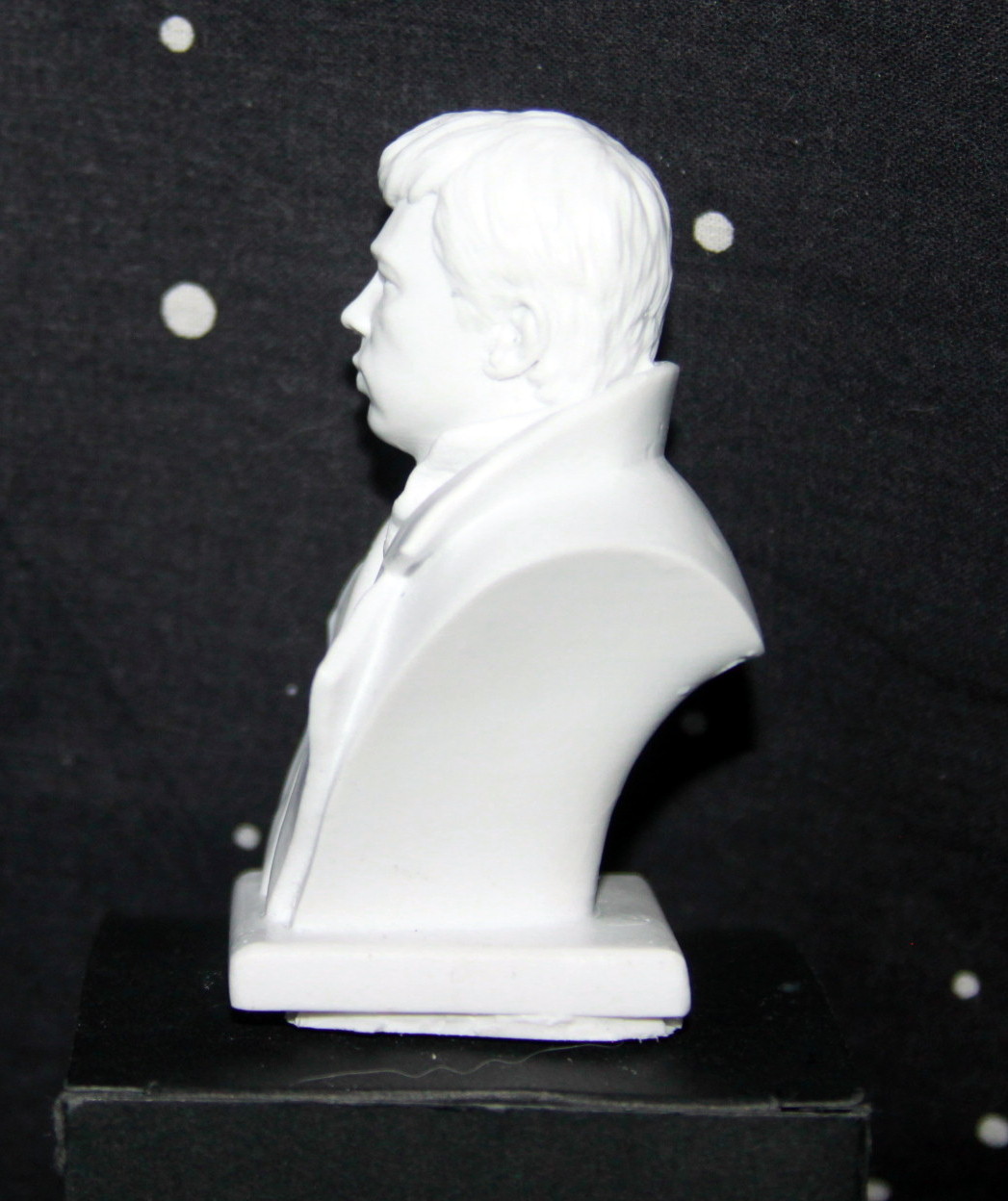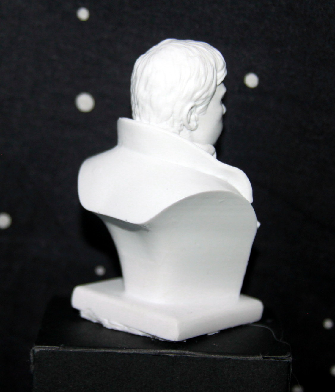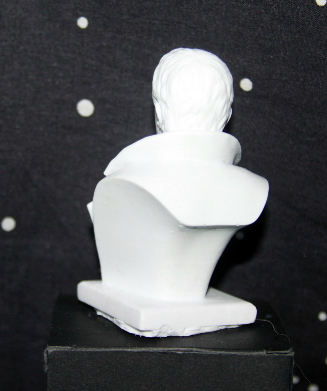 Несколько напрягла пара моментов - первое, это упаковка. Бюсты от "Арматы" всегда шли в металлических коробочках, с хорошим оформлением, и поролоном внутри, для сохранности. В этот раз - малопрезентабельная картонная коробочка траурно-черного цвета, в которую помещен бюст, раз обмотанный целофаном.. Тут я поправлюсь - вернее, спасибо Михаилу Лебедеву, подсказал, что производитель в этот раз другой, соответственно и качество другое..