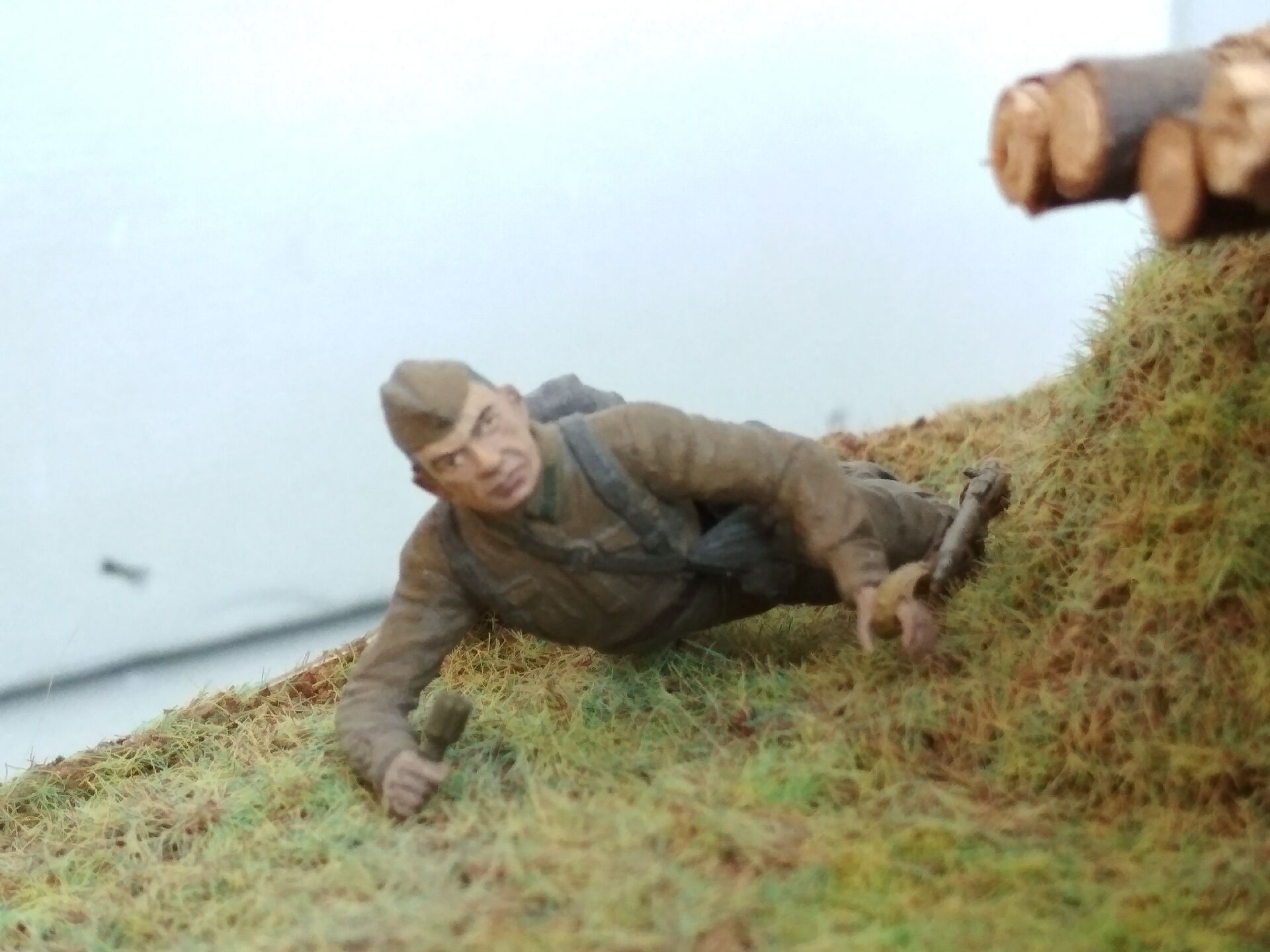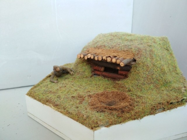 Но главное, что меня удивило, эта огневая точка должна быть в составе окопа и так к ней не подобраться! Если отдельно стоящая, то не должна иметь открытости сзади, вход подземный. Так что сюжет надо менять.