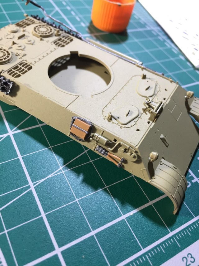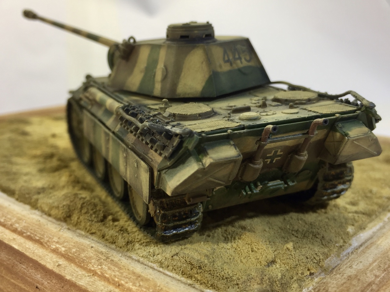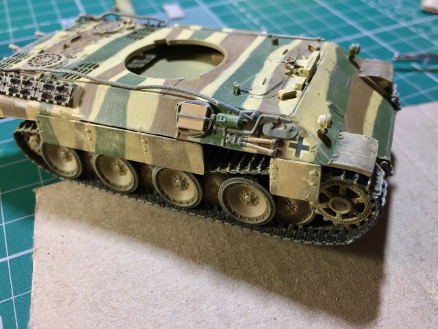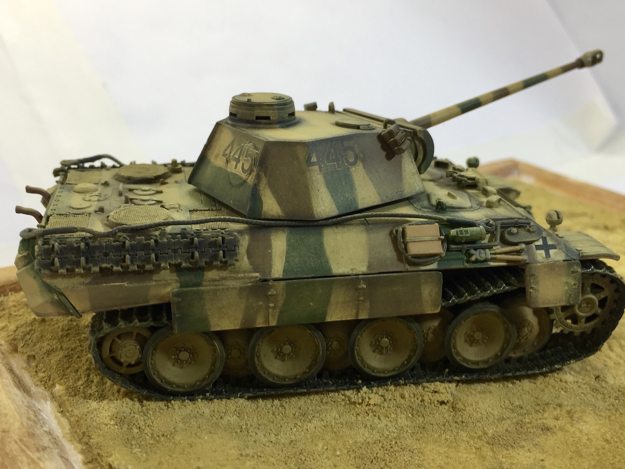 В целом окраска вполне себе. Наносить кистью камуфляж очень непросто, знаю по себе. Основная проблема, например для меня, создание четких границ камуфляжа. У вас это получилось не везде, но в целом ИМХО смотрительно. Плюсую за сетки на МТО и аккуратные бандажи. К сожалению больше по модели ничего не делалось, а можно было: