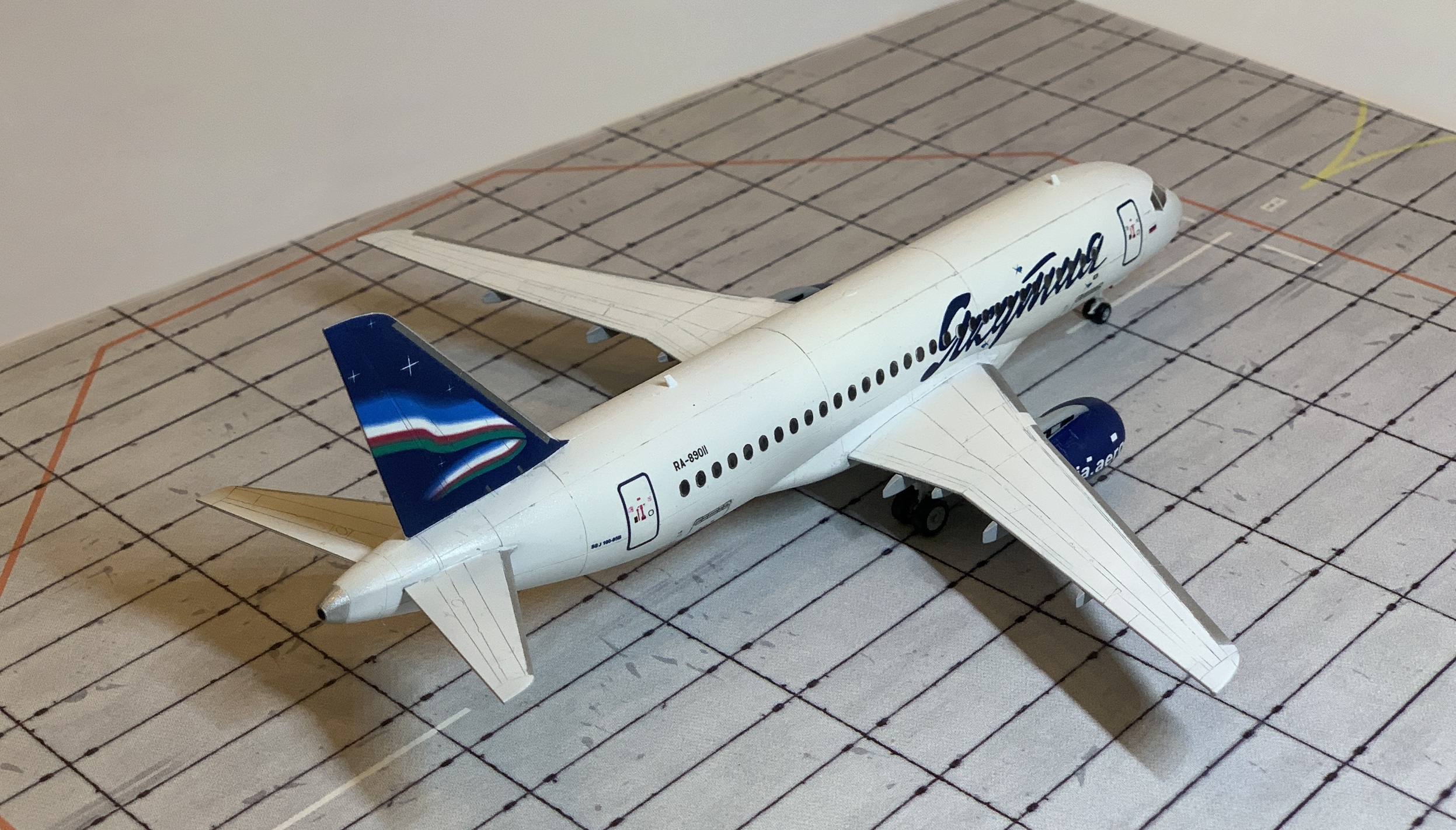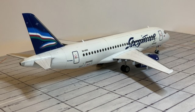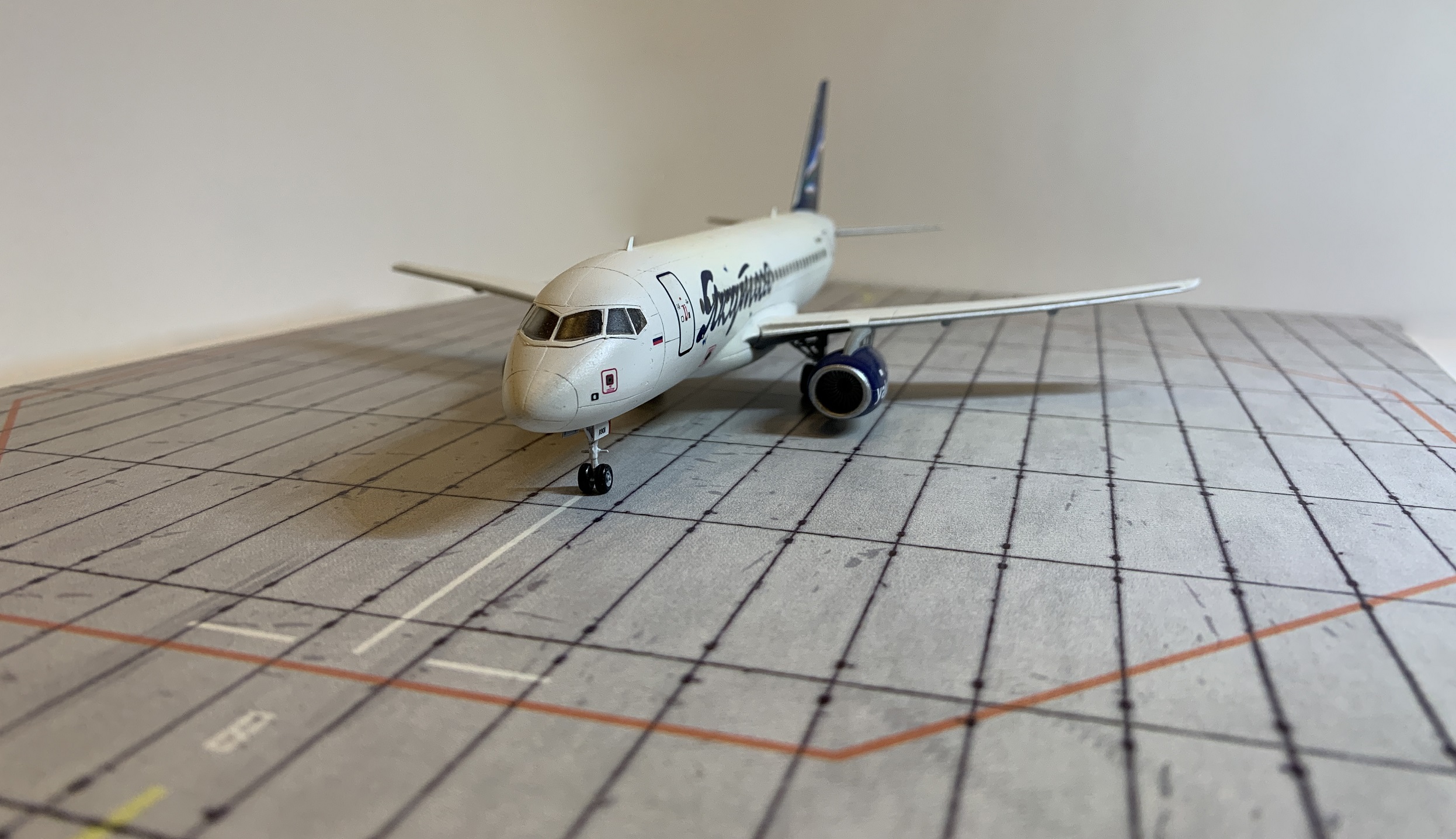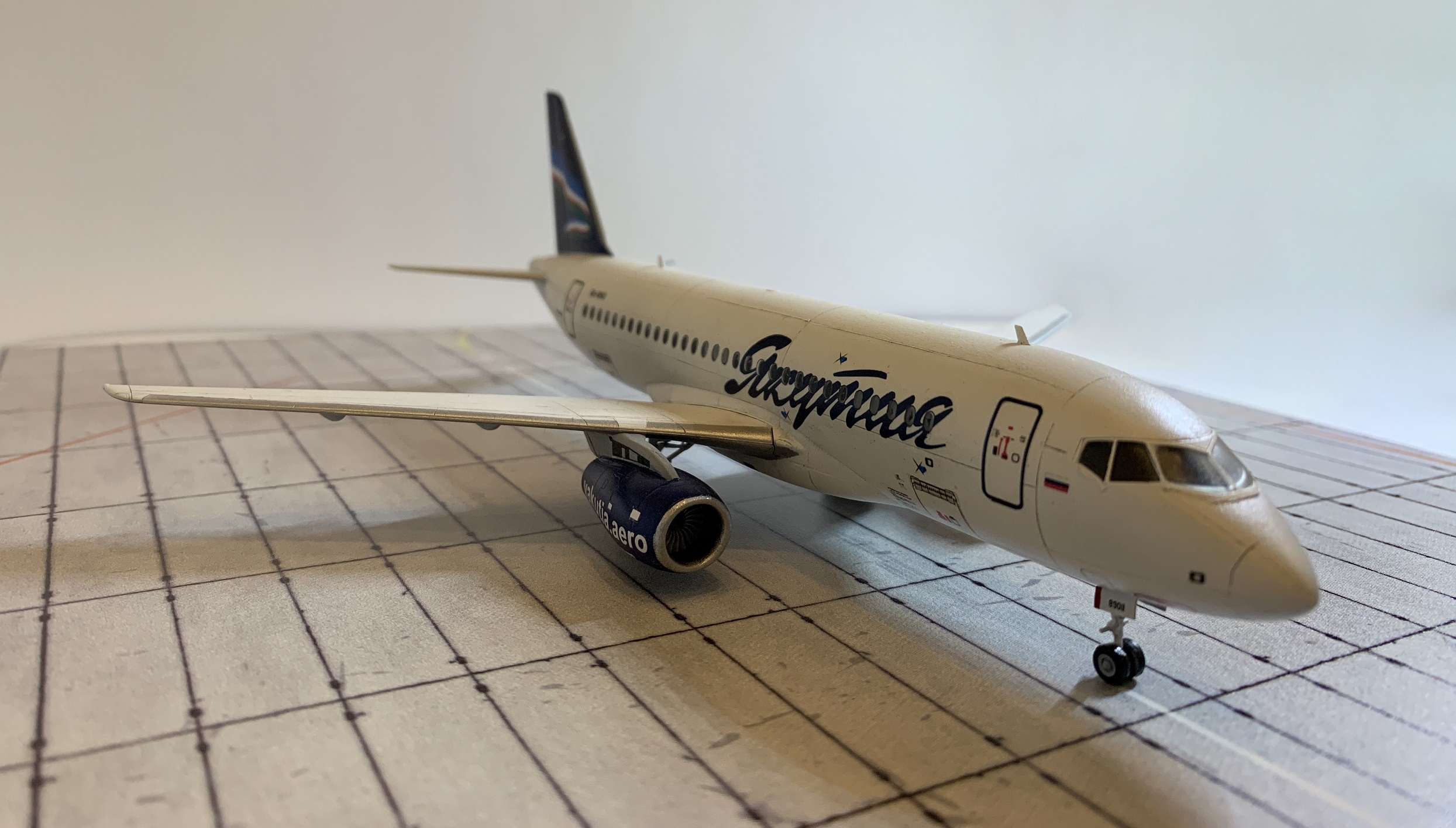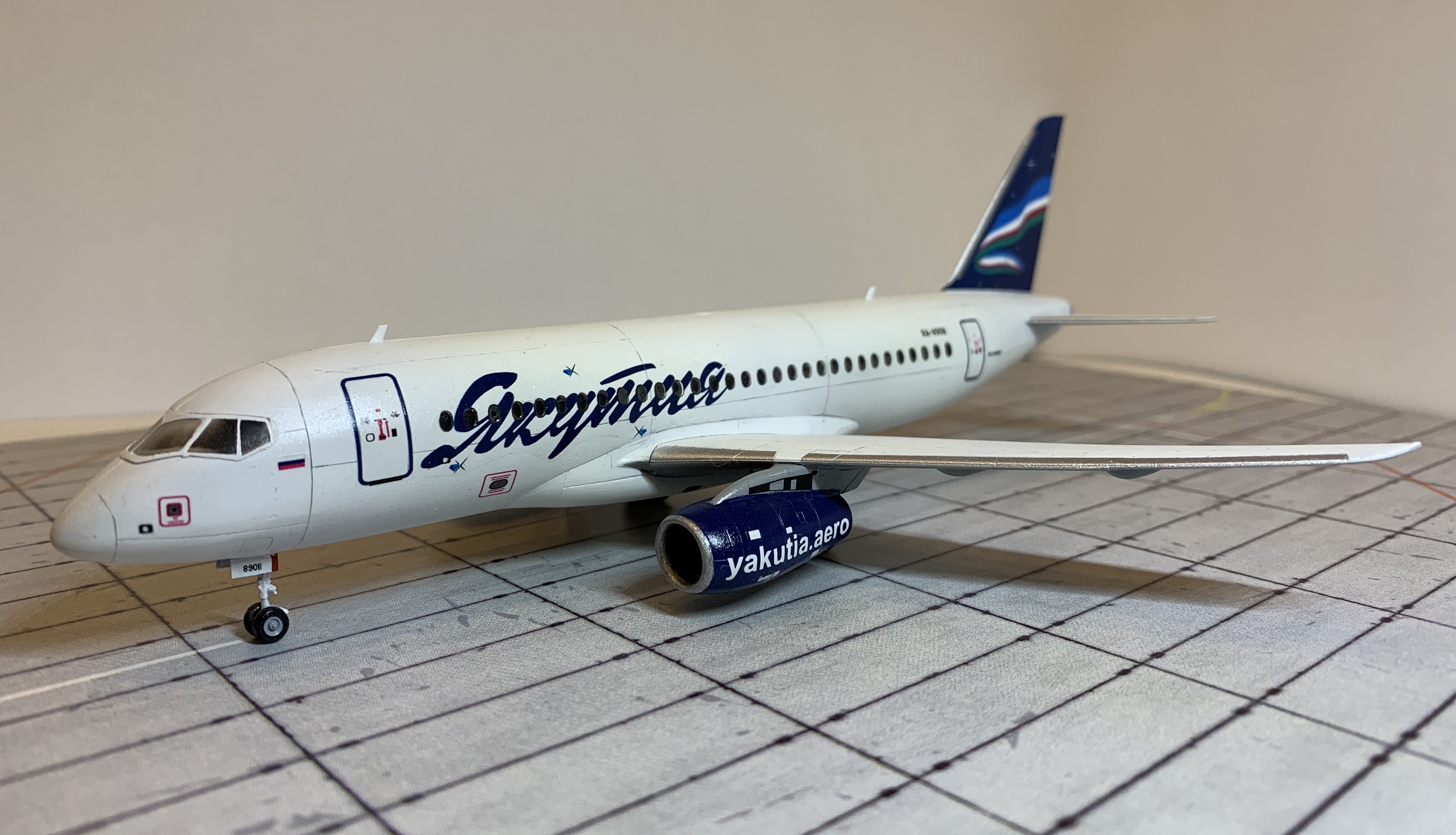 Выбор мой пал на модель SuperJet 100 от Звезды и ливрею АК «Якутия» борт RA-89011 - Данный самолет к великому сожалению 09.10.18 совершил аварийную посадку в Аэропорту г. Якутск и скорее всего восстановлению не подлежит. Кому интересно гуглите