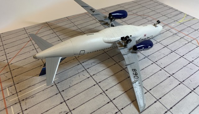 Это простые аэродромные плиты от ICM в 72м масштабе. Просто клеятся встык на основу и красятся в базу, а потом через трафареты и маски наносится разметка. Некоторые для придания сочности проходят по швам заливкой чёрного цвета, некоторые травку втыкают. Всё на усмотрение автора.