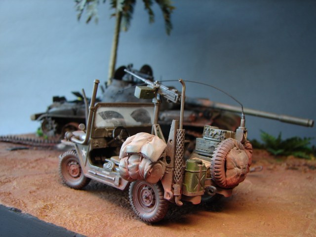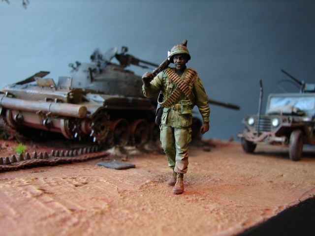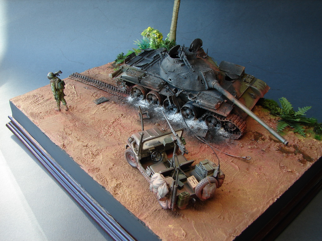 . В ходе апрельских боёв 20-й танковый полк действительно уничтожил некоторое количество Т-54 и Тип-59, однако и сам лишился всей матчасти. Так что теоретически, изображённое на диораме могло быть, вот только негр-пулемётчик из 1-й кавалерийской дивизии маленько не к месту - там должен быть южновьетнамец. Почти все подразделения 1-й кавалерийской были выведены из Вьетнама за год до предполагаемых событий, а одна бригада остававшаяся там до лета 1972-го не принимала участия в боевых действиях.