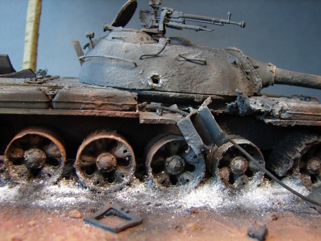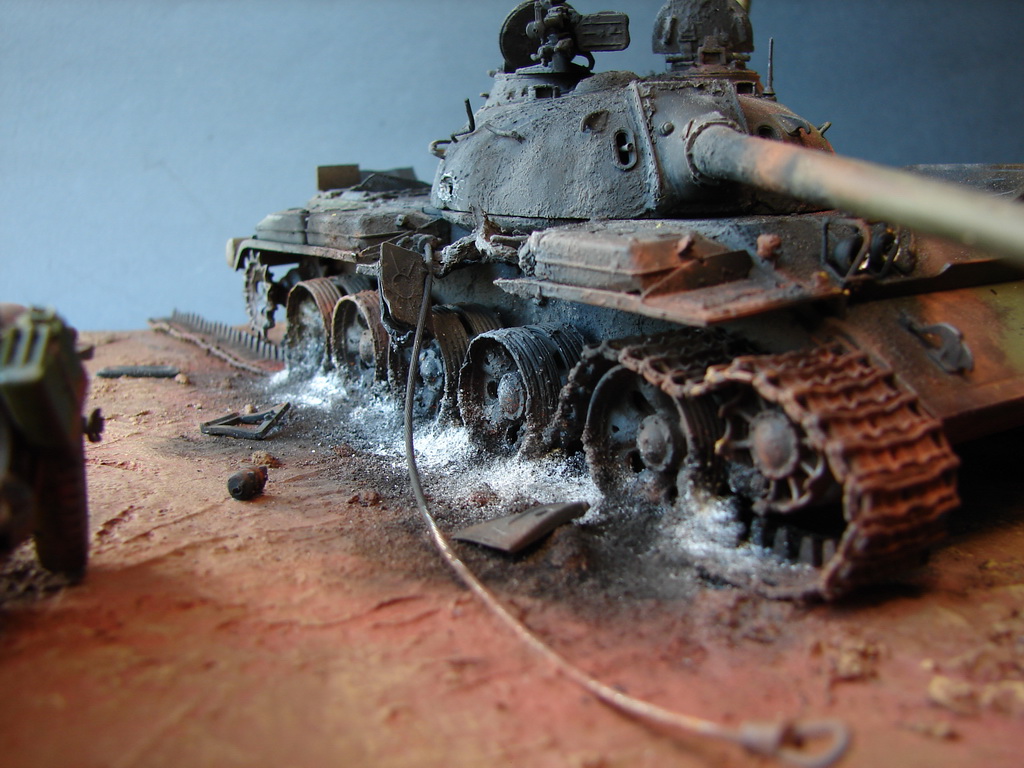 Увидел,что не выставлял здесь свою небольшую работу.Нечего особенного,просто работа на заданную тему.Заказчиком была приобретена модель от Такома танка Тип -59 .Я придумал,как его обыграть в небольшой диорамке.