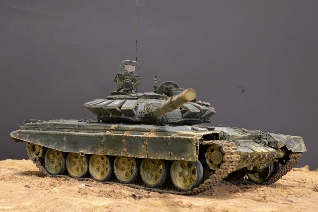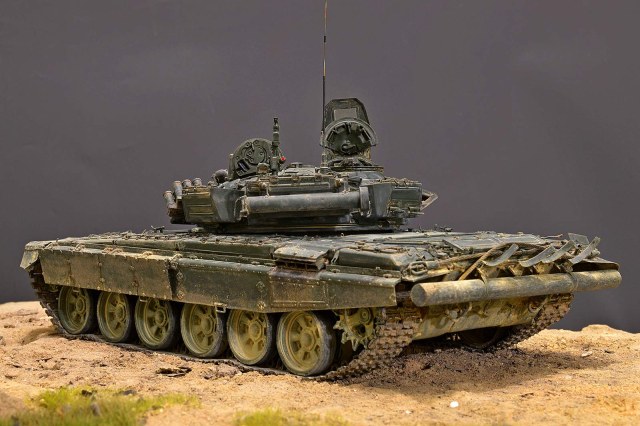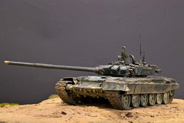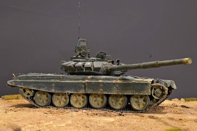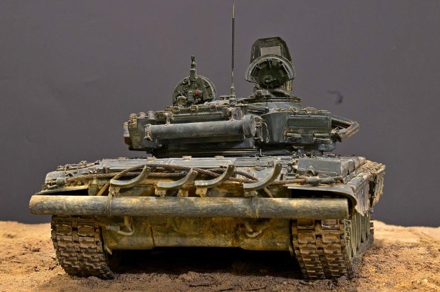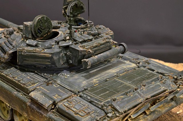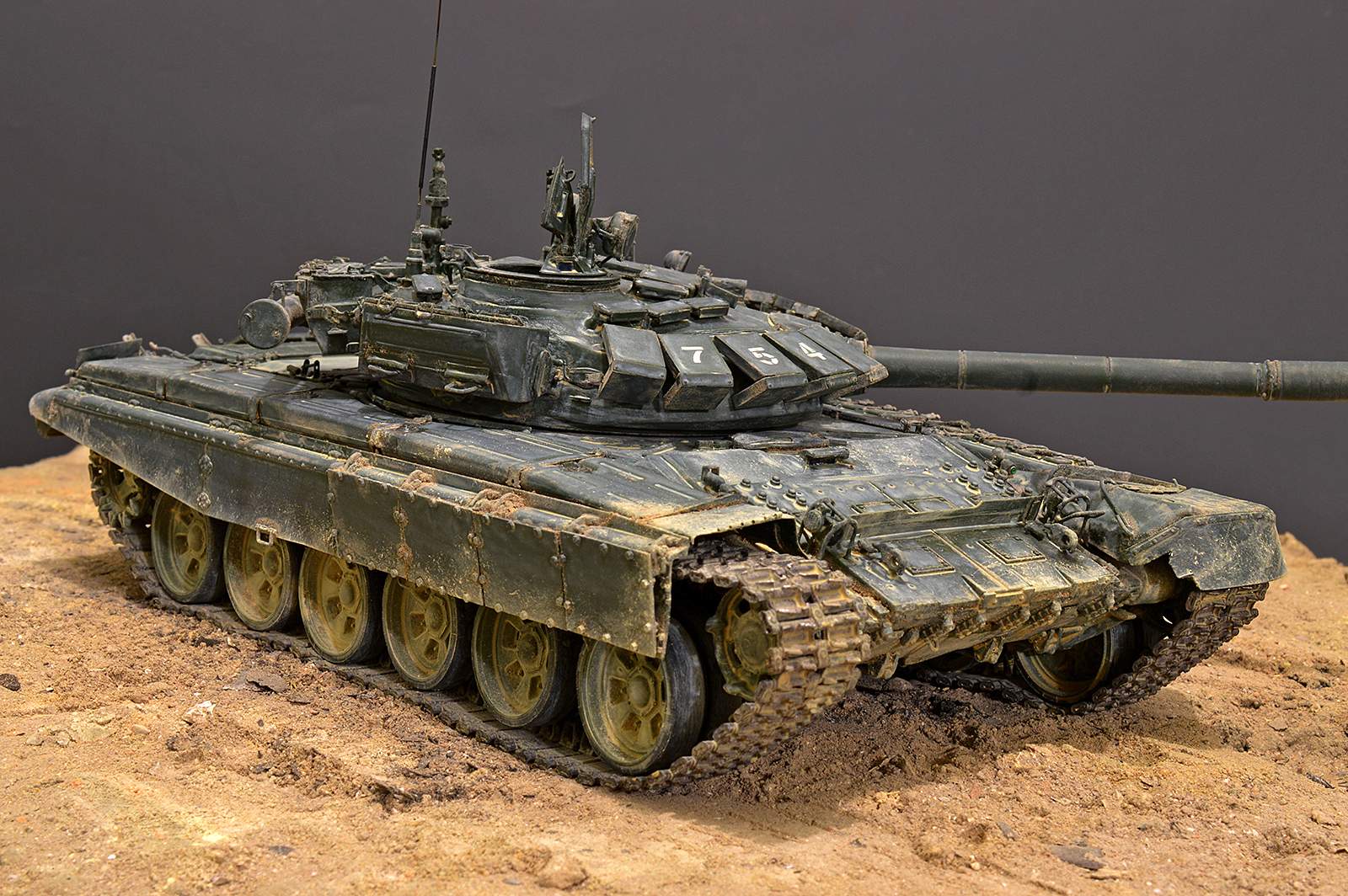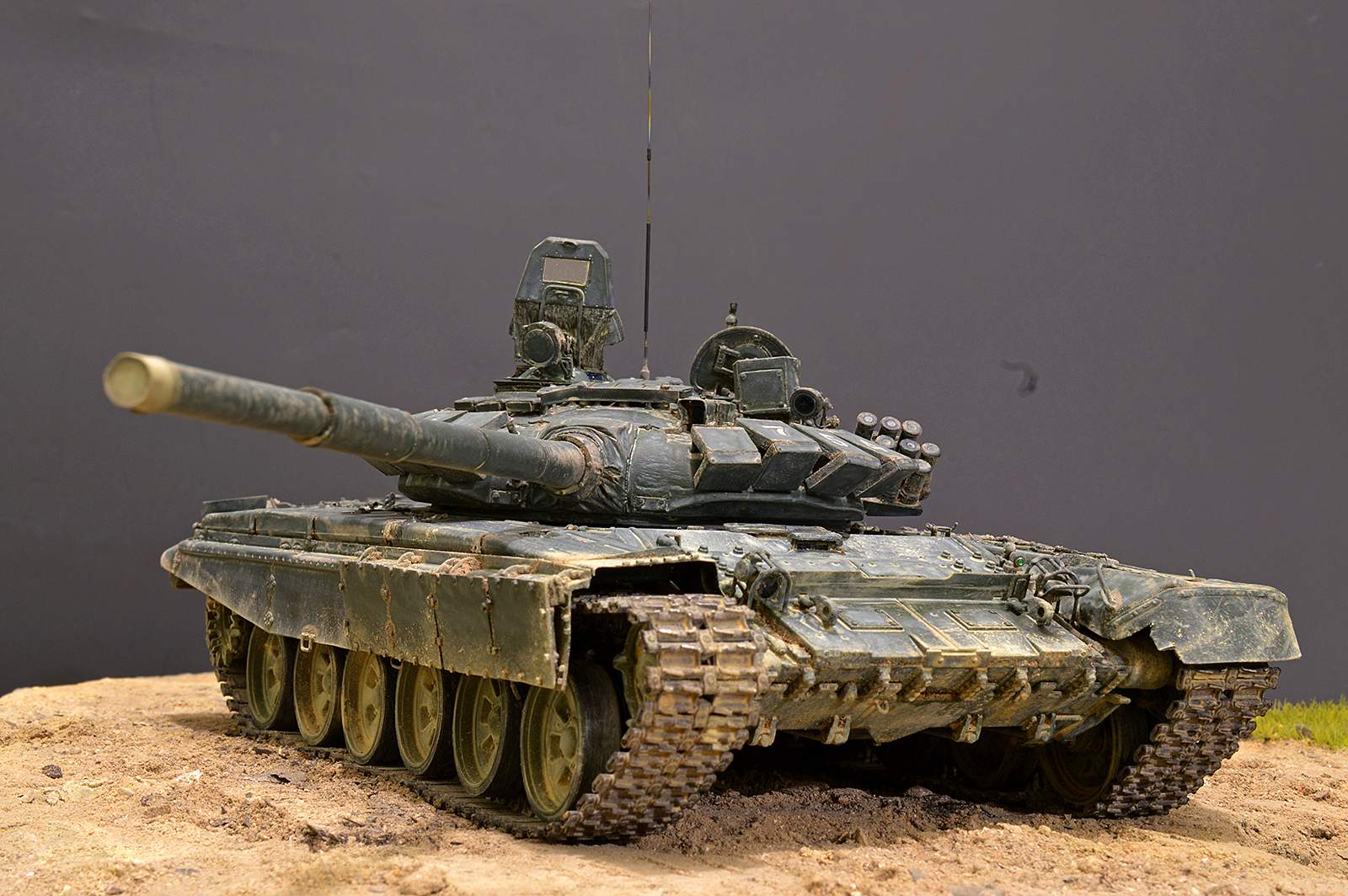 Вот я и дошёл до самой современной современности, однако… Представляю вашему вниманию модель современного Российского танка Т-72Б3 в Сирии. В плане есть задумка на небольшую нетривиальную композицию. Модель сделана очень пыльной и довольно грязной, без ржавчины и прочих затёков. Всё, как на войне. Такой обгадинг мне не нравится, да и многим моделистам, но в реальной жизни бывает и ужаснее. Бронещиток командира танка можно было бы не делать. На фотографиях танков в Сирии их практически нет.