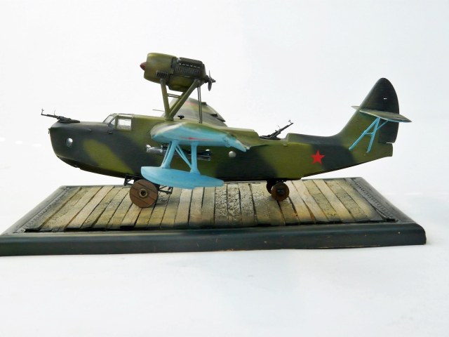 Добрый день.Представляю свою версию известного набора. Вариант черноморского "Амбарчика" на 1942 год. Доработки все самодельные, мелочевка и прицелы из остатков травленки. Тележка самодел, вроде на ЧФ использовали деревянные колеса, наряду со спицованными. Переделал иллюминаторы и подкосы. Красил нитроэмалями от Ганзе. Подстаривал маслом и различными пигментами. Подставка самодел.