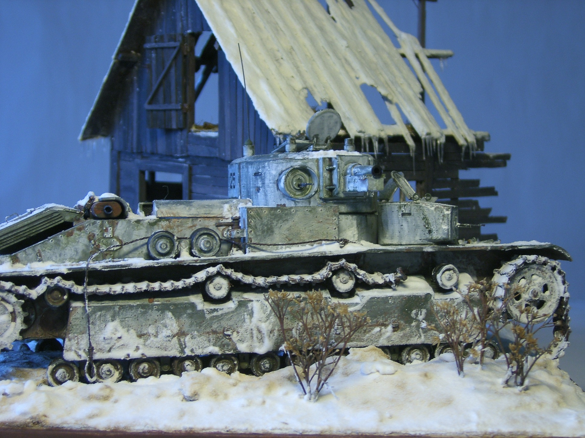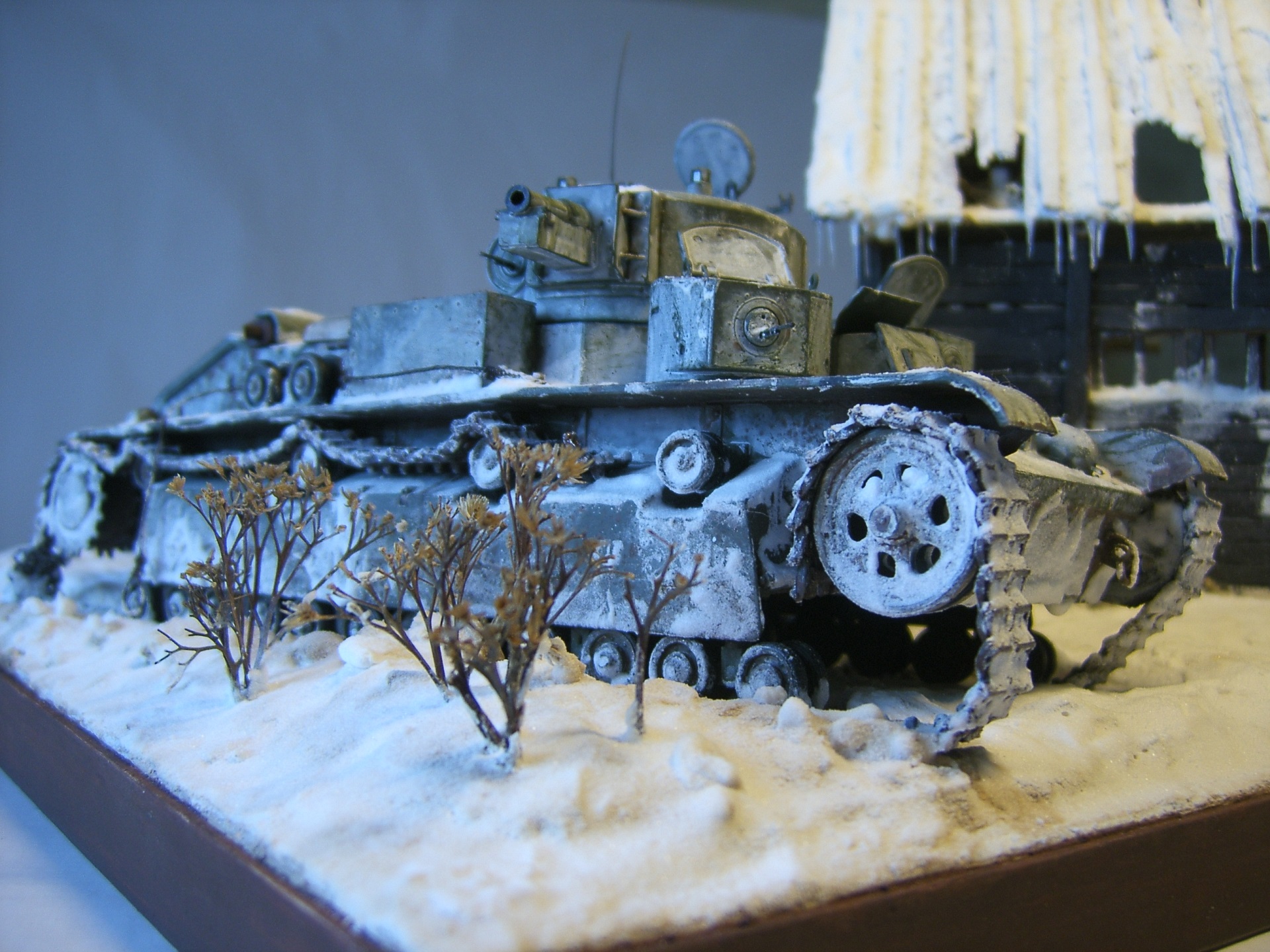 А теперь по сути.. - у фигур в шинелях грубо руки прилеплены к туловищу - явно чуждые элементы между собой. Нужно было сгладить стык. Ну и главное, несоответствие формы по времени. Зимняя парка для вермахта к зиме 42-го имела две стороны серую и белую, последней не видно в капюшонах, это при натяжке на 42-й год и то такие костюмы поступали к концу года, в основном для СС с различием в осеннем цвете - у них был камуфляж, то есть зима 42-43. Шинели тогда тоже сменили на модель с высоким воротником.. - опыт 41-вого)) Получается либо фигуры в парках лишние, либо танк.. На сколько помню из истории, такие машины были в зиму на финском направлении..